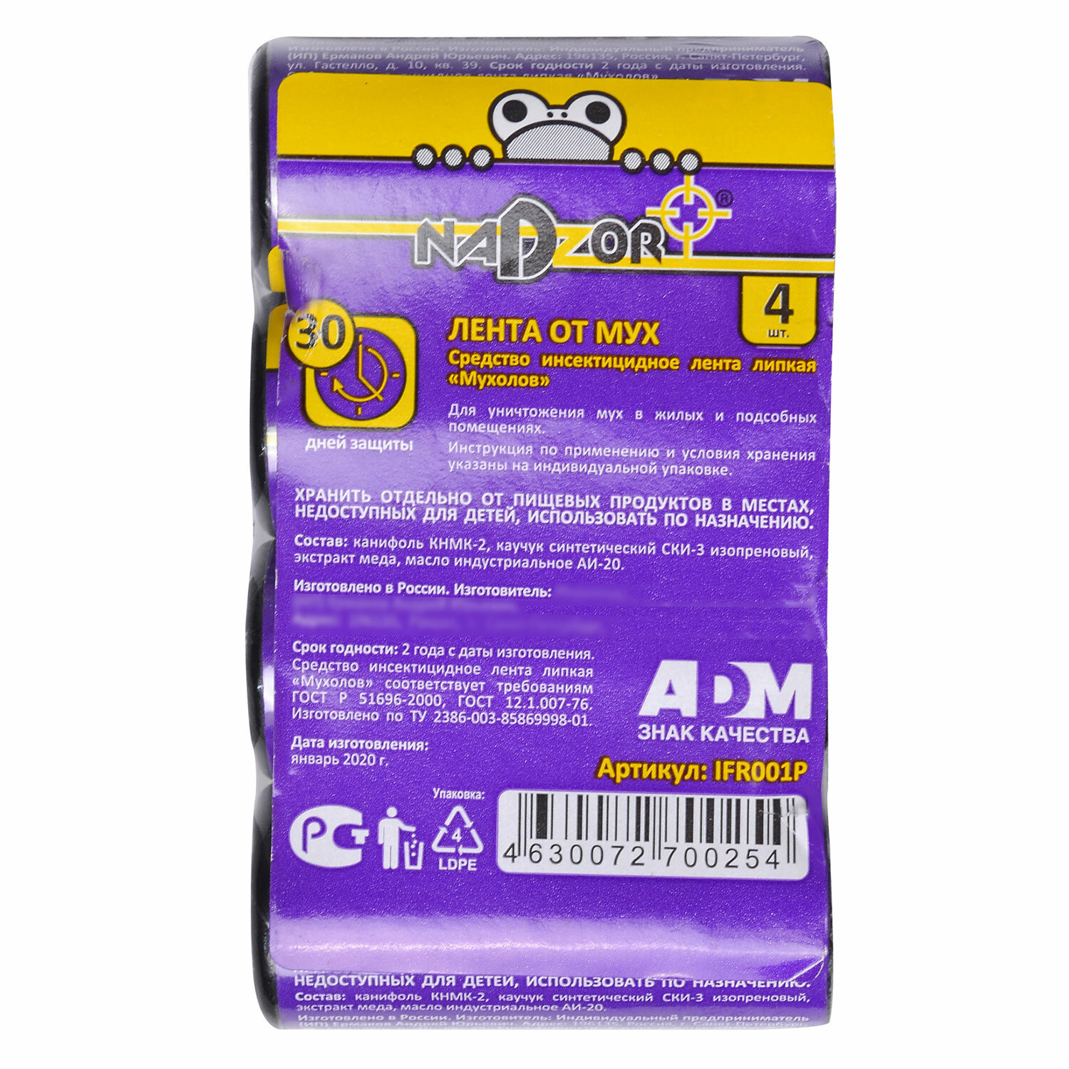 Липкая лента от мух мухоловка КОМПЛЕКТ 4 шт., NADZOR Код товара: 609998 102,06 ₽ Купить Производитель:NADZOR Ловушка для мух NADZOR представлена в форме картонной гильзы. Внутри свернута в спираль длинная лента со специальным клеящим составом. Пролетающие мимо насекомые задевают ленту и прилипают к ней, не имея ни единого шанса освободиться. Функцию действующего вещества выполняет высококачественный клеевой состав, который надежно удерживает мух на поверхности ленты. На ленту нанесен и специальный аттрактант, который способствует привлечению внимания насекомых.Производство: РоссияСредство от насекомых: мухиТип средства: липкая лентаБез запаха: даВид средства: репеллентноеКомплектация: 4 лентыУпаковка: пакетСрок годности: 60 месВес: 37 грРазмер упаковки: 2 × 8.6 × 4.7 смОбъём: 0.0001 м3Промежуточная упаковка: 60 штТранспортная упаковка: 60 штШтрих-код: 4630072700254 Сертификат-1.jpg Сертификат-2.jpg Сертификат-3.jpg