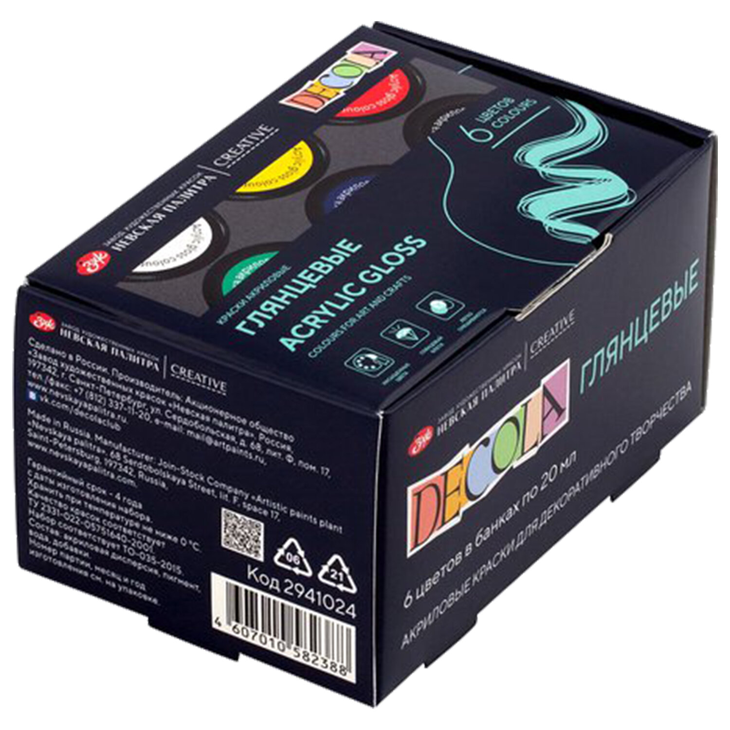 Краски акриловые глянцевые "Декола", 6 цветов по 20 мл, в банках, Невская Палитра Код товара: 190991 429,7 ₽ Купить Производитель:НЕВСКАЯ ПАЛИТРА Краски высокого качества "Декола" Невская Палитра. Обладают превосходными покрывными свойствами. Краски прекрасно смешивается. Благодаря высокой покрывающей способности для достижения оптимального эффекта достаточно нанести всего один слой краски.Производство: РоссияКоличество цветов в наборе: 6 шт.Серия: DecolaТип фасовки: баночкаОбъем: 20 млСпецэффект цвета : глянцевыйЦвет: белый, желтый светлый, изумрудный, красный, синий темный, черныйТип краски: акриловые художественныеУпаковка: картонная коробкаВес: 206 грРазмер упаковки: 5.5 × 10.3 × 7 смОбъём: 0.0005 м3Промежуточная упаковка: 24 штТранспортная упаковка: 24 штШтрих-код: 4607010582388 Файлы Приложение-1.pdf Сертификат-1.jpg Сертификат-2.jpg Сертификат-3.jpg Сертификат-4.jpg Сертификат-5.jpg Сертификат-6.jpg Сертификат-7.jpg Сертификат-8.jpg Сертификат-9.jpg Сертификат-10.jpg Сертификат-11.jpg Сертификат-12.jpg Сертификат-13.jpg Сертификат-14.jpg Сертификат-15.jpg Сертификат-16.jpg Сертификат-17.jpg Сертификат-18.jpg Сертификат-19.jpg Сертификат-20.jpg Сертификат-21.jpg Сертификат-22.jpg Сертификат-23.jpg Сертификат-24.jpg Сертификат-25.jpg Сертификат-26.jpg