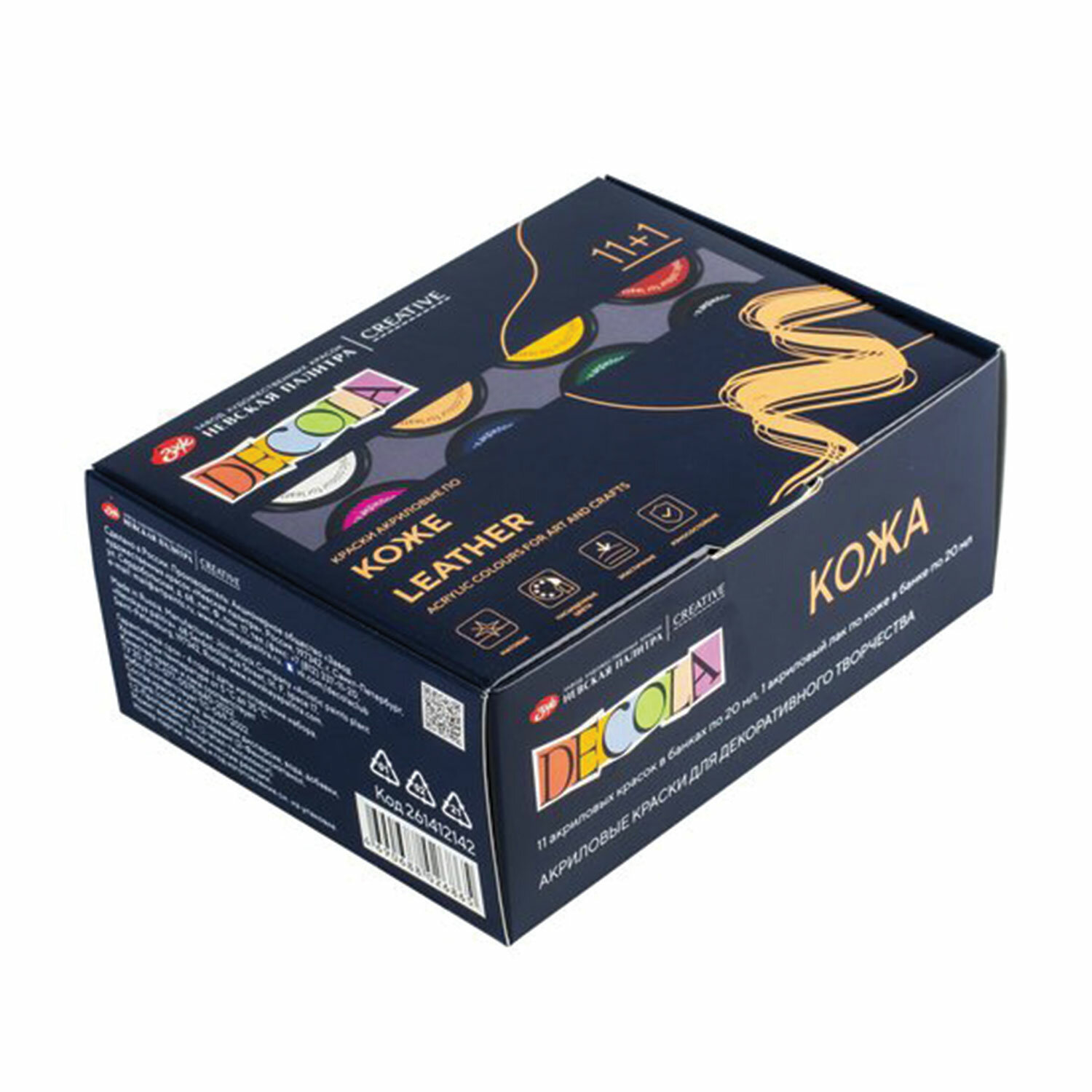 Краски акриловые по коже "Декола", 11 цветов + акриловый лак по 20 мл, в банках, Невская Палитра Код товара: 192628 1 172,24 ₽ Купить Производитель:НЕВСКАЯ ПАЛИТРА Акриловые краски по коже "Декола" Невская на основе водной акриловой дисперсии предназначены для росписи изделий из натуральной и искусственной кожи. Имеют насыщенный цвет, на коже создают матовый эффект, краска после высыхания эластична и износостойкая. Для закрепления на коже изделие необходимо просушить в течение 24 часов и прогреть с помощью фена на максимальной температуре в течение 5-10 минут. Для защиты окрашенной поверхности от царапин и сколов изделие следует покрыть лаком для кожи. Температура транспортировки и хранения: от +5 до +35 °C.Производство: РоссияТип товара: краскиТип краски: акриловые по кожеКоличество цветов в наборе: 11 шт.Цвета: белый, голубой, желтый, зеленый, золото, коричневый, красный, синий темный, телесный, фуксия, черныйОбъем фасовки: 20 млСпецэффект цвета: классическийФасовка: баночкаСерия: ДеколаКомплектация: акриловый лакУпаковка: картонная коробкаВес: 416 грРазмер упаковки: 5.8 × 13.6 × 10.3 смОбъём: 0.001 м3Промежуточная упаковка: 12 штТранспортная упаковка: 12 штШтрих-код: 4690688026865 Файлы Сертификат-1.jpg Сертификат-2.jpg Сертификат-3.jpg Сертификат-4.jpg Сертификат-5.jpg