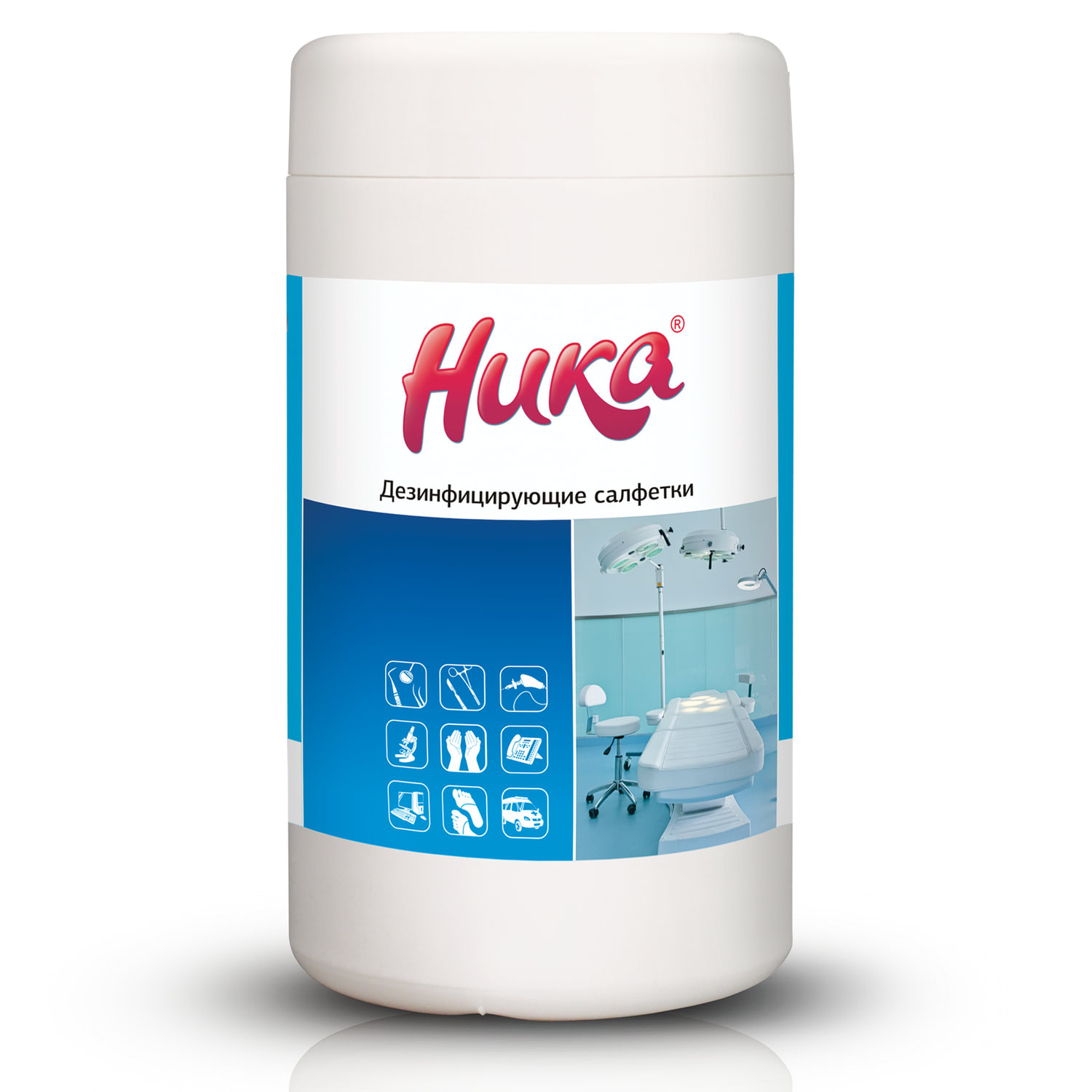 Салфетки НИКА представляют собой равномерно пропитанные салфетки из нетканого материала, белого цвета со слабым специфическим запахом спирта и применяемой отдушки. Каждая салфетка пропитана готовым к применению дезинфицирующим средством в количестве 3 г на одну салфетку. В качестве действующих веществ пропиточный раствор содержит пропанол-1 28%, алкилдиметилбензиламмоний хлорид 0,02%, полигексаметиленгуанидин гидрохлорид 0,04%, N,N-бис (3-аминопропил) додециламин 0,02%, а также вспомогательные компоненты и воду.