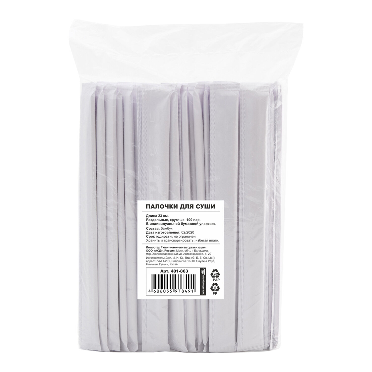 Палочки для суши бамбуковые 23 см, круглые, КОМПЛЕКТ 100 пар в индивидуальной бумажной упаковке, СТАНДАРТ Код товара: 609615 272,85 ₽ Купить Производитель:NO NAME Изготовлены из натурального бамбука, отличаются высоким качеством, экологичны. Используются кафе, барами и ресторанами, предлагающими своим клиентам блюда японской, китайской или корейской кухни. В индивидуальной упаковке, не требуют разламывания. Палочки для суши одноразовые, бамбуковые, длиной 23 см.Производство: КитайДлина: 230 ммКоличество в упаковке: 100 шт.Соответствует требованиям ГОСТа: нетМатериал: бамбукЦвет: бежевыйВес: 732 грРазмер упаковки: 3.7 × 27.4 × 19 смОбъём: 0.0022 м3Промежуточная упаковка: 20 штТранспортная упаковка: 20 штШтрих-код: 4606055978491 Файлы Сертификат-1.jpg Сертификат-2.jpg Сертификат-3.jpg Сертификат-4.jpg