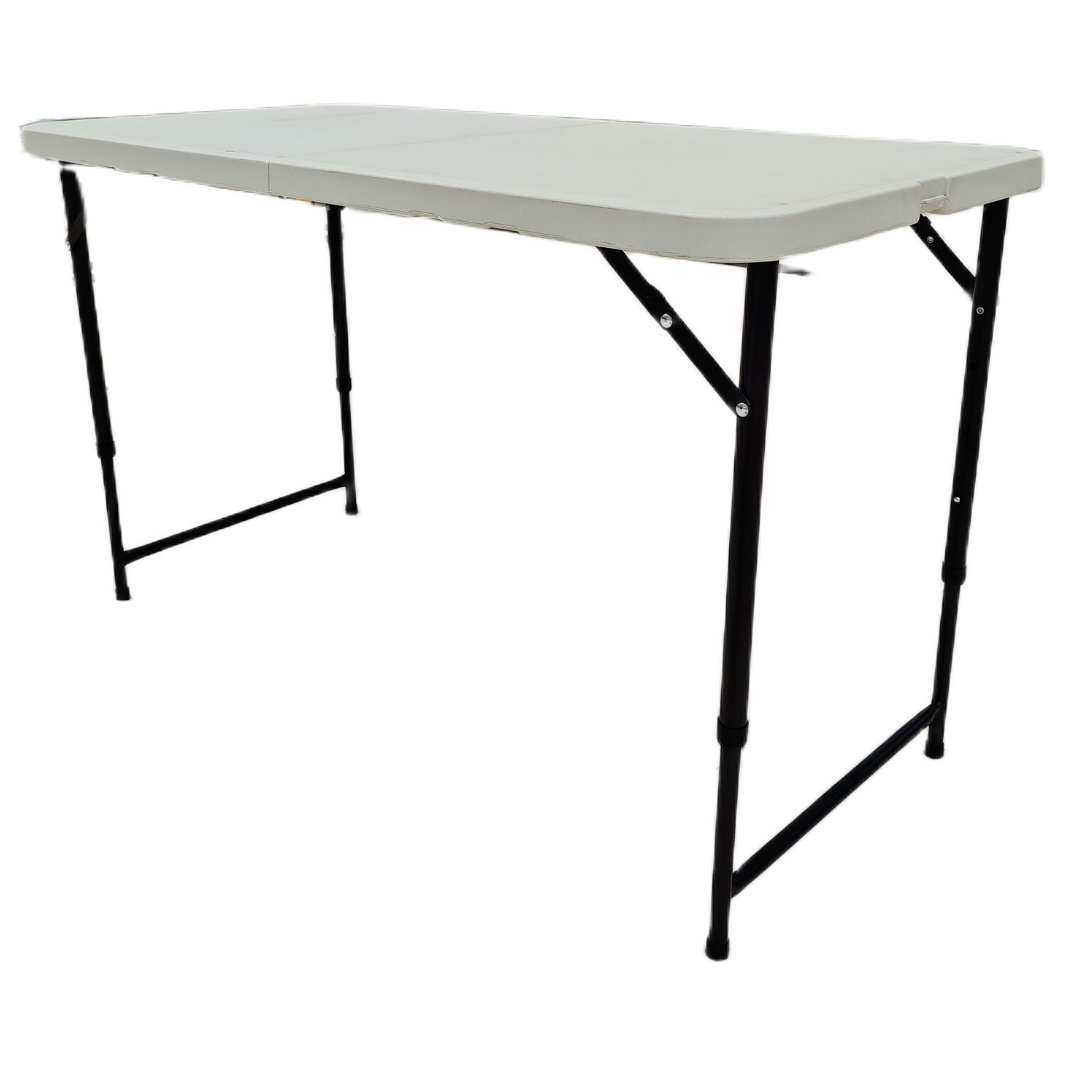 Стол складной NOSTRESS (НОСТРЕСС) "Country FT-004" (1220х610х740/580 мм), НАГРУЗКА до 150 кг, пластик белый Код товара: 680055 4 115 ₽ Купить Производитель:NOSTRESS Складной стол NOSTRESS "Country FT-004" – универсальное решение для дома, дачи, бизнеса и выездных мероприятий. Модель складного стола FT-004 отличается прочным стальным каркасом с возможностью регулировки стола по высоте, износостойкой столешницей из HDPE-пластика и выдерживает распределённую нагрузку до 150 кг, оставаясь устойчивой и безопасной при ежедневном использовании. • Основные преимущества: - Размер столешницы 1220х610 мм обеспечивает комфортное размещение 4–6 человек, что делает стол удобным для семейных обедов, фуршетов, ярмарок и мастер-классов. Высота стола регулируется в диапазоне 580–740 мм, благодаря телескопическим ножкам с фиксацией в предельных положениях. - Прочный стальной каркас с надёжной фиксацией защищён от самопроизвольного складывания, благодаря чему стол стабилен даже при максимальной нагрузке. - Ударопрочный HDPE-пластик устойчив к влаге и ультрафиолету, легко очищается и не требует специального ухода. • Удобство и мобильность: - Складная конструкция позволяет мгновенно разложить и убрать стол, экономя место в квартире, офисе, кафе или подсобном помещении. - В сложенном виде стол компактен и удобен для транспортировки благодаря встроенной ручке для переноски, что особенно актуально для кейтеринга, выездной торговли и мероприятий на природе. • Универсальность использования: - Подходит для использования в помещении и на улице: для дачных террас, веранд, пикников, выставок, ярмарок, праздников и рабочих зон. - Ровная устойчивая столешница выдерживает до 150 кг распределённой нагрузки, поэтому на стол можно безопасно размещать бытовую технику, инвентарь, посуду и товары. - Нейтральный дизайн белой столешницы легко сочетается с любыми стульями и интерьером, что важно для кафе, банкетных залов и мероприятий.Производство: КитайТип товара: cтолСкладной: даМатериал столешницы/сиденья: HDPE-пластикМатериал каркаса: стальЦвет столешницы/сиденья: белыйЦвет каркаса: черныйМаксимальная нагрузка на стол: 150 кгСерия: FT-004Вес: 9,06 кгРазмер упаковки: 9.9 × 67.5 × 65 смОбъём: 0.0434 м3Промежуточная упаковка: 1 штТранспортная упаковка: 1 штШтрих-код: 4606224477770