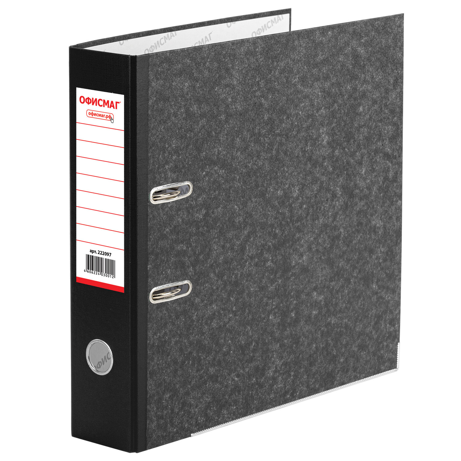Папка-регистратор ОФИСМАГ, фактура стандарт, с мраморным покрытием, 75 мм, черный корешок Код товара: 222097 327,15 ₽ Купить Производитель:ОФИСМАГ Папка-регистратор ОФИСМАГ - удобный и практичный элемент, составляющий основу архивного хранения документации и организации документооборота. Папка формата А4 с вертикальной ориентацией изготовлена из высококачественного износоустойчивого картона с покрытием под "мрамор". Ширина корешка в 75 мм позволяет разместить до 500 листов. Нижние края папки защищены металлическими уголками, что увеличивает срок службы в 2 раза. Прорези для колец на внешней крышке позволяют оставаться папке закрытой даже при большом количестве бумаг, а надежный арочный механизм легко справляется с ежедневными нагрузками. Корешок снабжен этикеткой для маркировки содержимого, что позволяет структурировать информацию.Производство: РоссияФормат: А4Ширина корешка: 75 ммМатериал внешнего покрытия: бумагаМатериал внутреннего покрытия: бумагаВместимость: 500 листовМеталлический протектор нижней кромки: даСерия: MarbleЦвет корешка: черныйЦвет папки: черныйФормат папки ориентирован: вертикальноВес: 431 грРазмер упаковки: 7.5 × 31.7 × 28.8 смОбъём: 0.0037 м3Промежуточная упаковка: 20 штТранспортная упаковка: 20 штШтрих-код: 4606224030012 Файлы Приложение-1.pdf Приложение-2.pdf Сертификат-1.jpg Сертификат-2.jpg