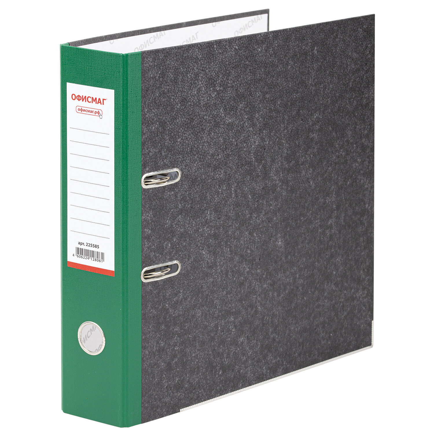 Папка-регистратор ОФИСМАГ, фактура стандарт, с мраморным покрытием, 75 мм, зеленый корешок Код товара: 225585 327,15 ₽ Купить Производитель:ОФИСМАГ Папка-регистратор ОФИСМАГ – удобный и практичный элемент, составляющий основу архивного хранения документации и организации документооборота. Папка формата А4 с вертикальной ориентацией изготовлена из высококачественного износоустойчивого картона с покрытием под "мрамор". Ширина корешка в 75 мм позволяет разместить до 500 листов. Нижние края папки защищены металлическими уголками, что увеличивает срок службы в 2 раза. Прорези для колец на внешней крышке позволяют оставаться папке закрытой даже при большом количестве бумаг, а надежный арочный механизм легко справляется с ежедневными нагрузками. Зеленый корешок снабжен этикеткой для маркировки содержимого, что позволяет структурировать информацию.Производство: РоссияФормат: А4Ширина корешка: 75 ммМатериал внешнего покрытия: бумагаМатериал внутреннего покрытия: бумагаВместимость: 500 листовМеталлический протектор нижней кромки: даСерия: MarbleЦвет корешка: зеленыйЦвет папки: черныйФормат папки ориентирован: вертикальноВес: 414 грРазмер упаковки: 7.3 × 31.5 × 28.9 смОбъём: 0.0039 м3Промежуточная упаковка: 20 штТранспортная упаковка: 20 штШтрих-код: 4606224128061 Приложение-1.pdf Сертификат-1.jpg Сертификат-2.jpg