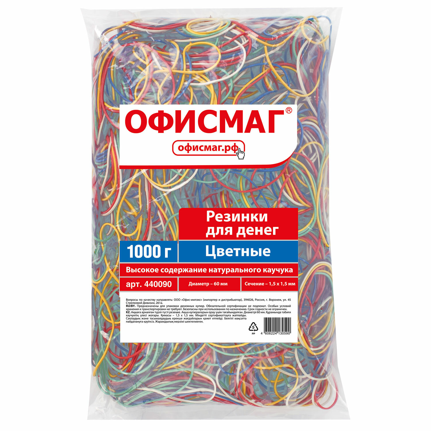 Резинки банковские универсальные диаметром 60 мм, ОФИСМАГ 1000 г, цветные, натуральный каучук Код товара: 440090 582,51 ₽ Купить Производитель:ОФИСМАГ Банковские резинки ОФИСМАГ предназначены для упаковки денежных купюр на производстве, офисе, в различных учреждениях. Благодаря натуральному каучуку они могут свободно растягиваться в несколько раз и мгновенно возвращаются к своему первоначальному диаметру, равному 60 мм. Толщина в 1,5 мм гарантирует прочность изделия. Вес - 1000 г, количествА в упаковке около 1500 штук хватит на максимально продолжительное время. Цвет - ассорти.Производство: КитайДиаметр: 60 ммСерия: Standard Толщина изделия: 1.5 ммВес: 1000 гМатериал: натуральный каучукЦвет: разноцветныйРазмер упаковки: 8.3 × 27.6 × 19.3 смОбъём: 0.0021 м3Промежуточная упаковка: 20 штТранспортная упаковка: 20 штШтрих-код: 4606224130590 Файлы Сертификат-1.jpg Сертификат-2.jpg Сертификат-3.jpg Сертификат-4.jpg Сертификат-5.jpg Сертификат-6.jpg Сертификат-7.jpg Сертификат-8.jpg Сертификат-9.jpg Сертификат-10.jpg Сертификат-11.jpg Сертификат-12.jpg Сертификат-13.jpg Сертификат-14.jpg Сертификат-15.jpg Сертификат-16.jpg Сертификат-17.jpg Сертификат-18.jpg Сертификат-19.jpg Сертификат-20.jpg Сертификат-21.jpg Сертификат-22.jpg Сертификат-23.jpg Сертификат-24.jpg Сертификат-25.jpg Сертификат-26.jpg