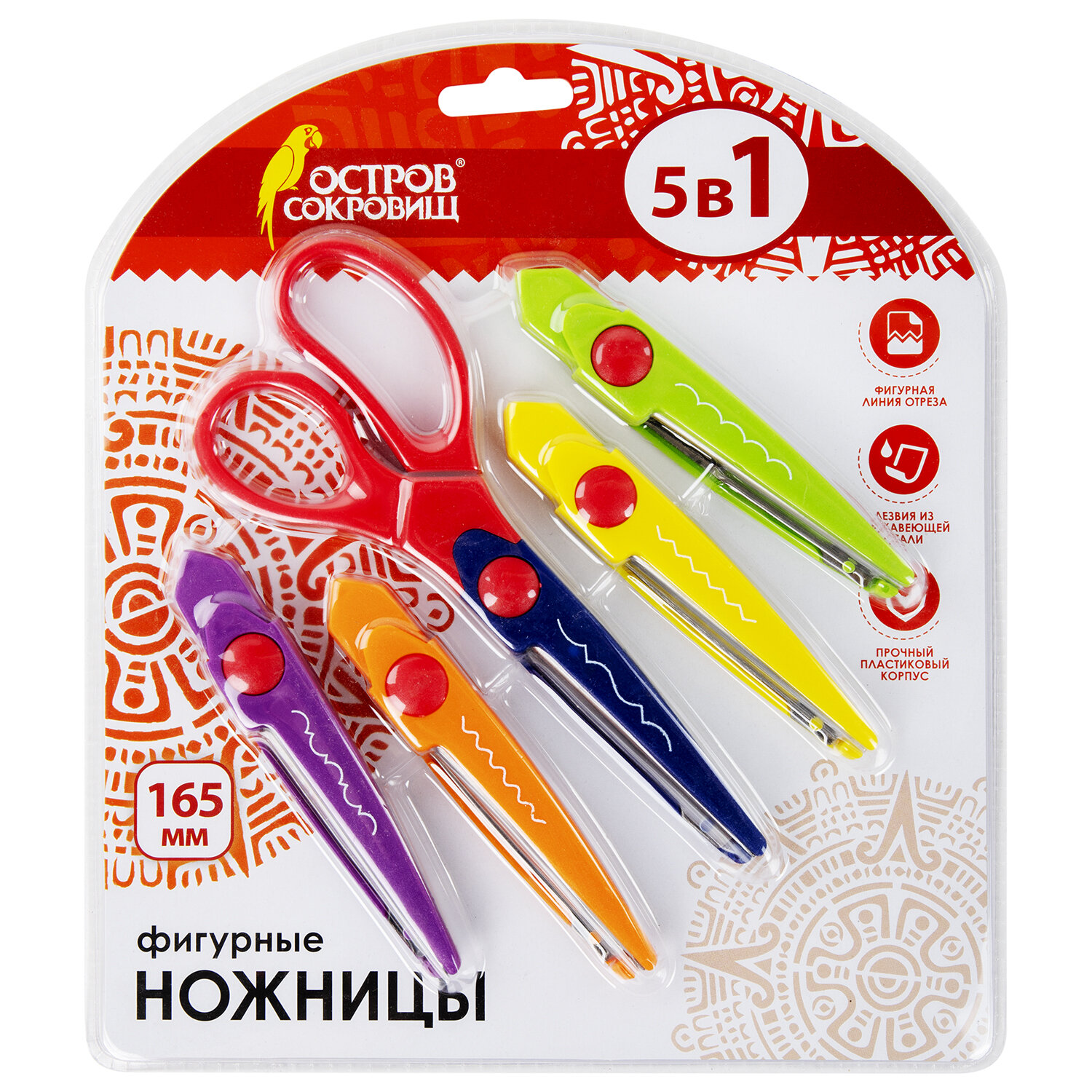 Ножницы ОСТРОВ СОКРОВИЩ, 165 мм, 5 сменных фигурных лезвий, в блистере Код товара: 236782 429,49 ₽ Купить Производитель:ОСТРОВ СОКРОВИЩ Ножницы ОСТРОВ СОКРОВИЩ используются для вырезания деталей аппликаций и создания фигурного края поделок: открыток, страничек альбомов и блокнотов. Подходят для работы с бумагой и картоном. Фигурные ножницы с различными узорами в дисплее - незаменимые помощники в работе с бумагой и картоном. Яркий пластиковый корпус и металлические лезвия из нержавеющей стали с закругленными концами делают ножницы подходящими для детского использования. На одном из лезвий изображен узор, который получается в результате вырезания. Фигурные ножницы найдут применение как в детском, так и взрослом творчестве. С помощью таких ножниц можно делать красивые открытки и рамочки, украшать альбомы, обложки блокнотов, упаковку для подарков, закладки и т.д. Закругленные концы и пластиковые накладки обеспечивают безопасность при использовании.Производство: КитайДлина: 165 ммТип ножниц: универсальныеЗакругленные концы: даЦвет: ассортиФигурные лезвия: даУзор лезвия: ассортиДлина лезвий: 65 ммКоличество сменных фигурных лезвий в комплекте: 5 шт.Серия: Аккуратный крайРучки: эргономичныеМатериал ручек: пластикМатериал лезвия: нержавеющая стальУпаковка: с европодвесомВес: 196 грРазмер упаковки: 2.2 × 23.2 × 21.1 смОбъём: 0.0013 м3Промежуточная упаковка: 4 штТранспортная упаковка: 48 штШтрих-код: 4606224171296 Сертификат-1.jpg Сертификат-2.jpg Сертификат-3.jpg