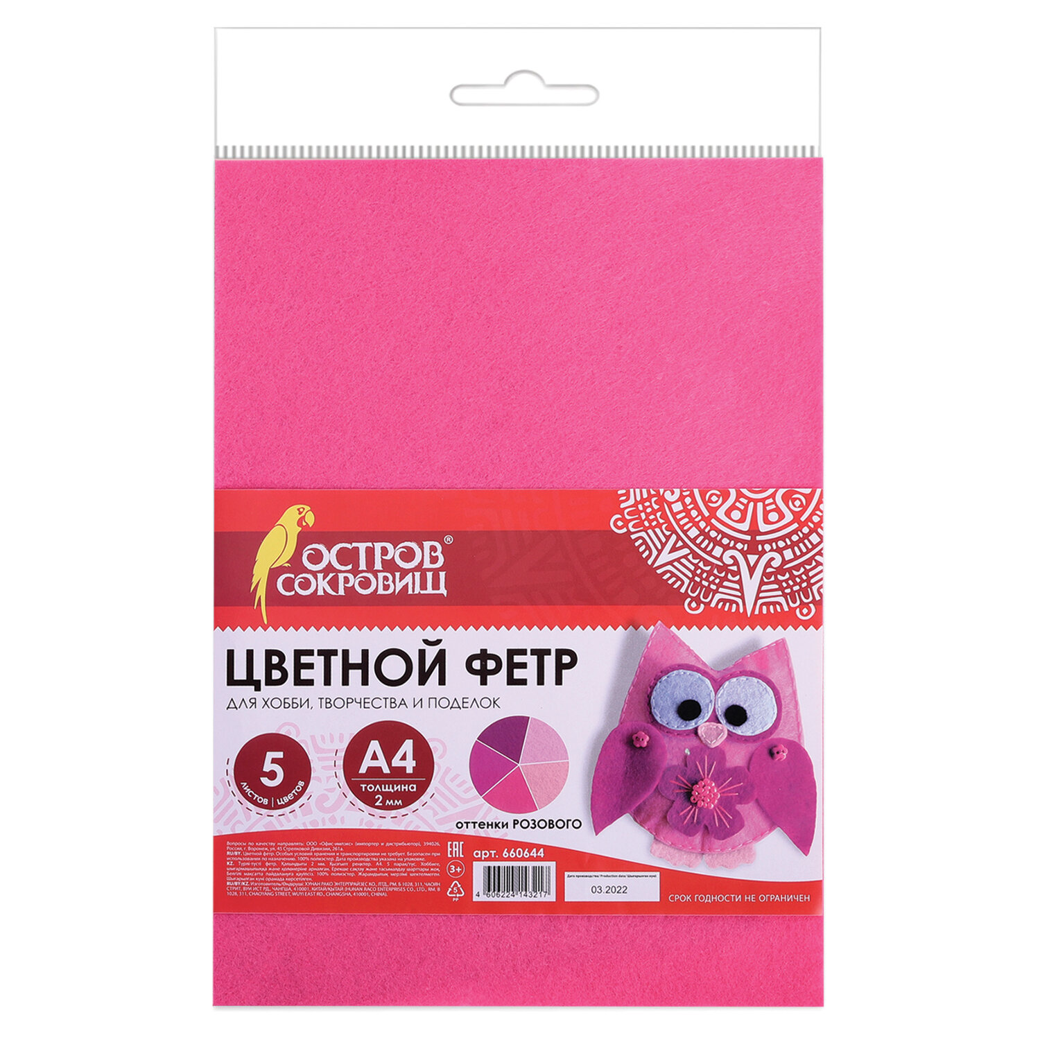 Цветной фетр МЯГКИЙ А4, 2 мм, 5 листов, 5 цветов, плотность 170 г/м2, оттенки розового, ОСТРОВ СОКРОВИЩ Ликвидация Код товара: 660644 77,68 ₽ Купить Производитель:ОСТРОВ СОКРОВИЩ Цветной фетр ОСТРОВ СОКРОВИЩ предназначен для создания ярких творческих поделок дома, в школе и в детском саду. Используется для создания аппликаций и вышивания, легко режется и приклеивается на ровную поверхность. Плотность - 170 г/м2 и толщина в 2 мм гарантируют поделкам отличное качество и долгий срок службы. Цветной фетр формата А4 поставляется в упаковке по 5 листов, в 5 различных оттенках розового цвета. Такое разнообразие придется по вкусу любому покупателю. Фетр Остров Сокровищ обладает приятной нежной фактурой, прост и удобен в использовании. Края не осыпаются при разрезании, благодаря чему не нуждаются в дополнительной обработке. Данный товар относится к среднему ценовому сегменту.Производство: КитайТип товара : фетр А4 оттенки одного цветаКоличество листов: 5Количество цветов: 5Жесткость: мягкийОсобенности: Оттенки розовогоТолщина: 2 ммШирина: 210 ммДлина: 297 ммЦвет: розовыйУзор: нетВес: 68 грРазмер упаковки: 0.9 × 29.9 × 21.3 смОбъём: 0.0005 м3Промежуточная упаковка: 20 штТранспортная упаковка: 160 штШтрих-код: 4606224143217 Сертификат-1.jpg Сертификат-2.jpg Сертификат-3.jpg