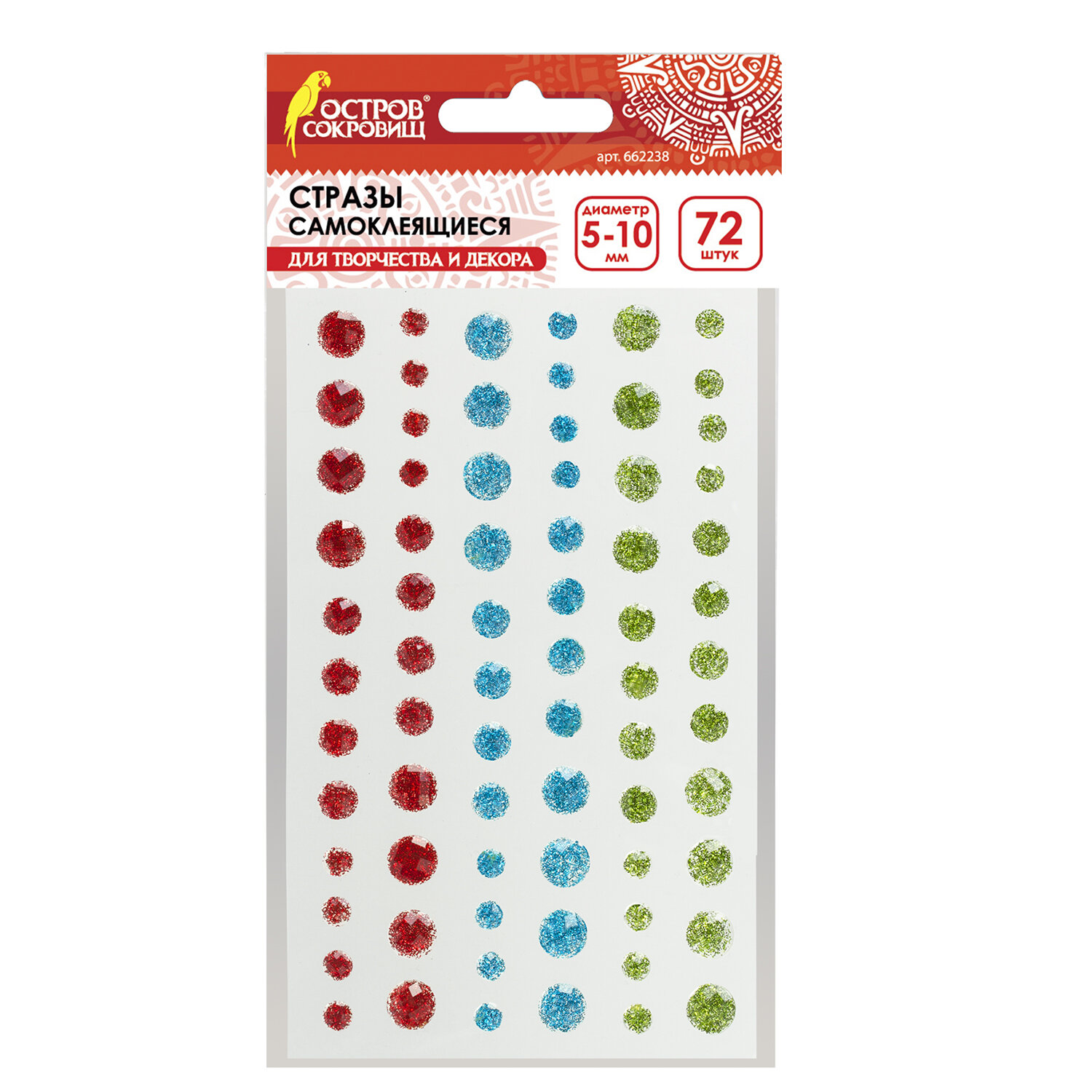 Стразы самоклеящиеся КРУГЛЫЕ, 5-10 мм, 72 штуки, блестящие, на подложке, ОСТРОВ СОКРОВИЩ Код товара: 662238 216,81 ₽ Купить Производитель:ОСТРОВ СОКРОВИЩ С помощью самоклеящихся страз ОСТРОВ СОКРОВИЩ можно декорировать поделки и аппликации, детали интерьера, одежду и гаджеты, реализовать самые смелые творческие идеи. Самоклеящиеся круглые стразы диаметром 5 мм, 8 мм и 10 мм предназначены для украшения различных изделий. В упаковке содержится 72 страза 3 разных цветов - красный, голубой, зелёный. Благодаря наличию граней на поверхности, блестящие стразы сверкают и переливаются ещё сильнее. Стразы расположены на прозрачной подложке размером 9,5х15,5 см. Необходимо просто отклеить страз от подложки и поместить на выбранную поверхность. Благодаря качественному клеевому слою, стразы надёжно держатся на любых видах поверхности: бумага, картон, пластик, дерево и т.д.Производство: КитайФорма: круглая на подложкеЦвет: ассортиКоличество цветов в наборе: 3 шт.Количество в упаковке: 72 шт.Длина: 155 ммШирина: 95 ммМатериал: акрилТип крепления: самоклеящиесяНа подложке: даВозрастная группа: старше 3-х летУпаковка: пакет с европодвесомВес: 18 грРазмер упаковки: 0.4 × 20.7 × 10.3 смОбъём: 0.0001 м3Промежуточная упаковка: 10 штТранспортная упаковка: 500 штШтрих-код: 4606224246765 Файлы Сертификат-1.jpg Сертификат-2.jpg Сертификат-3.jpg Сертификат-4.jpg