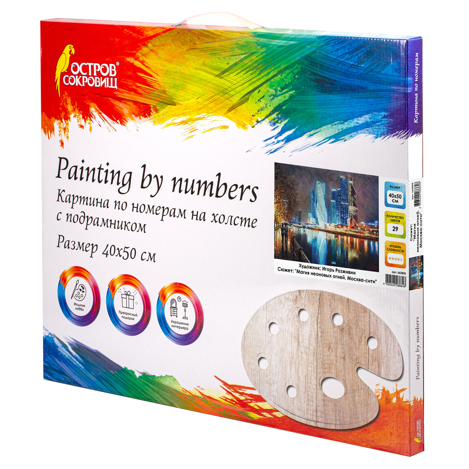 Картина по номерам 40х50 см ОСТРОВ СОКРОВИЩ "Магия неоновых огней. Москва-сити" на подрамнике, акрил, кисти Код товара: 662890 771,89 ₽ Купить Производитель:ОСТРОВ СОКРОВИЩ Картина по номерам ОСТРОВ СОКРОВИЩ "Магия неоновых огней. Москва-сити" – это отличный способ почувствовать себя художником и интересно провести время. Работа над картиной развивает внимательность, усидчивость, аккуратность. Представлен эксклюзивный сюжет по картине российского художника И.В. Разживина. В набор входит: 1 хлопковый холст на подрамнике с контуром, 1 лист бумаги для тренировки, набор из 29 акриловых красок объемом 3 мл каждая, 3 синтетические кисти и комплект металлических креплений для подвешивания на стену. Краски укрывистые, быстро сохнут без потери цвета. Каждый цвет в наборе подходит под конкретный номер, благодаря чему нет необходимости смешивать краски. Однако, если Вы хотите добиться нового оттенка, наши краски с легкостью позволят это сделать благодаря отличной смешиваемости. 3 синтетические кисти разного размера идеально подойдут для закрашивания элементов различной сложности. Холст из 100% хлопка плотностью 290 г\м2 с высококачественной печатью и отличным натяжением. При работе с картиной дополнительно могут понадобиться: емкость с водой для мытья кисти и салфетка для удаления воды с кисти (в комплект не входят). Подходит для потребителей от 8 до 80 лет. Поставляется в картонной упаковке с ручкой.Производство: КитайТип товара: картина по номерам 40х50 смВид творчества: рисование (роспись)Количество предметов в наборе: 35 шт.Комплектация: акриловые краски, кисть, крепеж, лист бумаги для тренировки, холст на подрамникеВозрастная группа: 8-80 летПол: универсальныйСерия: Российские художникиСюжет: Москва-ситиМатериал: холстДлина готового изделия: 50 смШирина готового изделия: 40 смГлубина готового изделия: 2.5 смУпаковка: картонная коробка с ручкойСрок годности: 48 месВес: 815 грРазмер упаковки: 2.5 × 51.2 × 41.4 смОбъём: 0.0058 м3Промежуточная упаковка: 30 штТранспортная упаковка: 30 штШтрих-код: 4606224286648 Файлы Сертификат-1.jpg Сертификат-2.jpg Сертификат-3.jpg Сертификат-4.jpg Сертификат-5.jpg