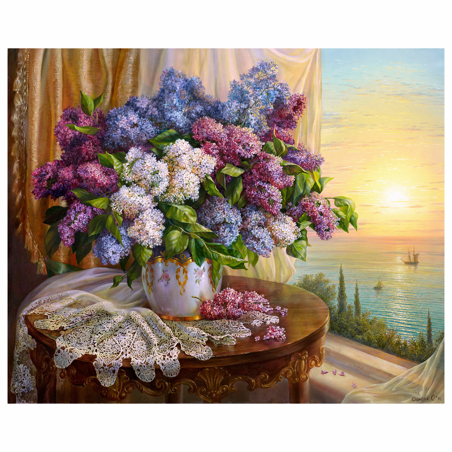 Картина по номерам 40х50 см, ОСТРОВ СОКРОВИЩ "Букет сирени", на подрамнике, акрил, кисти Код товара: 663276 849,36 ₽ Купить Производитель:ОСТРОВ СОКРОВИЩ Картины по номерам на холсте с подрамником размером 40х50 см с дизайнами по картинам российских художников – это отличный способ почувствовать себя художником и интересно провести время. Все необходимое для рисования – в наборе. Представлен сюжет по картине "Букет сирени (Букет сирени на фоне вечернего моря)" российской художницы Ольги Дандорф. В набор входит: 1 хлопковый холст на подрамнике с контуром, 1 лист бумаги для тренировки, набор из 36 акриловых красок объемом 3 мл каждая, 3 синтетические кисти и комплект металлических креплений для подвешивания на стену. Краски укрывистые, быстро сохнут без потери цвета. Каждый цвет в наборе подходит под конкретный номер, благодаря чему нет необходимости смешивать краски. Однако, если вы хотите добиться нового оттенка, наши краски с легкостью позволят это сделать благодаря отличной смешиваемости. 3 синтетические кисти разного размера идеально подойдут для закрашивания элементов различной сложности. Холст из 100% хлопка плотностью 290 г/м2 с высококачественной печатью и отличным натяжением. При работе с картиной дополнительно могут понадобиться: емкость с водой для мытья кисти и салфетка для удаления воды с кисти (В КОМПЛЕКТ НЕ ВХОДЯТ). Подходит для потребителей всех возрастов (от 8 до 80 лет). Поставляется в картонной упаковке с ручкой.Производство: КитайТип товара: картина по номерам 40х50 смВид творчества: рисование (роспись)Количество предметов в наборе: 42 шт.Комплектация: акриловые краски, кисть, крепеж, лист бумаги для тренировки, холст на подрамникеВозрастная группа: 8-80 летПол: универсальныйСерия: Российские художникиСюжет: Букет сирениМатериал: холстДлина готового изделия: 50 смШирина готового изделия: 40 смГлубина готового изделия: 2.5 смУпаковка: картонная коробка с ручкойСрок годности: 48 месВес: 833 грРазмер упаковки: 2.6 × 50.9 × 41.4 смОбъём: 0.0058 м3Промежуточная упаковка: 30 штТранспортная упаковка: 30 штШтрих-код: 4606224415383 Файлы Сертификат-1.jpg Сертификат-2.jpg Сертификат-3.jpg Сертификат-4.jpg Сертификат-5.jpg