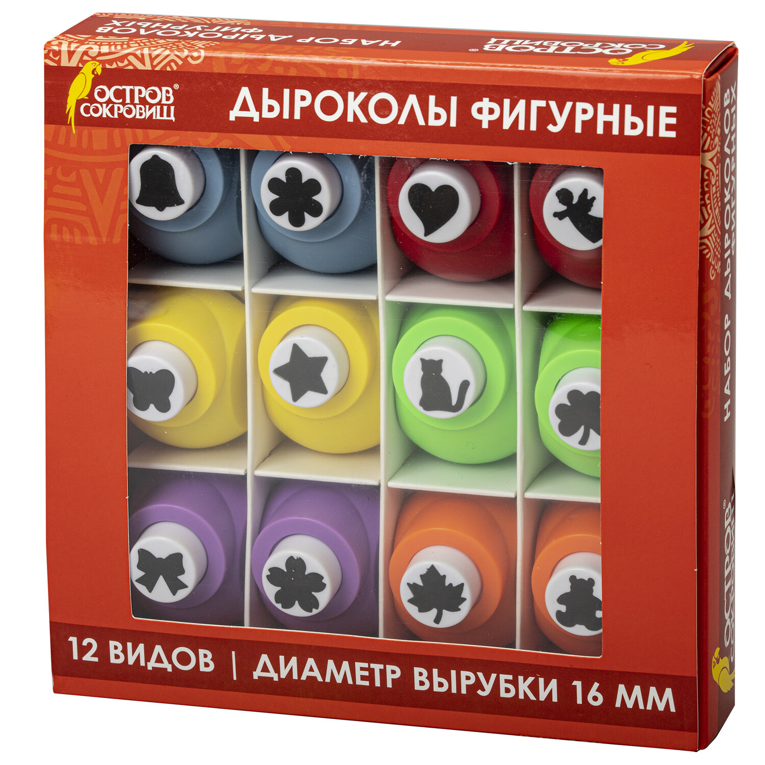 Дыроколы фигурные, НАБОР 12 видов, диаметр вырубки 16 мм, ОСТРОВ СОКРОВИЩ Код товара: 665227 1 247,23 ₽ Купить Производитель:ОСТРОВ СОКРОВИЩ Незаменимые и очень простые инструменты для детского и взрослого творчества. Используются для создания аппликаций, оформления открыток, альбомов, пригласительных, а также для изготовления конфетти. Фигурные дыроколы ОСТРОВ СОКРОВИЩ предназначены для декорирования изделий путем создания четкой и красивой перфорации разной формы. Дырокол компактный и удобный в применении, размер - 32х45х38 мм. Диаметр пробиваемого отверстия - 16 мм, формы вырубки: сердце, звезда, василёк, клевер, кленовый листок, бантик, бабочка, ангел, колокольчик, мишка, кот, цветок. Один дырокол делает одну форму вырубки. В наборе – 12 видов дыроколов разных цветов с разными вырубками. Режущие части, изготовленные из высококачественного металла, защищены пластмассовым корпусом, что делает дырокол ОСТРОВ СОКРОВИЩ безопасным для детей. Дыроколом можно работать по бумаге, картону и пористой резине плотностью от 80 до 200 г/м2.Производство: КитайФорма вырубки: ассорти, 12 видов.Диаметр вырубки: 16 ммЦвет: ассортиВысота: 4.5 смШирина: 3.8 смГлубина: 3,2 смУпаковка: картонная коробкаТип товара: дырокол фигурныйВес: 601 грРазмер упаковки: 4 × 16.7 × 16.9 смОбъём: 0.0015 м3Промежуточная упаковка: 12 штТранспортная упаковка: 12 штШтрих-код: 4606224398044 Файлы Сертификат-1.jpg Сертификат-2.jpg Сертификат-3.jpg Сертификат-4.jpg Сертификат-5.jpg Сертификат-6.jpg Сертификат-7.jpg Сертификат-8.jpg Сертификат-9.jpg Сертификат-10.jpg Сертификат-11.jpg Сертификат-12.jpg Сертификат-13.jpg Сертификат-14.jpg Сертификат-15.jpg Сертификат-16.jpg Сертификат-17.jpg Сертификат-18.jpg Сертификат-19.jpg Сертификат-20.jpg Сертификат-21.jpg Сертификат-22.jpg Сертификат-23.jpg Сертификат-24.jpg Сертификат-25.jpg Сертификат-26.jpg