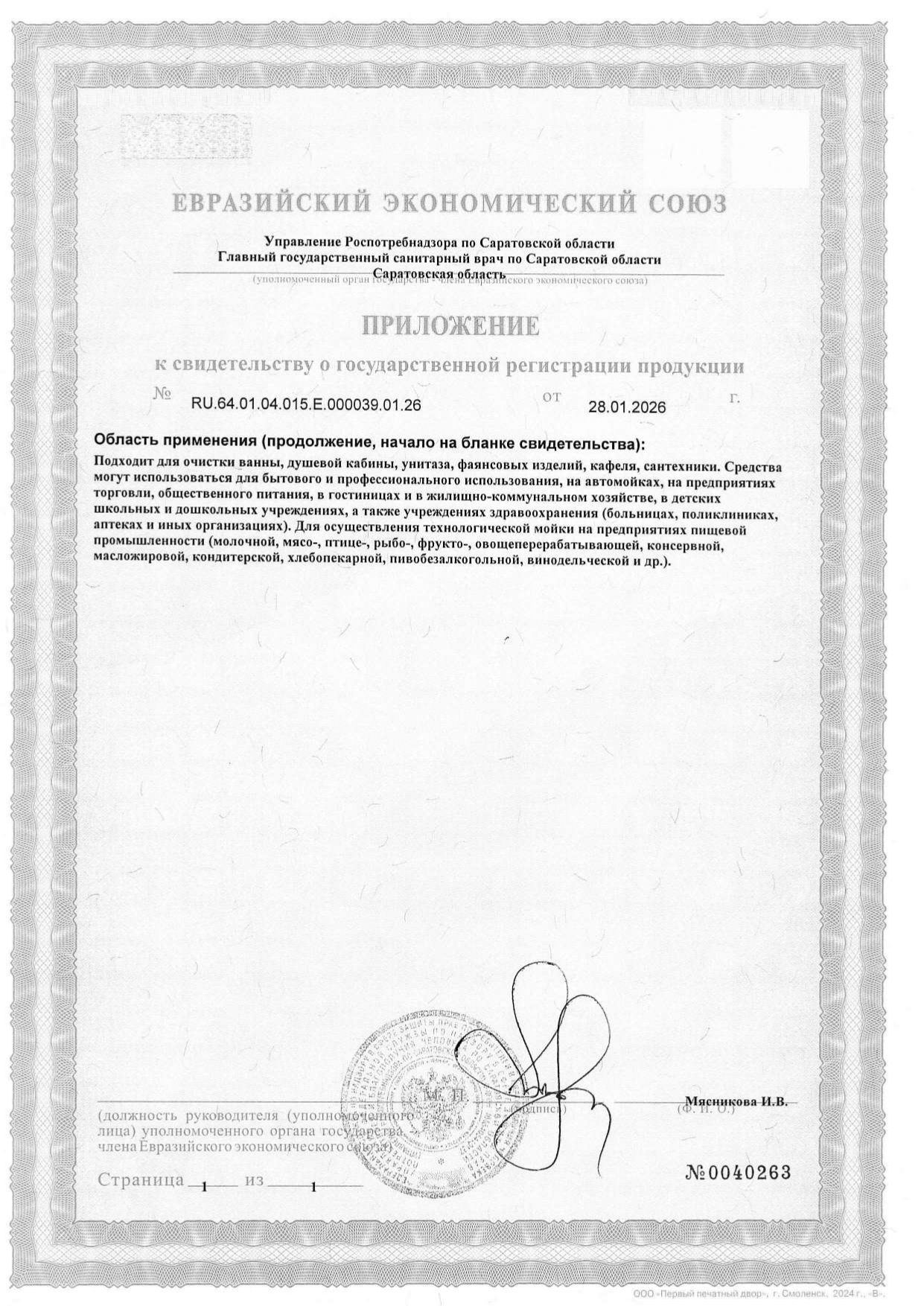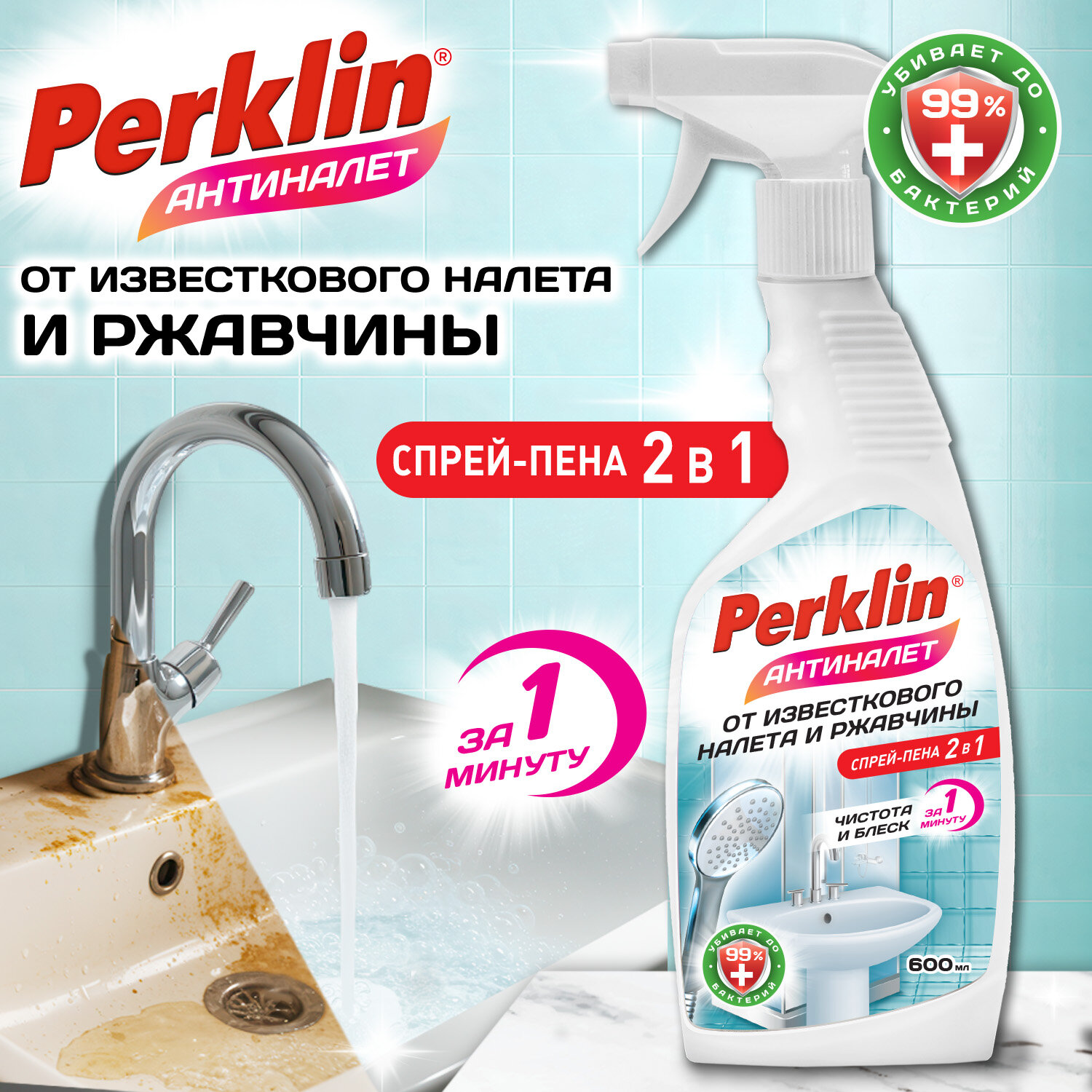 Средство для чистки сантехники кислотное ЧИСТОТА И БЛЕСК 600мл PERKLIN АНТИНАЛЕТ Код товара: 702400 182,99 ₽ Купить Производитель:PERKLIN PERKLIN АНТИНАЛЕТ - универсальное моющее средство на основе лимонной кислоты. Подходит для чистки ванны, душевой кабины, сантехники, фаянсовых изделий и кафеля от известкового налета, потеков ржавчины, мыльных разводов и солевых отложений. Универсальное моющее средство PERKLIN АНТИНАЛЕТ на основе лимонной кислоты для ванной комнаты и кухни. Подходит для чистки ванны, душевой кабины, унитаза, фаянсовых изделий, кафеля, сантехники, от известкового налета, подтеков ржавчины, мыльных разводов, водного камня и солевых отложений. Рекомендовано для акриловых ванн. Эффективно и при этом бережно удаляет сложные и застарелые загрязнения. Придает поверхности чистоту и блеск, сохраняя эффект на несколько дней. Спрей эффективен для очистки поверхностей, устойчивых к кислотам. Способ применения: 1. Установите носик распылителя в рабочее положение. 2. Равномерно нанесите средство на поверхность. 3. Подождите 1–2 минуты (для застарелых загрязнений можно увеличить время, но не допускать высыхания). 4. Протрите губкой или щеткой и тщательно смойте водой Состав: очищенная вода, лимонная кислота, неионогенные ПАВ, d-лимонен, ароматизирующая добавка.Производство: РоссияНазначение: для сантехники, кафеля, металлических и полимерных поверхностей и удаления ржавчиныСерия: АНТИНАЛЕТЭффект от использования: дезинфекция, очищение поверхности, удаление известкового налета, удаление ржавчиныПодходит для поверхностей: акрил, кафель, пластик, фаянс, хромОбъем/вес: 600 мл/гОтдушка: лимонФорма выпуска: жидкостьСодержит: кислотуРазрешено для детских учреждений: даОбласть применения: бытовое использование, пищевая промышленность, предприятия общественного питания, производственные компании, санаторно-курортные учреждения, сфера услуг, торговые учреждения, учреждения образования (школьные, дошкольные, средние, высшие)pH: 2Дозатор: распылительУпаковка: флаконСрок годности: 36 месВес: 705 грРазмер упаковки: 4.4 × 28.7 × 9.3 смОбъём: 0.0015 м3Промежуточная упаковка: 8 штТранспортная упаковка: 8 штШтрих-код: 4670113627539 Файлы Сертификат-1.jpg Сертификат-2.jpg Сертификат-3.jpg Сертификат-4.jpg Сертификат-5.jpg Сертификат-6.jpg Сертификат-7.jpg Сертификат-8.jpg Сертификат-9.jpg Сертификат-10.jpg Сертификат-11.jpg Сертификат-12.jpg Сертификат-13.jpg Сертификат-14.jpg Сертификат-15.jpg Сертификат-16.jpg Сертификат-17.jpg Сертификат-18.jpg Сертификат-19.jpg Сертификат-20.jpg Сертификат-21.jpg Сертификат-22.jpg Сертификат-23.jpg Сертификат-24.jpg Сертификат-25.jpg Сертификат-26.jpg Сертификат-27.jpg
