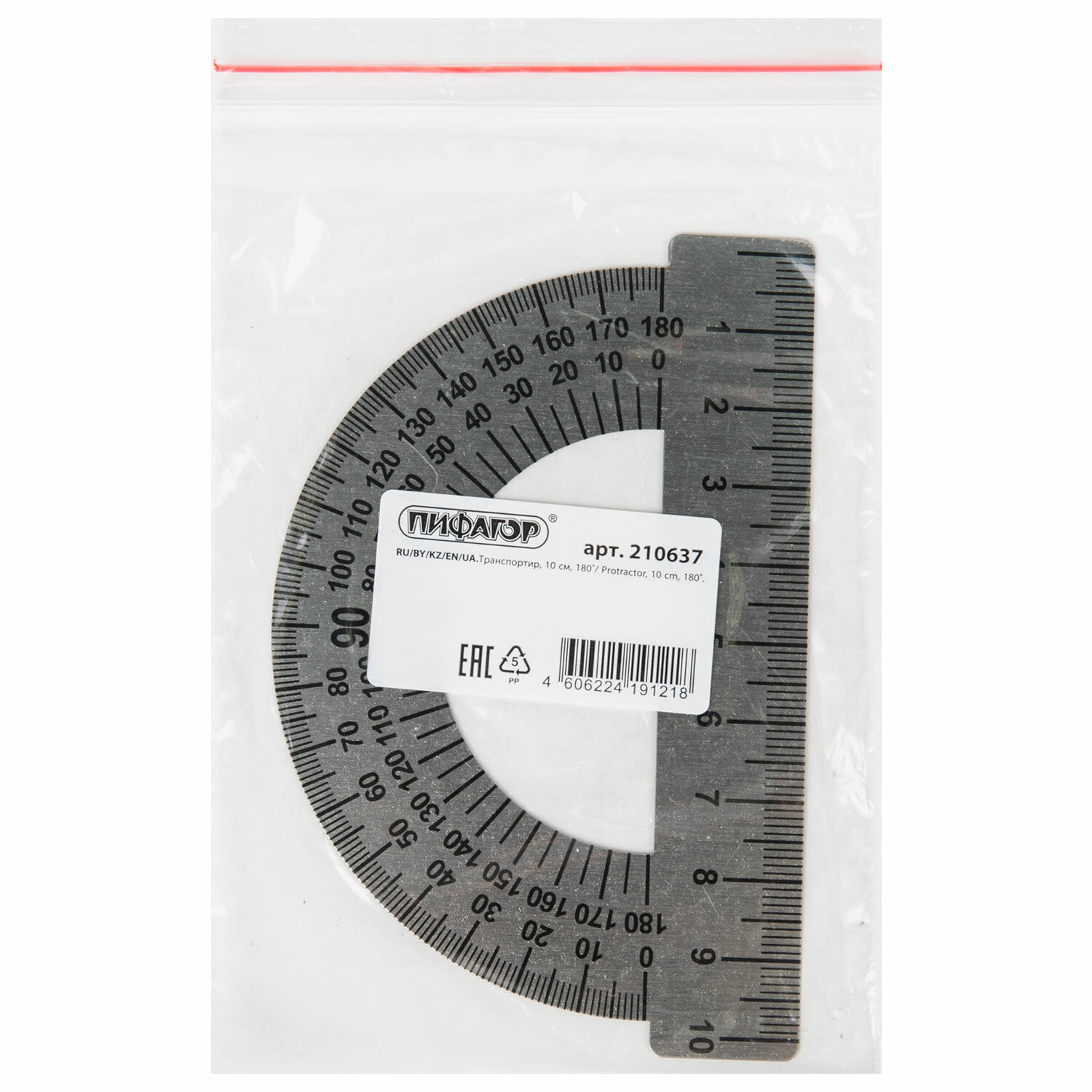 Транспортир 10 см, 180 градусов, металлический, ПИФАГОР Код товара: 210637 33,65 ₽ Купить Производитель:ПИФАГОР Металлический транспортир ПИФАГОР незаменим для чертёжных и измерительных работ. Изготовлен из высококачественной пружинистой стали со специальным стойким покрытием, защищающим его от коррозии. Длина разметки линейки - 10 см, шкала транспортира - 180°. Обладает четкой печатной разметкой. Устойчив к ударам, сгибам, скручиванию. Размер - 3,5х13,5 см. Толщина 1 мм. Упакован в прозрачный пакет.Производство: РоссияМатериал: металлШкала транспортира: 180 °Длина разметки линейки: 10 смТип шкалы: печатнаяУстойчив к: сгибам, скручиванию, ударамВысота: 3.5 смШирина: 13.5 смТолщина: 1 ммЦвет: графитовыйУпаковка: пакетВес: 8 грРазмер упаковки: 0.1 × 10.4 × 7.3 смПромежуточная упаковка: 100 штТранспортная упаковка: 1000 штШтрих-код: 4606224191218 Сертификат-1.jpg Сертификат-2.jpg Сертификат-3.jpg