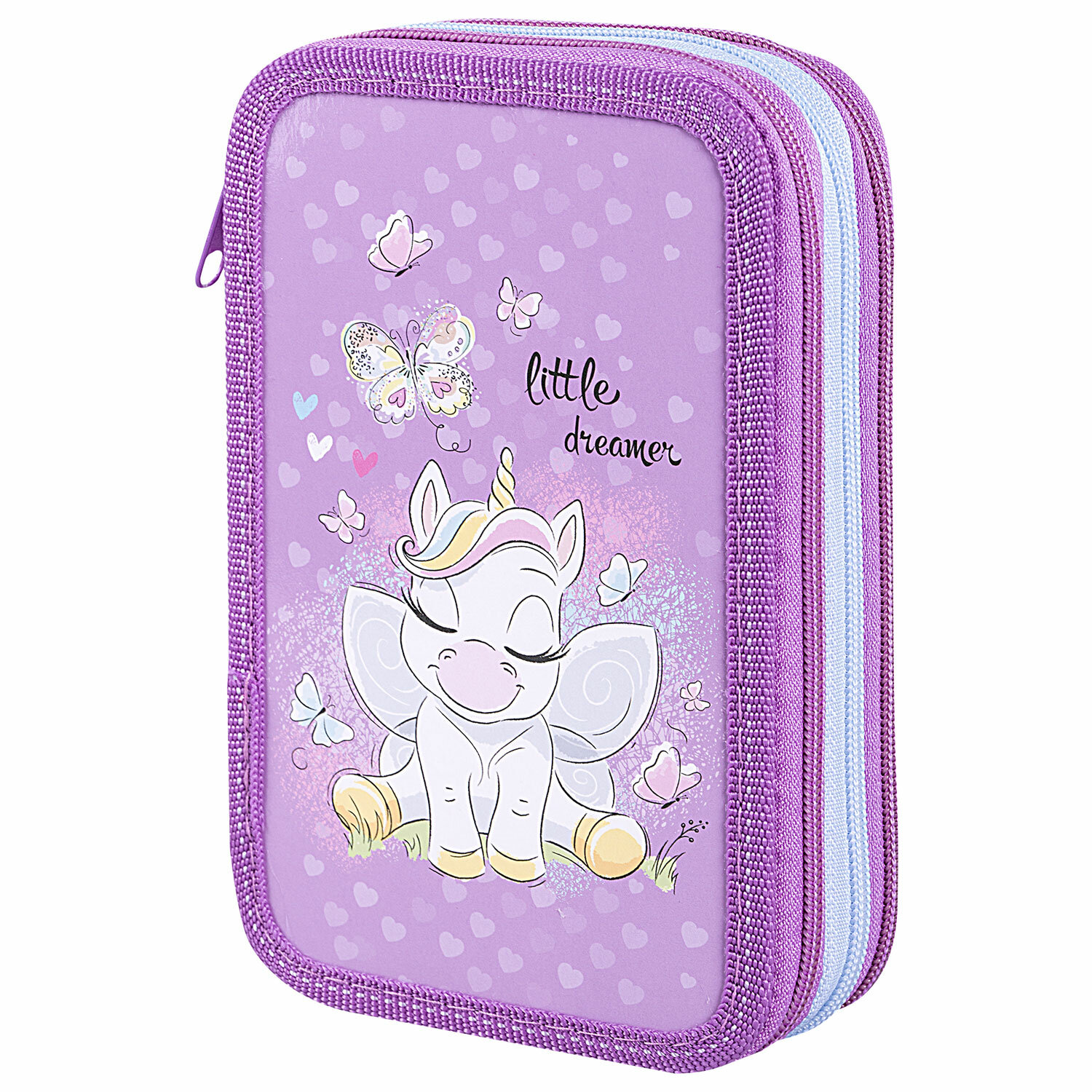 Пенал ПИФАГОР, 3 отделения, ламинированный картон, 19х11 см, "Sweet Dreamer" Код товара: 271545 399 ₽ Купить Производитель:ПИФАГОР Пенал ПИФАГОР яркого дизайна с тремя отделениями выполнен из ламинированного картона, имеет тканевый торец. Удобные молнии с металлическим бегунком с трех сторон, прочные резинки для предметов. Вмещает до 42 предметов. Материал пенала – ламинированный картон с цветной печатью, ярким дизайном. Основа пенала – плотный картон, обшитый тканью по краям, с тканевым торцом. Такая конструкция отличается износостойкостью и прочностью, поможет защитить канцелярские принадлежности от повреждений. Пенал имеет 3 отделения, внутри на каждой створке имеются прочные резинки для канцелярских принадлежностей. Внутренняя часть выполнена из картона с глянцевой ламинацией с узором. Пенал стандартного размера 19х11 см, что позволяет легко размещать его в ранце, рюкзаке или сумке. Хорошая наполняемость пенала дает возможность держать под рукой все необходимые для уроков канцтовары. Упакован в ПЭТ-пакет на клейкой ленте и с европодвесом. Позволяет сохранить качество товара при транспортировке и удобно размещать его в магазине.Производство: РоссияТип пенала: трехкамерныйНазначение: для девочекСерия: TRIPLETДизайн: Sweet DreamerЗастежка: молнияКоличество отделений: 3Материал: ламинированный картонОсновной цвет: сиреневыйДлина: 19 смШирина: 11 смУпаковка: прозрачный пакетВес: 205 грРазмер упаковки: 5.7 × 19.6 × 13.4 смОбъём: 0.0015 м3Промежуточная упаковка: 24 штТранспортная упаковка: 24 штШтрих-код: 4606224393155 Файлы Сертификат-1.jpg Сертификат-2.jpg Сертификат-3.jpg Сертификат-4.jpg