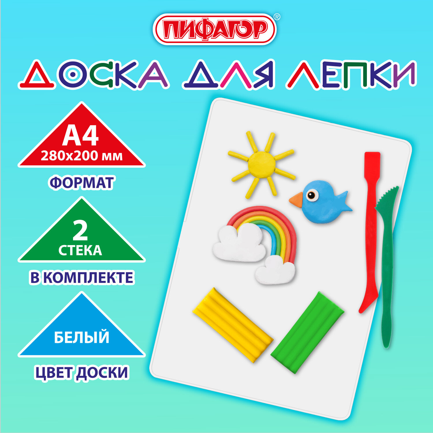 Доска для лепки А4, 280х200 мм, ПИФАГОР, белая, 2 стека Код товара: 274254 130,15 ₽ Купить Производитель:ПИФАГОР Доска для работы с пластилином ПИФАГОР производится из специального пластика, к которому не липнет пластилин. Гладкая фактура материала устойчива к царапинам. Позволяет детям заниматься лепкой, предохраняя мебель от загрязнения. Производится из жесткого прочного пластика толщиной 1,65 мм, к которому не липнет пластилин. Гладкая фактура материала устойчива к царапинам. Размер – 280х200 мм (формат А4). Поставляется в комплекте с двумя стеками.Производство: РоссияТип товара: доска для лепкиКоличество предметов в наборе: 3 шт.Комплектация: 2 стека, доскаДлина: 280 ммШирина: 200 ммТолщина: 1.65 ммМатериал: пластикЦвет: белый матовыйУпаковка: термопленкаВес: 100 грРазмер упаковки: 0.3 × 27.9 × 19.6 смОбъём: 0.0002 м3Промежуточная упаковка: 40 штТранспортная упаковка: 40 штШтрих-код: 4606224520117 Файлы
