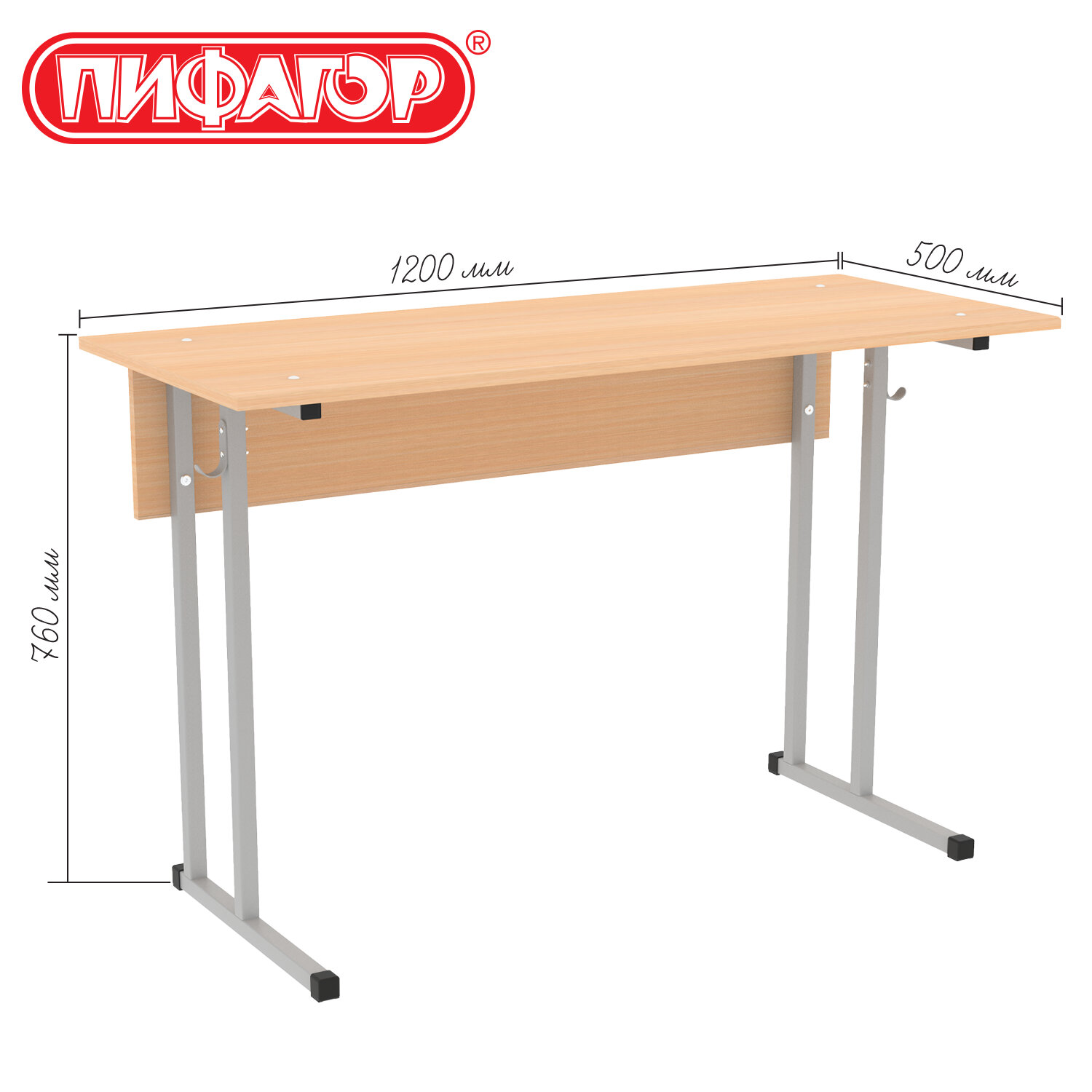 Стол-парта 2-местный нерегулируемый ПИФАГОР SD-1, 1200х500х760 мм, рост 6 (170-190 см), серый каркас, ЛДСП бук Код товара: 533346 3 843 ₽ Купить Производитель:ПИФАГОР Стол-парта 2-местный ПИФАГОР SD-1, нерегулируемый предназначен для школ и других учебных заведений. Металлические опоры из двух труб придают дополнительную прочность и надежность конструкции. Удобен и безопасен, соответствует требованиям ГОСТ и СанПиН. Сверхпрочный металлический каркас из стальных труб прямоугольного сечения 25х25х1,2 мм. На каркас нанесено стойкое к механическому воздействию порошковое полимерное покрытие. Столешница имеет размеры 1200х500 мм, что позволяет комфортно разместиться за столом двоим людям. Столешница и царга изготовлены из плиты ЛДСП 16 мм с ламинированным покрытием. По периметру столешница защищена ударопрочной кромкой ПВХ толщиной 2 мм, а царга – кромкой ПВХ толщиной 0,5 мм. Стол комплектуется 2-мя металлическими крючками для ранца или сумки, установленными на каркасе стоек. Максимальная нагрузка на крючок – 5 кг. Торцы труб закрыты пластиковыми заглушками, винты крепления скрыты, что обеспечивает дополнительную безопасность. Стол соответствует функциональным размерам по ГОСТ 11015-93 и требованиям по ГОСТ 22046-2016. Мебель ПИФАГОР - фундамент твоих достижений!Производство: РоссияТип мебели: стол-партаКоличество мест: 2Материал каркаса: металлическая труба сечением 25х25 мм, толщина стенки 1,2 ммЦвет каркаса: серыйМатериал столешницы: ЛДСППокрытие столешницы: ламинатЦвет столешницы: букТолщина столешницы: 16 ммКомплектация: инструкция по сборке, крючки для портфелей, фурнитураШирина: 1200 ммГлубина: 500 ммВысота максимальная: 760 ммВысота минимальная: 760 ммПоставляется в разобранном виде: даРостовая группа: 6 (для детей ростом от 170 см)Серия: Стол-парта ПИФАГОР SDСоответствует требованиям ГОСТа: ГОСТ 22046-2016Вес: 14,04 кгРазмер упаковки: 9.7 × 121.5 × 52 смОбъём: 0.0613 м3Промежуточная упаковка: 1 штТранспортная упаковка: 1 штШтрих-код: 4606224549965 Файлы