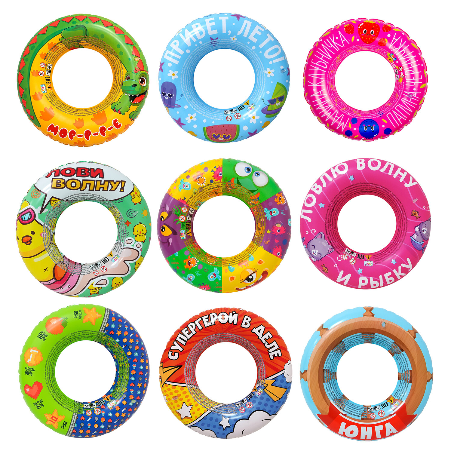 Надувной круг для плавания, диаметр 50 см, от 3 лет, АССОРТИ, 9 видов, PLAYMARKET Код товара: 680178 159 ₽ Купить Производитель:PLAYMARKET Надувной круг PLAYMARKET – это яркий, удобный и надежный аксессуар для отдыха на воде для детей от 3 лет. Диаметр круга – 50 см. Надувной круг для плавания – это веселый атрибут для купания. С помощью круга ребенок научится свободно держаться на воде и плавать. Круг выполнен из безопасного и прочного материала ПВХ, что гарантирует его службу на протяжении длительного времени. В сдутом виде он очень компактен, его можно взять с собой в любую поездку. В комплект входит: 1 плавательный круг. Представлен в 9 дизайнах (без возможности выбора). Максимальная нагрузка – 50 кг.Производство: КитайТип товара : Надувной круг для плаванияВозраст: от 3 летДиаметр: 50 смMaксимальная нагрузка: 50 кгКоличество в комплекте: 1 шт.Особенности: -Цвет: ассортиРисунок: АссортиМатериал: ПВХСерия: Товары для плаванияУпаковка: пакет с европодвесомВес: 86 грРазмер упаковки: 2 × 11.2 × 11.2 смОбъём: 0.0002 м3Промежуточная упаковка: 9 штТранспортная упаковка: 216 штШтрих-код: 4660115196669 Файлы Сертификат-1.jpg Сертификат-2.jpg Сертификат-3.jpg Сертификат-4.jpg Сертификат-5.jpg