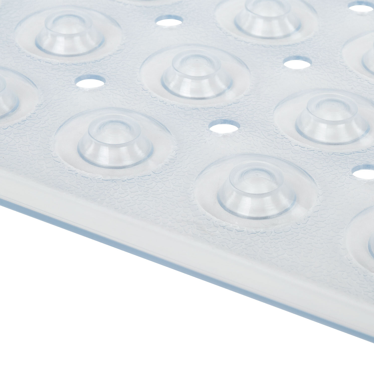 Коврик для ванны противоскользящий 100х40 см, "Полусферы", прозрачный, ПВХ, присоски, PRIMILA (ПРИМИЛА) Код товара: 700376 550,74 ₽ Купить Производитель:PRIMILA Противоскользящий коврик для ванны PRIMILA обеспечит безопасность и комфорт во время купания. Предназначен для защиты от падений во время водных процедур. Противоскользящий коврик для ванны изготовлен из прочного ПВХ-материала. Размер: 100х40 см. Форма: прямоугольник с закругленными краями. Рисунок: полусферы. Особенности: на одной из узких сторон имеется вырез под сливное отверстие. По всей задней поверхности коврика равномерно распределены присоски. Мягкая фактурная поверхность с выступами обеспечивает дополнительный массажный эффект для ступней. Перед использованием наберите в ванну теплую воду, положите коврик и плотно прижмите каждую присоску, чтобы закрепить коврик. Поднимите коврик за края и убедитесь, что он надежно закреплен. Коврик предназначен для использования на гладких, ровных, чистых и влажных поверхностях. Внимание! Коврик не прилипает к текстурированным, выложенным плиткой и неровным поверхностям! Коврик легко очищается и быстро сохнет, что делает его идеальным выбором для повседневного использования.Производство: КитайНазначение: в ваннуРазмер коврика для ванной (ДхШ): 100х40 смРазмер коврика для туалета (ДхШ): - смТолщина: 0 ммКоличество в комплекте: 1 шт.Цвет: прозрачныйОсобенности: на присоскахСерия: Увеличенный размерДизайн: ПолусферыМатериал: ПВХВес: 879 грРазмер упаковки: 6.1 × 40.5 × 6.5 смОбъём: 0.0022 м3Промежуточная упаковка: 20 штТранспортная упаковка: 20 штШтрих-код: 4606224474137 Сертификат-1.jpg Сертификат-2.jpg Сертификат-3.jpg