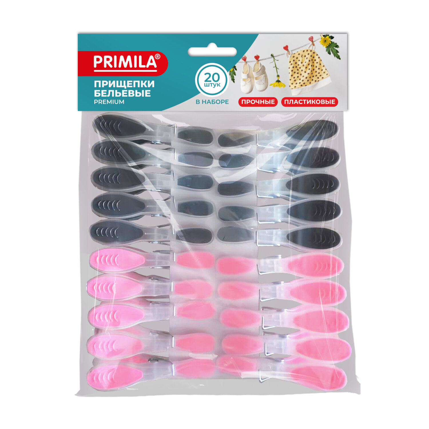 Прищепки бельевые 8,2 см, КОМПЛЕКТ 20 штук, прорезиненный пластик, ассорти, PRIMILA (ПРИМИЛА) PREMIUM Код товара: 700522 235,68 ₽ Купить Производитель:PRIMILA Прищепки бельевые PRIMILA PREMIUM – лучшее решение для максимально эффективной сушки белья. Универсальны в применении – подходят для улицы, дома, дачи, бассейна, саун и других помещений. Выбирайте комфорт и практичность с прищепками PRIMILA! Прищепки бельевые PRIMILA PREMIUM – прочное и долговечное решение для сушки вашего белья. Изготовлены из высококачественного, устойчивого к ультрафиолету пластика и термопластичной резины, они не деформируются под воздействием солнечных лучей и не окрашивают ткани. Прищепки оснащены прочными пружинами для надежного крепления, обеспечивают равномерное распределение нагрузки и не оставляют следов на одежде. Легкие, удобные в использовании и подходящие для частой эксплуатации прищепки – ваш прекрасный выбор! Основные преимущества прищепок для белья PRIMILA: • Прищепки выполнены из прочного пластика, что позволит использовать изделие максимально долго. • Накладки из термопластичной резины предотвратят заломы на белье. • Прочная оцинкованная пружина не заржавеет и обеспечит надежную фиксацию белья во время сушки. • Универсальны в своем применении – подходят не только для домашнего использования, но и для дачи, бассейна, сауны и других помещений, а также улицы. Основные характеристики: • Размер одной прищепки – 8,2х1 см. • Материал – полипропилен/термопластичная резина. • Пружина из оцинкованной стали. • Выполнены в ярких, выделяющихся цветах.Производство: КитайТип товара: Прищепки для бельяКоличество в комплекте: 20 шт.Высота прищепки: 8.2 смМатериал: полипропилен/термопластичная резинаЦвет: ассортиВид крепления: пружинныйВес 1 штуки: 7.2 гСерия: PREMIUMУпаковка: пакет с европодвесомВес: 177 грРазмер упаковки: 4.2 × 18.5 × 17.5 смОбъём: 0.0013 м3Промежуточная упаковка: 60 штТранспортная упаковка: 60 штШтрих-код: 4606224486321 Сертификат-1.jpg Сертификат-2.jpg Сертификат-3.jpg