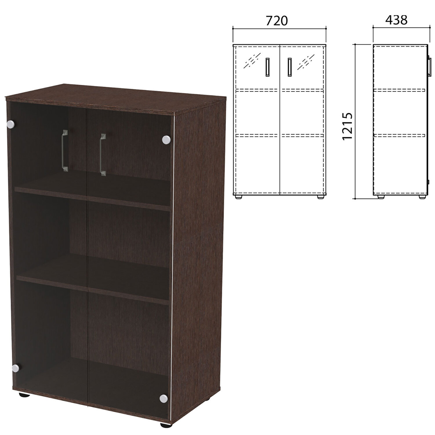 Шкаф закрытый со стеклом "Приоритет" 720х424х1215 мм, 2 полки, венге (КОМПЛЕКТ) Код товара: 982194 22 805 ₽ Купить Производитель:ПРИОРИТЕТ Шкаф предназначен для хранения документов, архивов и других предметов обихода. Оборудован регулируемыми опорами. Производство: РоссияФасады - стекло тонированное 4 мм.Каркас - ЛДСП 18 мм, кромка - ПВХ 0,4 мм.Задняя стенка - ДВП 4 мм.Регулируемые опоры.2 полки.Ручка металл.В комплект входит крепеж и инструкция по сборке.Поставляется в разобранном виде.Цвет - венге.Размер (ШхГхВ) - 720х424х1215 мм.Вес: 37,14 кгОбъём: 0.0789 м3Промежуточная упаковка: 1 штТранспортная упаковка: 1 шт Файлы Приложение-1.zip