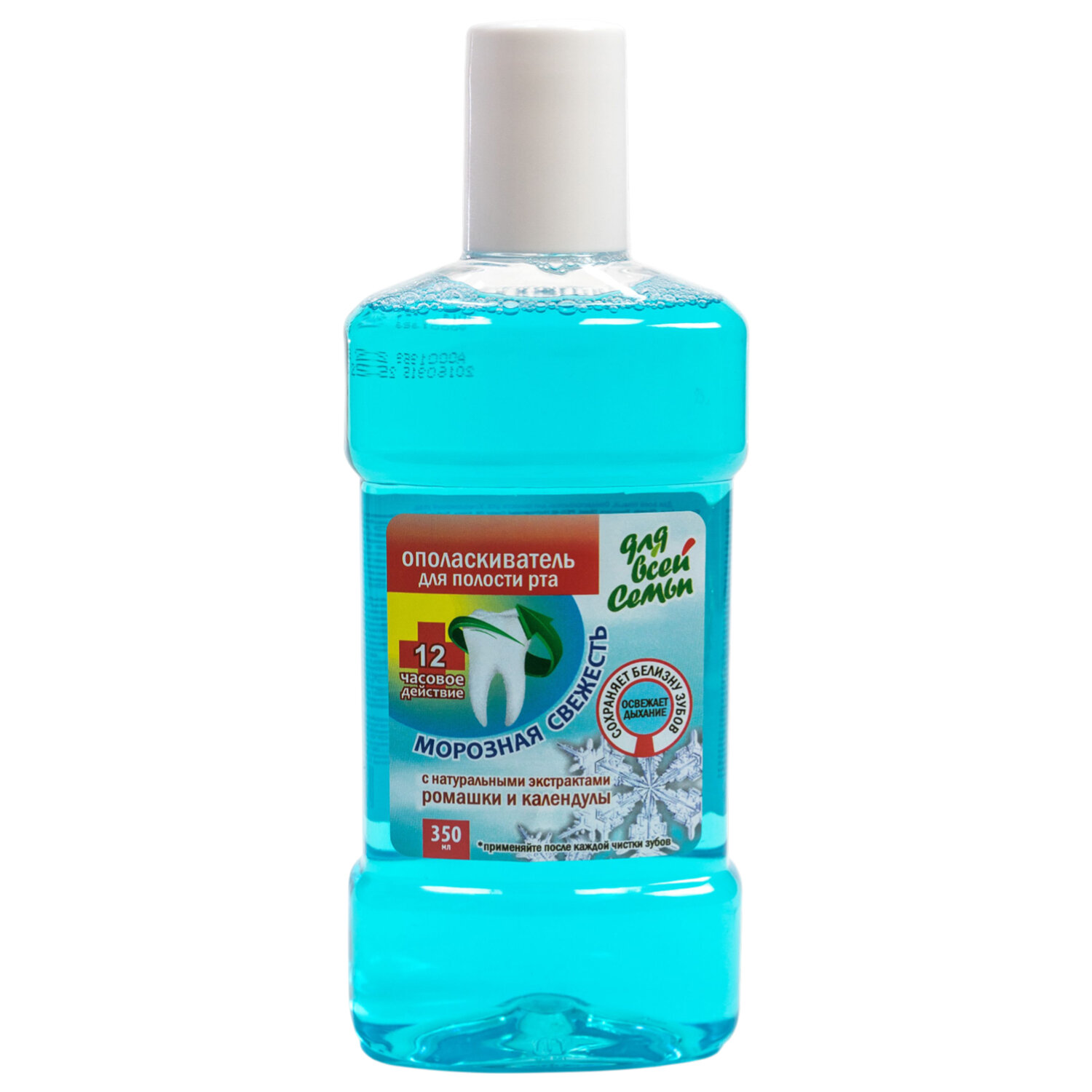 Ополаскиватель для полости рта 350 мл, ДЛЯ ВСЕЙ СЕМЬИ "Морозная свежесть", РЕНЕССАНС КОСМЕТИК Код товара: 702122 67,37 ₽ Купить Производитель:Ренессанс косметик Ополаскиватель для полости рта с экстрактом календулы и ромашки рекомендован для ежедневного профилактического ухода за деснами. Экстракт календулы оказывает противовоспалительное действие, укрепляет десны, обладает антисептическим действием. Экстракт ромашки заживляет мелкие ранки, успокаивает воспаленные десна. А "Морозная свежесть" придаст Вашему дыханию аромат как после чистки зубов. • Основные преимущества: - сохраняет белизну зубов, - освежает дыхание, - с натуральными экстрактами ромашки и календулы. Состав: Aqua, Glycerin, Propylene glycol, PEG- 40 Hydrogenated Castor Oil, Parfum, Methylparaben, Citric Acid, Sodium Lauryl Sulfate, Sodium Hydroxide, Chamomilla Recultita (Matricaria) extract, Calendula Officinalis Extract, Sodium Propylparaben, Sodium Monofluorphosphate, Mentol, Mint Oil, Sodium Saccharin, CI 42090. Способ применения: колпачок наполните ополаскивателем, тщательно прополощите полость рта в течение одной минуты. Рекомендуется использовать ополаскиватель после каждой чистки зубов. Меры предосторожности: не глотать, использовать только для полоскания, избегать контакта с глазами, хранить в недоступном для детей месте. Условия хранения: хранить при температуре от +5 до +25 °С. Не допускать воздействия прямых солнечных лучей и хранения вблизи отопительных приборов. Не замораживать!Производство: РоссияОбъём: 350 млЭффект от использования: противовосполительный, укрепление десен, уничтожает бактерииСодержит: красители, экстракт ромашкиЦвет: голубойТип товара: Ополаскиватель для ртаВкус: морозная свежестьСрок годности: 18 месВес: 379 грРазмер упаковки: 18.9 × 7.5 × 4.8 смОбъём: 0.0008 м3Промежуточная упаковка: 18 штТранспортная упаковка: 18 штШтрих-код: 4607010166465 Файлы Приложение-1.pdf Приложение-2.pdf Сертификат-1.jpg Сертификат-2.jpg Сертификат-3.jpg