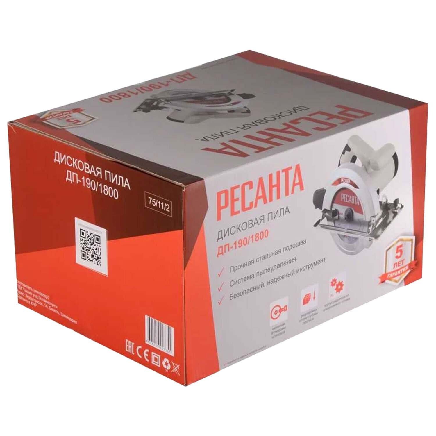 Пила циркулярная, 1800 Вт, 5500 оборотов/мин, диск 190 мм х 20 мм, РЕСАНТА ДП-190/1800 Код товара: 671618 6 703,51 ₽ Купить Производитель:РЕСАНТА Дисковая пила Ресанта ДП-190/1800 (75/11/2) — незаменимый помощник для распила древесины, фанеры, ламината и пластика. Подходит для домашних мастеров, ремонта и строительства. Мощность 1800 Вт, глубина пропила до 68 мм, эргономичная рукоятка. Дисковая пила Ресанта ДП-190/1800 (75/11/2) — сетевой электроинструмент для продольных и поперечных резов древесины, древесно-стружечных плит (кроме асбестосодержащих), а также металла, пластика, фанеры и ламината с использованием профильных дисков. Ключевые характеристики: мощность: 1800 Вт; диаметр диска: 190 мм (посадочный диаметр — 20 мм); максимальная глубина пропила: 68 мм (под углом 90°), 47 мм (под углом 45°); число оборотов: до 5500 об/мин; вес: 3,8 кг; напряжение сети: 230 В; длина кабеля: 2 м; уровень шума: 100 дБ. Особенности: прорезиненная эргономичная рукоятка; верхний кожух с отводом стружки; плавающий нижний кожух с возвратной пружиной; опорная плита с регулировкой угла наклона; регулятор глубины пропила; возможность работы с направляющей шиной; щёточный тип двигателя. Преимущества: высокая мощность для уверенной работы с разными материалами; лёгкая и удобная конструкция; точная регулировка угла и глубины пропила; компактный размер и небольшой вес для комфортной транспортировки. Вся информация на сайте о товарах носит справочный характер и не является публичной офертой в соответствии с пунктом 2 статьи 437 ГК РФ. Производитель оставляет за собой право изменять характеристики товара, его внешний вид и комплектность без предварительного уведомления продавца.Производство: КитайТип товара: циркулярнаяМощность: 1800 ВтСкорость холостого хода: 5500 об/минДиаметр диска: 190 ммМакс. глубина пропила под 90°: 68 ммМакс. глубина пропила под 45°: 47 ммДиаметр посадочного отверстия: 20 ммТип упаковки: коробкаДлина: 502 ммШирина: 315 ммВысота: 510 ммВес нетто: 3.8 кгСерия: ДПВес: 4,49 кгРазмер упаковки: 19 × 24.5 × 33 смОбъём: 0.0175 м3Промежуточная упаковка: 4 штТранспортная упаковка: 4 штШтрих-код: 4606059027355 Файлы