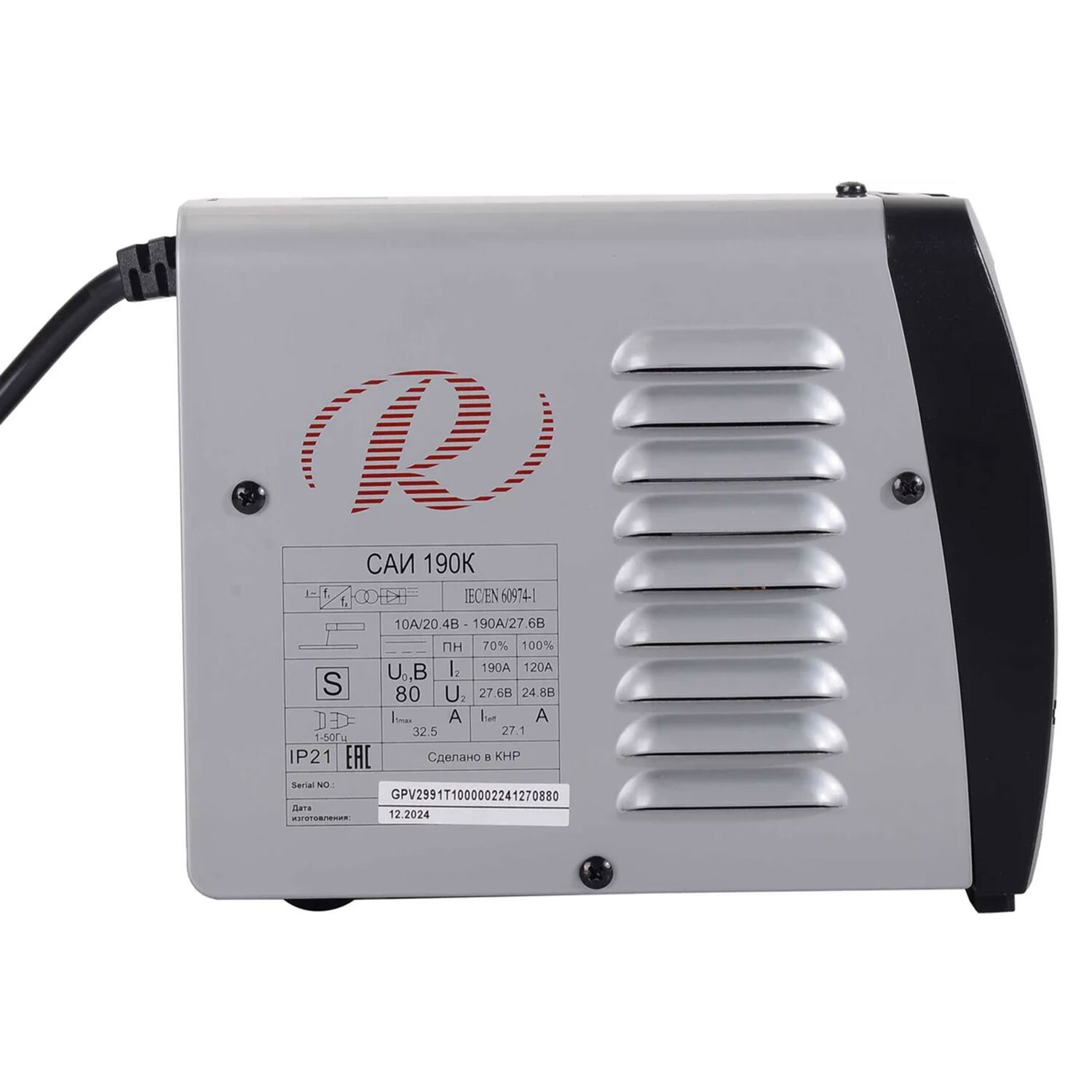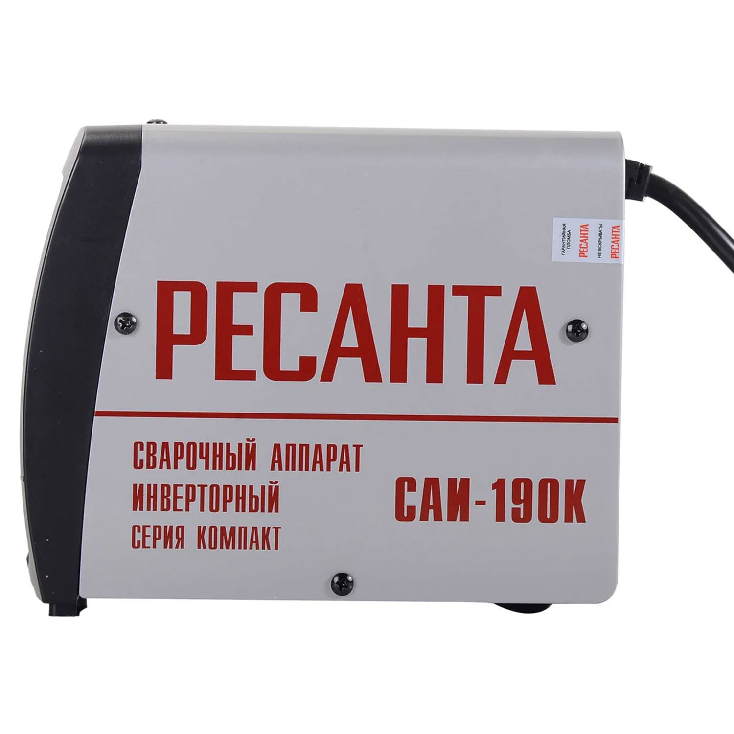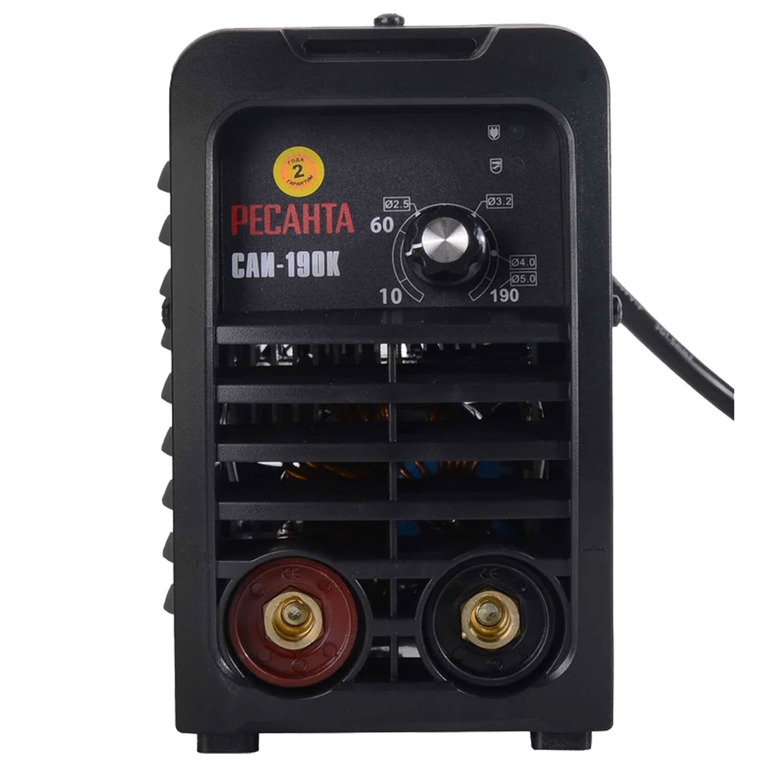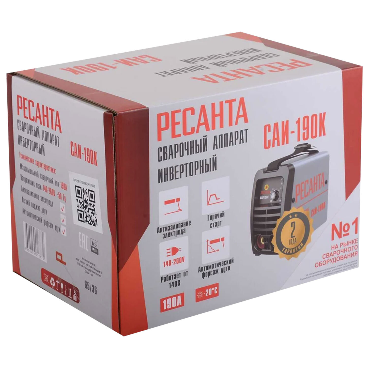 Сварочный аппарат инверторный, свар. ток до 190А, d элект. до 5мм, РЕСАНТА САИ190К (компакт) Код товара: 671635 6 179,24 ₽ Купить Производитель:РЕСАНТА Инверторный сварочный аппарат Ресанта САИ190К (компакт, 65/36) — для ручной электродуговой сварки (MMA). Ток до 190 А, электроды до 5 мм. Компактный и лёгкий (3,55 кг), работает при нестабильном напряжении (140–240 В). Функции Hot Start, Anti Stick. Сварочный инверторный аппарат Ресанта САИ190К (65/36) предназначен для ручной дуговой сварки (MMA) стальных конструкций в бытовых и профессиональных условиях: ремонт, строительство, автосервис, ЖКХ. Подходит для работы в сетях с нестабильным напряжением. Ключевые характеристики: тип сварки: MMA (ручная электродуговая); диапазон сварочного тока: 10–190 А; максимальный диаметр электрода: 5 мм; рабочее напряжение: 140–240 В; максимальная мощность: 5,2 кВт; напряжение холостого хода: 80 В; напряжение дуги: 26 В; продолжительность нагрузки (ПН) при максимальном токе: 70%; класс защиты: IP21; рабочий диапазон температур: от –10 °C до +40 °C; вес: 3,55 кг; габариты: 31 х 13,5 х 25 см. Комплектация: сварочный аппарат; кабель с держателем для электрода; кабель с заземляющей клеммой; паспорт и инструкция. Преимущества: работа при нестабильном напряжении сети (140–240 В) — подходит для загородных участков и старых сетей; функции Hot Start (лёгкий розжиг дуги), Anti Stick (защита от залипания электрода), Arc Force (стабилизация дуги) — высокое качество шва и удобство работы; компактный размер и малый вес (3,55 кг) — удобство транспортировки и работы на высоте; защита от перегрева с индикатором — безопасность и долгий срок службы; туннельная система вентиляции — эффективное охлаждение компонентов; цифровой дисплей — контроль параметров сварки; плечевой ремень и ручка для переноски — комфорт при перемещении. Вся информация на сайте о товарах носит справочный характер и не является публичной офертой в соответствии с пунктом 2 статьи 437 ГК РФ. Производитель оставляет за собой право изменять характеристики товара, его внешний вид и комплектность без предварительного уведомления продавца.Производство: КитайДиапазон рабочего напряжения: 10-190Мощность потребления: 6500 втКласс защиты: IP21Максимальный диаметр электрода: 5 ммМаксимальный потребляемый ток: 190 АНапряжение холостого хода: 80 ВНапряжение дуги: 140 ВТип сварки: MMAТип выходного тока: постоянныйМинимальный ток: 10 АМаксимальный ток: 190 АПродолжительность нагружения (70%): 70 АПитание от сети: 220 ВВес нетто: 3.55Вес: 3,72 кгРазмер упаковки: 14.3 × 24.1 × 31 смОбъём: 0.01 м3Промежуточная упаковка: 4 штТранспортная упаковка: 4 штШтрих-код: 4606059018872 Файлы