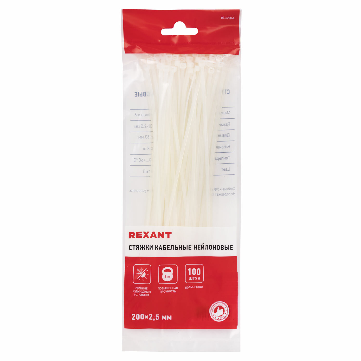 Хомуты (стяжки) нейлоновые, 2,5 мм х 200 мм, комплект 100 шт., REXANT, белые, европодвес Код товара: 603954 156,97 ₽ Купить Производитель:REXANT Стяжки применяются для механического объединения проводов и кабелей в общий жгут и крепления к неподвижным конструкциям. Это наиболее удобный и дешевый способ крепления и бандажирования кабелей. Могут использоваться как стяжки пакетов при упаковке. Производство: КитайМатериал: нейлонРазмер (ШхД): 2,5х200 ммMin диаметр: 4 ммMax диаметр: 5.5 ммНабор хомутов: даКоличество в упаковке: 100 шт.Цвет: белыйУпаковка: пакет с европодвесомВес: 0.06 кгРазмер упаковки: 1.4 × 23.5 × 9.5 смОбъём: 0.0002 м3Промежуточная упаковка: 10 штТранспортная упаковка: 200 штШтрих-код: 4610003604219 Файлы Сертификат-1.jpg Сертификат-2.jpg Сертификат-3.jpg Сертификат-4.jpg Сертификат-5.jpg Сертификат-6.jpg Сертификат-7.jpg Сертификат-8.jpg Сертификат-9.jpg Сертификат-10.jpg Сертификат-11.jpg Сертификат-12.jpg Сертификат-13.jpg Сертификат-14.jpg Сертификат-15.jpg Сертификат-16.jpg Сертификат-17.jpg Сертификат-18.jpg Сертификат-19.jpg Сертификат-20.jpg Сертификат-21.jpg Сертификат-22.jpg Сертификат-23.jpg Сертификат-24.jpg Сертификат-25.jpg Сертификат-26.jpg