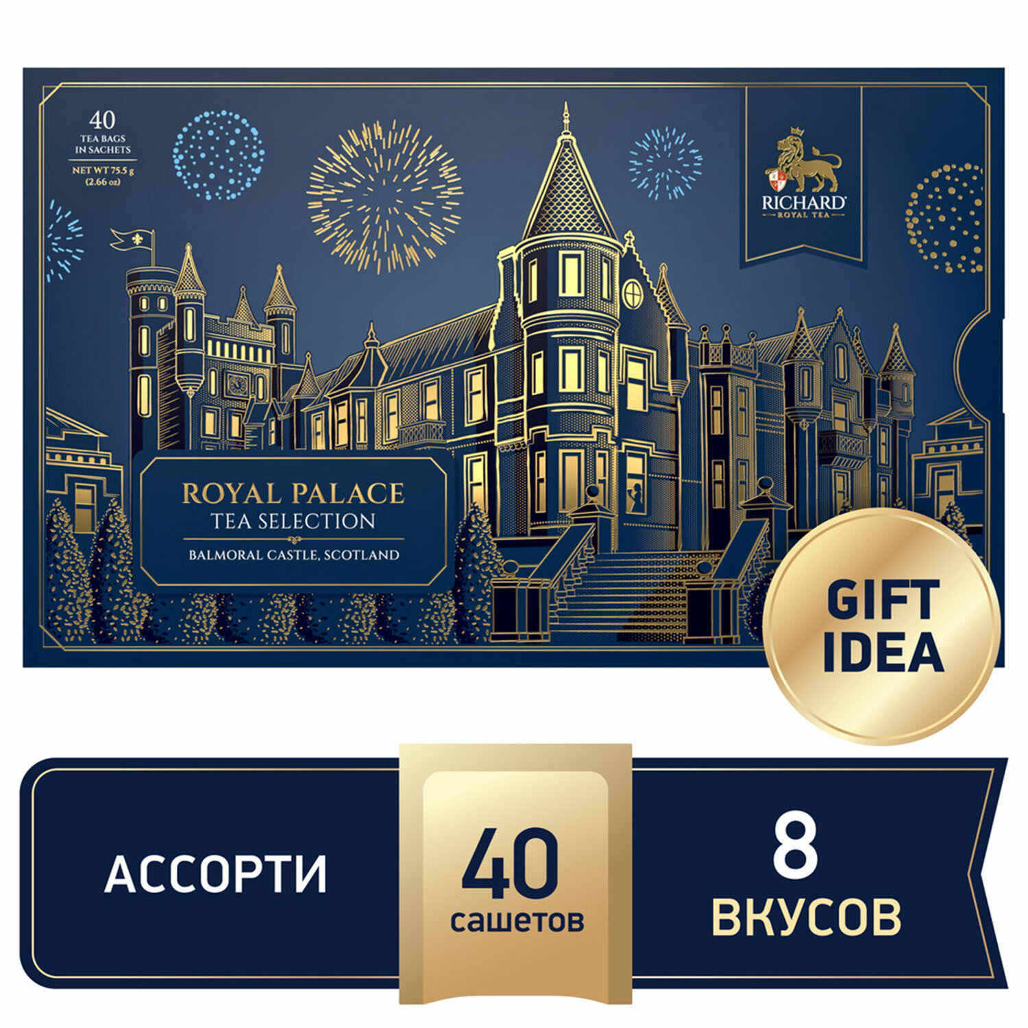 Чай RICHARD "Royal Palace Tea Selection", ассорти 8 вкусов, НАБОР 40 сашетов Код товара: 623367 315,29 ₽ Купить Производитель:RICHARD Ассорти премиальных чаёв. Королевская коллекция чая RICHARD - это черные, зеленые и травяные чаи высшего качества, с лучших плантаций мира. Все купажи RICHARD созданы в традиционном английском стиле, каждый обладает своим особенным характером.Производство: РоссияТип упаковки: картонная коробкаВид чая: ассортиИдеи для подарка: для всехТип чая: пакетированныйСерия: Royal Palace Tea SelectionМасса нетто: 80 гКоличество пакетиков: 40 шт.Срок годности: 24 мес.Фирма-производитель: Май-Фудс ОООСрок годности: 24 месВес: 252 грРазмер упаковки: 3.8 × 31.1 × 19.4 смОбъём: 0.0025 м3Промежуточная упаковка: 10 штТранспортная упаковка: 10 штШтрих-код: 4660115907463 Файлы Сертификат-1.jpg Сертификат-2.jpg Сертификат-3.jpg Сертификат-4.jpg Сертификат-5.jpg Сертификат-6.jpg Сертификат-7.jpg Сертификат-8.jpg Сертификат-9.jpg Сертификат-10.jpg