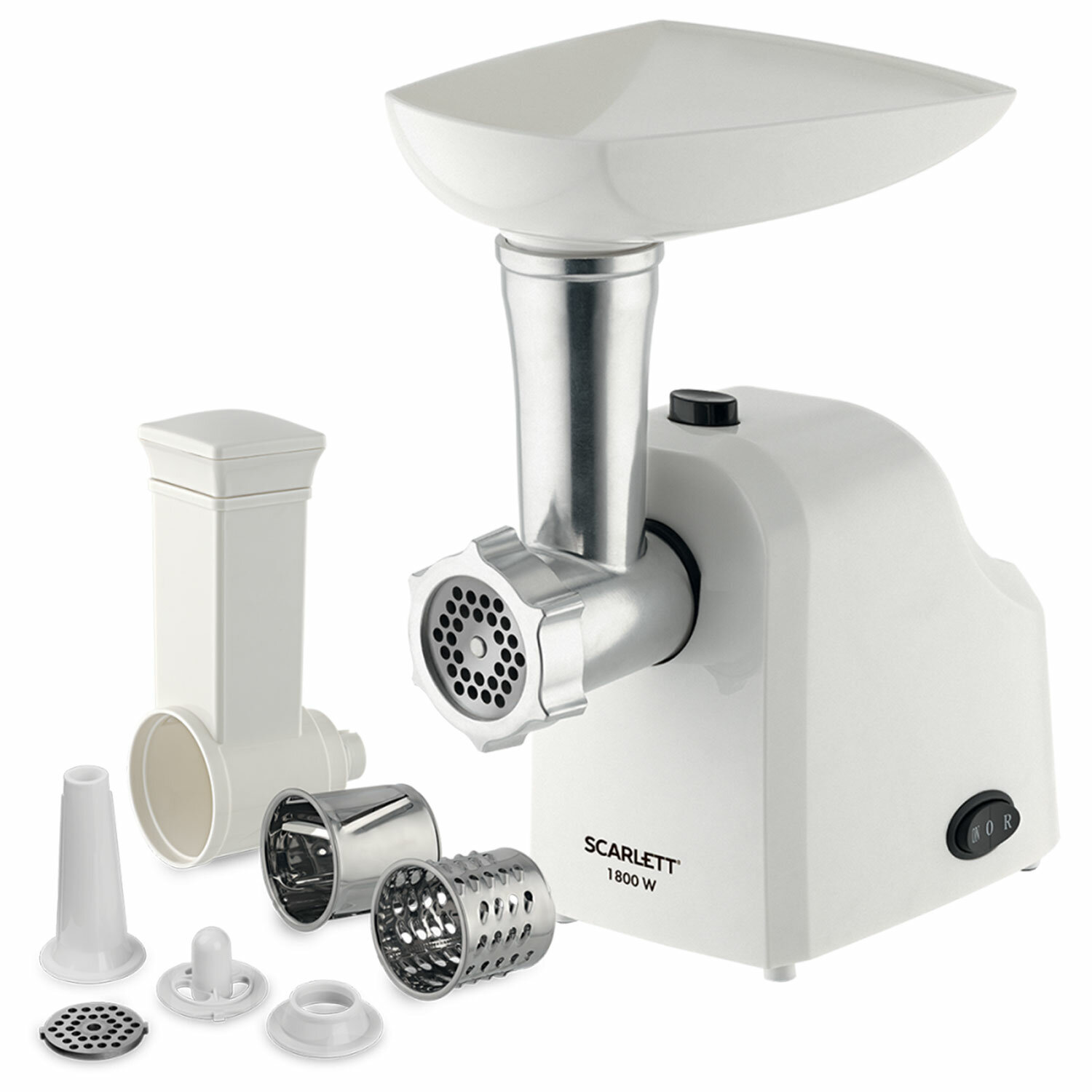 Мясорубка SCARLETT SC-MG45M20, 1800 Вт, производительность 2 кг/мин, 4 насадки, реверс, пластик, белая Код товара: 455882 4 875,88 ₽ Купить Производитель:SCARLETT Миксер SCARLETT SC-HM40S15 – это мощный и многофункциональный кухонный помощник, который станет незаменимым в приготовлении разнообразных блюд. С максимальной мощностью 1800 Вт (при блокировке вала) и производительностью 2 кг/мин он легко справляется с измельчением, шинковкой и даже приготовлением колбас и кеббе. Электро-механическое управление и система реверса делают процесс простым и интуитивно понятным, а четыре насадки из нержавеющей стали (тёрка, для шинковки, для колбас и кеббе) обеспечивают универсальность. Защита двигателя от перегрузки и прорезиненные ножки гарантируют безопасность и устойчивость во время работы. Компактные размеры (200x125x195 мм) и отсек для хранения насадок делают его удобным для хранения даже в небольшой кухне. Легкий вес (2 кг) и стильный белый корпус из пластика добавляют устройству эстетики и практичности. Производитель на свое усмотрение и без дополнительных уведомлений может менять комплектацию, внешний вид, страну производства и технические характеристики модели.Производство: КитайМаксимальная мощность (при блокировке вала): 1800 ВтПроизводительность: 2 кг/минМощность: 300 ВтМаксимальное время непрерывной работы: 7 минЗащита двигателя от перегрузки: даСистема реверса: даТип управления: электро-механическийКоличество насадок: 4 шт.Отсек для насадок: даМатериал ножей: нержавеющая стальПрорезиненные ножки: даНасадки в комплекте: для кеббе, для приготовления колбас, для шинковки, насадка-тёркаСерия: SC-MG45M2Материал корпуса: пластикЦвет: белыйВысота: 200 ммШирина: 125 ммГлубина: 195 ммВес: 2 кгРазмер упаковки: 21.9 × 35.2 × 23.3 смОбъём: 0.0201 м3Промежуточная упаковка: 6 штТранспортная упаковка: 6 штШтрих-код: 5050370322559 Файлы Приложение-1.pdf Сертификат-1.jpg Сертификат-2.jpg Сертификат-3.jpg Сертификат-4.jpg Сертификат-5.jpg Сертификат-6.jpg
