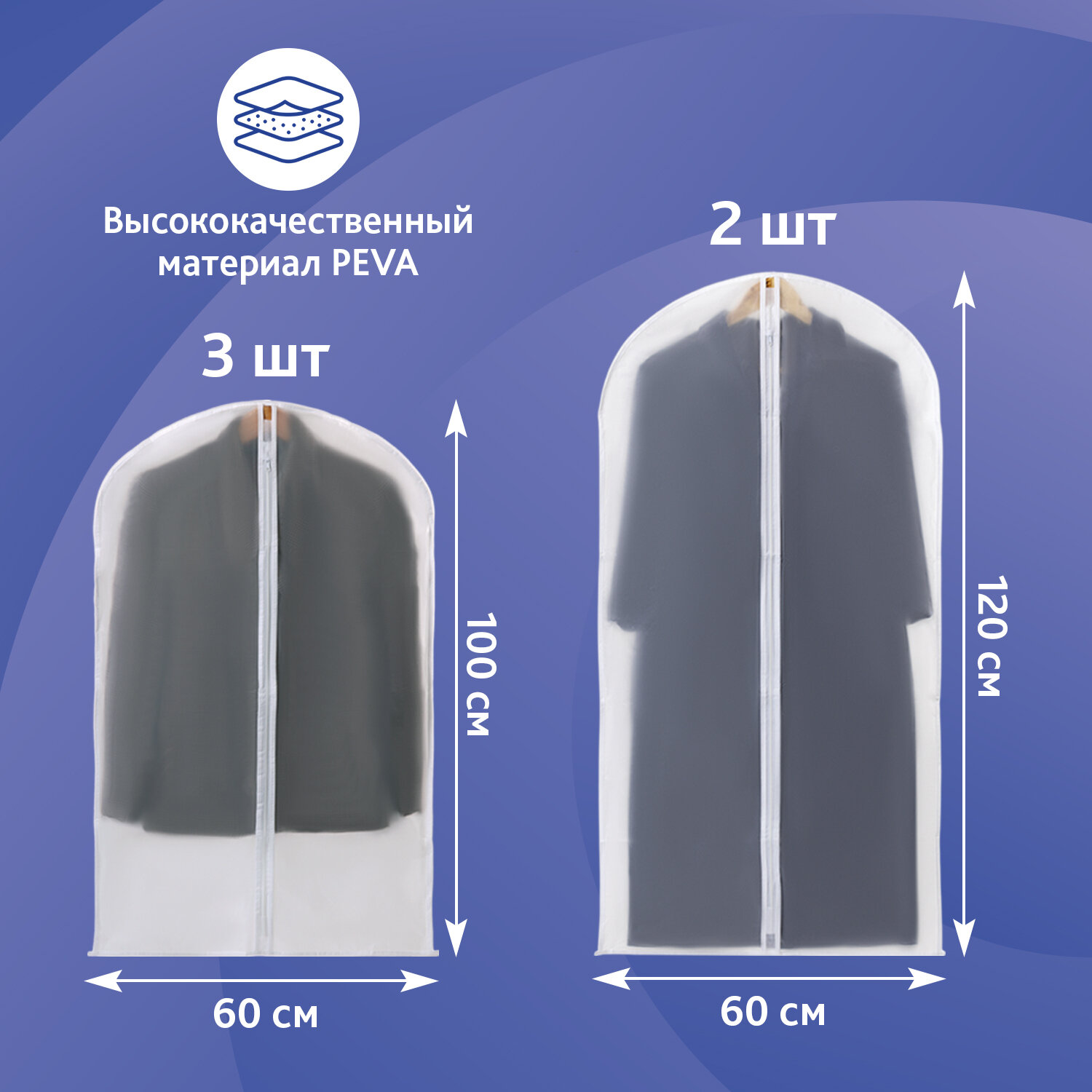 Чехлы для хранения одежды на молнии, КОМПЛЕКТ 4 шт. + 1 в подарок, SHAMAANI (ШАМААНИ) Код товара: 609597 446,66 ₽ Купить Производитель:SHAMAANI Чехлы для одежды SHAMAANI – это надежная защита для одежды от пыли, влаги и насекомых. Чехлы обеспечивают сохранность вещей при хранении и транспортировке. Комплект из чехлов для одежды SHAMAANI позволяет сохранить вещи в чистоте. Чехлы предназначены для защиты вещей от пыли, воды, солнечных лучей, загрязнений различного рода и насекомых. Чехлы также будут незаменимы при транспортировке вещей во время переездов, путешествий и других длительных поездок. В состав комплекта входят: 3 чехла 60х100 см, 2 чехла 60х120 см. Чехлы для одежды выполнены из высокопрочного полупрозрачного гипоаллергенного материала – полиэтиленвинилацетата (PEVA). Такой материал надежно защищает одежду и дает возможность легко найти нужные вещи. Полупрозрачный белый цвет идеально подойдет для любого гардероба и сделает его более эстетичным. Одежду следует надеть на вешалку-плечики и поместить внутрь чехла, продев крючок в отверстие сверху чехла. Далее с помощью застежки-молнии необходимо закрыть чехол. В комплекте представлены чехлы одинаковой ширины (60 см), но разной длины (100 и 120 см). Такой размер чехлов позволяет использовать его для любого типа одежды.Производство: КитайТип : -Размер: 60х100 см, 60х120 см смКоличество в комплекте: 5 шт.Материал: полиэтиленвинилацетатТолщина: 42 мкрСерия: COVERSЗастежка: молнияЦвет: прозрачно-белыйВес: 370 грРазмер упаковки: 3.1 × 32.2 × 25.8 смОбъём: 0.002 м3Промежуточная упаковка: 50 штТранспортная упаковка: 50 штШтрих-код: 4606224448411 Файлы Сертификат-1.jpg Сертификат-2.jpg Сертификат-3.jpg Сертификат-4.jpg Сертификат-5.jpg