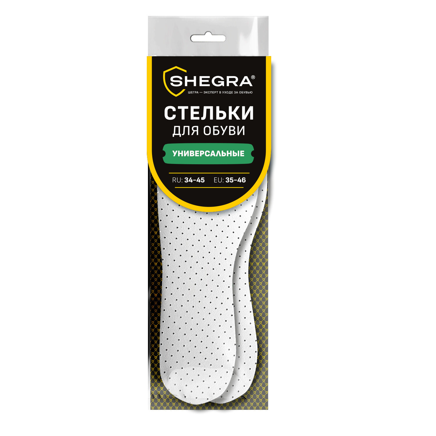 Стельки для обуви УНИВЕРСАЛЬНЫЕ, УНИВЕРСАЛЬНЫЙ размер RU 34-45 / EU 35-46, с линиями выреза, SHEGRA (ШЕГРА) Код товара: 700736 108,57 ₽ Купить Производитель:SHEGRA Стельки для обуви SHEGRA УНИВЕРСАЛЬНЫЕ отлично подойдут для любой обуви, обеспечат комфорт при ходьбе и оптимальный микроклимат. Стельки для обуви с российским размером RU 34-45, что соответствует европейскому размеру EU 35-46. На стельках указаны оба стандарта размера: RU и EU, а также нанесены линии выреза. Для удобства на упаковке приведена таблица соответствия размеров RU/EU. Латексная пена снижает и поглощает ударные нагрузки при ходьбе, а хлопчатобумажное покрытие впитывает влагу и сохраняет ноги сухими. Перфорация способствует циркуляции воздуха и нормализации микроклимата у вас в обуви. Обрежьте стельку по нанесенному размеру вашей стопы или по размерам стельки, имеющейся у вас в обуви. Вложите стельку тканевой стороной вверх. В целях гигиены рекомендуется менять стельки раз в два месяцаПроизводство: КитайТип товара: стельки для обувиРазмер RU (российский): 34-45Размер EU (европейский): 35-46Стандарт размерной сетки на стельках: RU/EU (российский и европейский)Разметка для выреза на стельках: даТаблица соответствия размеров RU/EU на упаковке: даСерия: Basic lineОсобенность: универсальныеМатериал: хлопчатобумажная ткань, латекс (синий)Перфорация для вентиляции: даВлаговпитывающее покрытие: даУпаковка: пакет с европодвесомВес: 50 грРазмер упаковки: 0.7 × 30.4 × 11.6 смОбъём: 0.0003 м3Промежуточная упаковка: 12 штТранспортная упаковка: 120 штШтрих-код: 4606224497860 Файлы Сертификат-1.jpg Сертификат-2.jpg Сертификат-3.jpg Сертификат-4.jpg Сертификат-5.jpg Сертификат-6.jpg Сертификат-7.jpg Сертификат-8.jpg Сертификат-9.jpg Сертификат-10.jpg Сертификат-11.jpg Сертификат-12.jpg Сертификат-13.jpg Сертификат-14.jpg Сертификат-15.jpg Сертификат-16.jpg Сертификат-17.jpg Сертификат-18.jpg Сертификат-19.jpg Сертификат-20.jpg Сертификат-21.jpg Сертификат-22.jpg Сертификат-23.jpg Сертификат-24.jpg Сертификат-25.jpg Сертификат-26.jpg