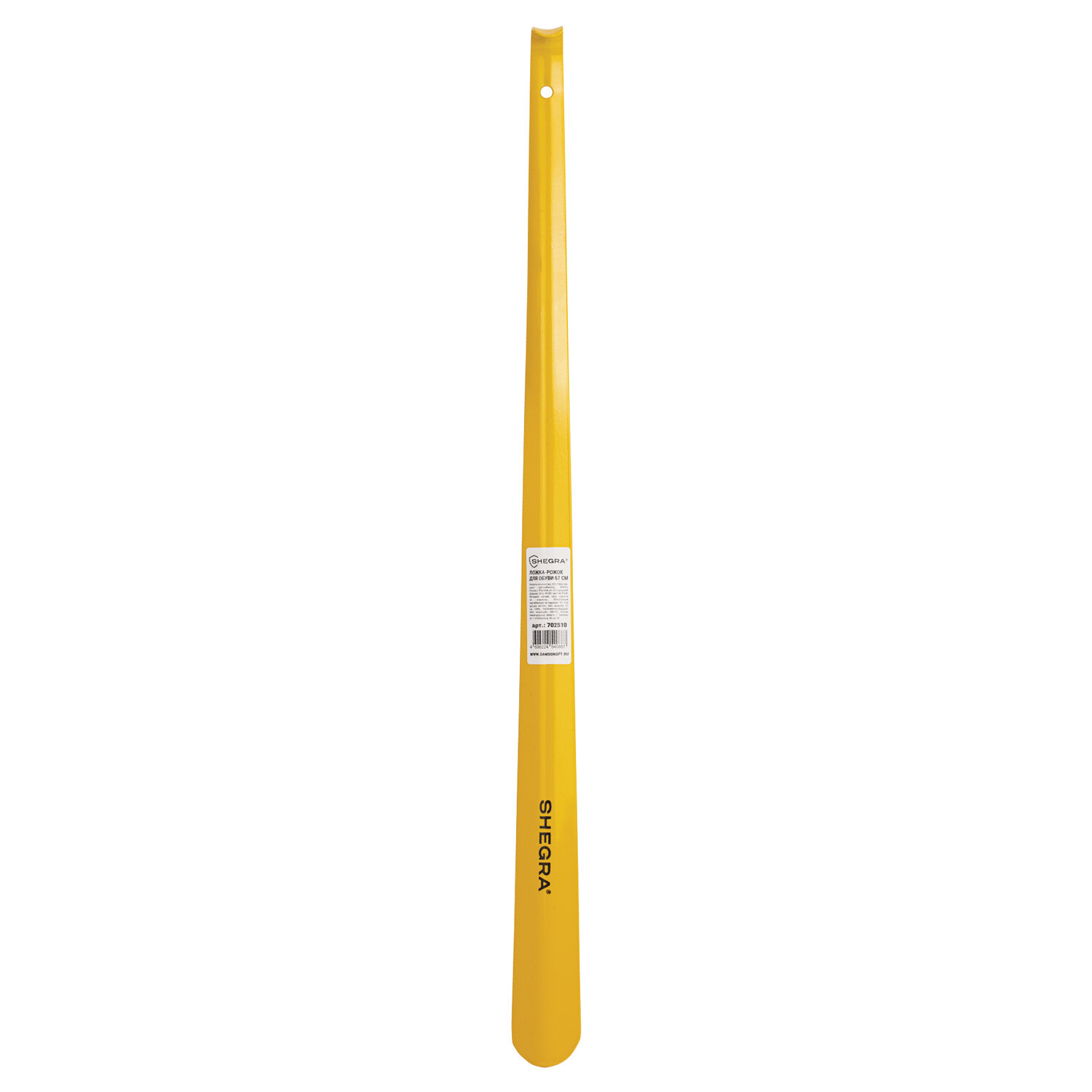 Ложка (рожок) для обуви с крючком МЕТАЛЛИЧЕСКАЯ 67 см, ЖЕЛТЫЙ, SHEGRA (ШЕГРА) PREMIUM, 702510 Код товара: 702510 298 ₽ Купить Производитель:SHEGRA Обувная ложка SHEGRA отлично подойдет для любой обуви, обеспечит легкое скольжение и максимальное удобство. Обувная ложка обладает идеальной длиной 67 см, благодаря чему не придется сильно наклоняться, чтобы надеть обувь. Толщина металла 1,5 мм гарантирует прочность и предотвращает деформацию – универсальное решение для всей семьи. Ложка подходит для ежедневного использования и предотвращает деформацию задников обуви. Функциональная зона захвата имеет крючок и отверстие, что позволяет удобно хранить изделие в гардеробе. Ложка выполнена в желтом цвете.Производство: РоссияТип товара: ложка для обувиТип крепления: крючокМатериал: металлКоличество в комплекте: 1 шт.Цвет: желтыйДлина: 67 смШирина: 4.2 смТолщина: 1.5 ммДиаметр отверстия: 8 ммСерия: PREMIUMВес: 295 грРазмер упаковки: 4.1 × 66.7 × 4.9 смОбъём: 0.0002 м3Промежуточная упаковка: 6 штТранспортная упаковка: 36 штШтрих-код: 4606224540887 Файлы Сертификат-1.jpg Сертификат-2.jpg