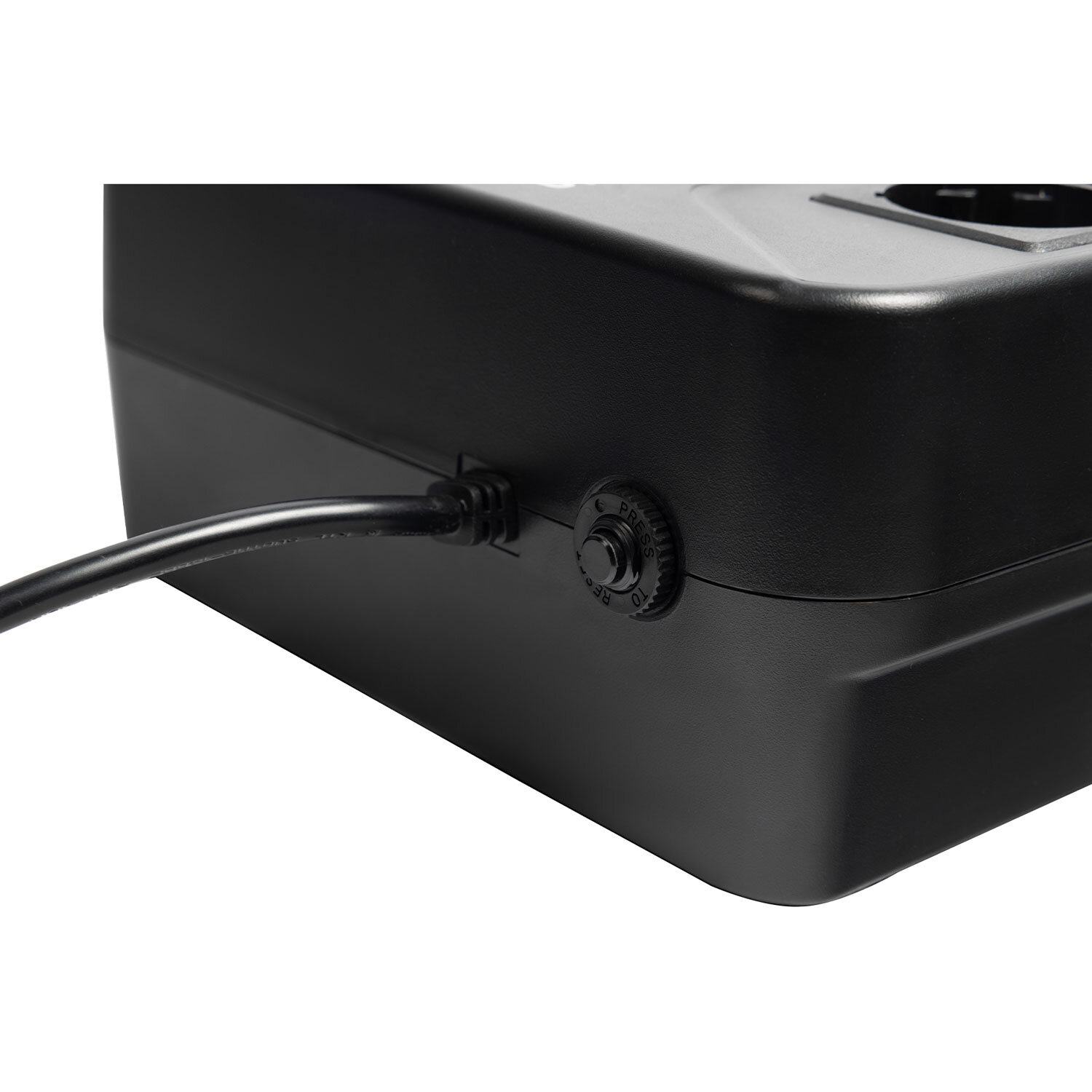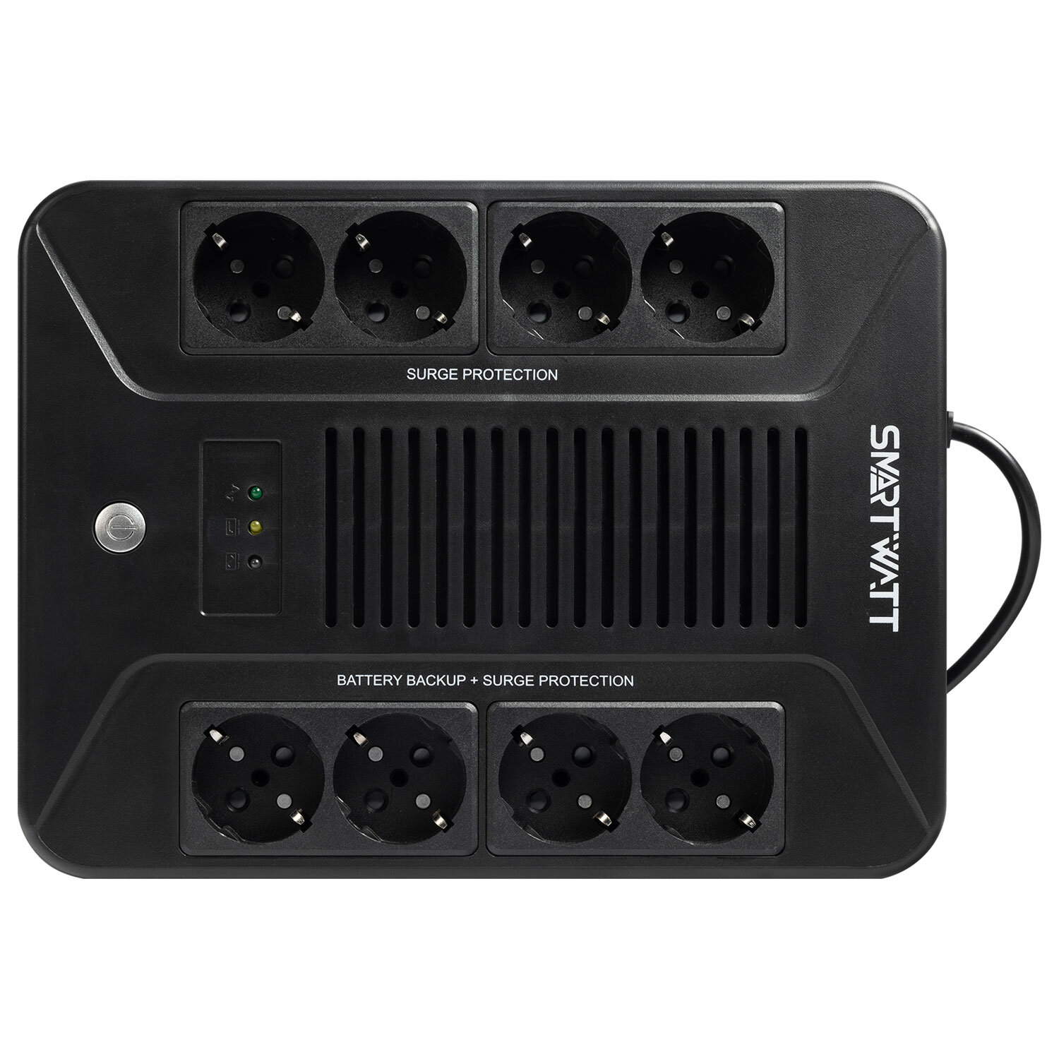 Источник бесперебойного питания SMARTWATT UPS SAFE PRO 1050, 1050 ВА (630 Вт), 8 розеток Код товара: 355139 6 464,66 ₽ Купить Производитель:SMARTWATT Линейно-интерактивные ИБП SMARTWATT UPS SAFE PRO для офисного и мультимедийного оборудования позволяет резервировать до 8 устройств одновременно. Встроенный стабилизатор защищает от перепадов напряжения в электросети. Компактные размеры, LED-индикация и возможность размещения на стене делают источники бесперебойного питания SMARTWATT UPS SAFE PRO одним из самых удобных решений для офисного пространства. Каждая модель этой серии оснащена 8 евророзетками и USB-портом для подключения к ПК. Преимущества: - Аппроксимированный синус, - 4 розетки Schuko для резервирования, - 4 розетки Schuko для стабилизации, - Возможность настенной установки, - Широкий модельный ряд, - Запуск при восстановлении питания, - Автоопределение частоты, - Заряд АКБ в выключенном состоянии, - LED-индикация. Вся информация на сайте о товарах носит справочный характер и не является публичной офертой в соответствии с пунктом 2 статьи 437 ГК РФ. Производитель оставляет за собой право изменять характеристики товара, его внешний вид и комплектность без предварительного уведомления продавца.Производство: КитайТип выходных разъемов питания: евророзетка (CEE 7/4)Максимальная выходная мощность: 1050 ВАМаксимальная выходная мощность: 630 ВтВходное напряжение: 140-300 ВВремя работы от батарей при полной нагрузке: 0 минКоличество розеток для защиты от всплесков напряжения: 4 шт.Количество розеток для батарейного резервного питания: 4 шт.Макс. время переключения на батареи: 6 мсФункции: защита от перегрузки, защита сети интернет (RJ-45), защита телефонной линии (RJ-11)Индикатор состояния входного напряжения: даСреднее время зарядки при полном разряде батареи: 0 чЦвет корпуса: черныйВысота: 117 ммШирина: 195 ммГлубина: 285 ммВес: 5 кгСерия: UPS SAFE PROРазмер упаковки: 11.7 × 19.5 × 28.5 смОбъём: 0.0065 м3Промежуточная упаковка: 1 штТранспортная упаковка: 1 штШтрих-код: 4620356950819 Файлы Приложение-1.pdf