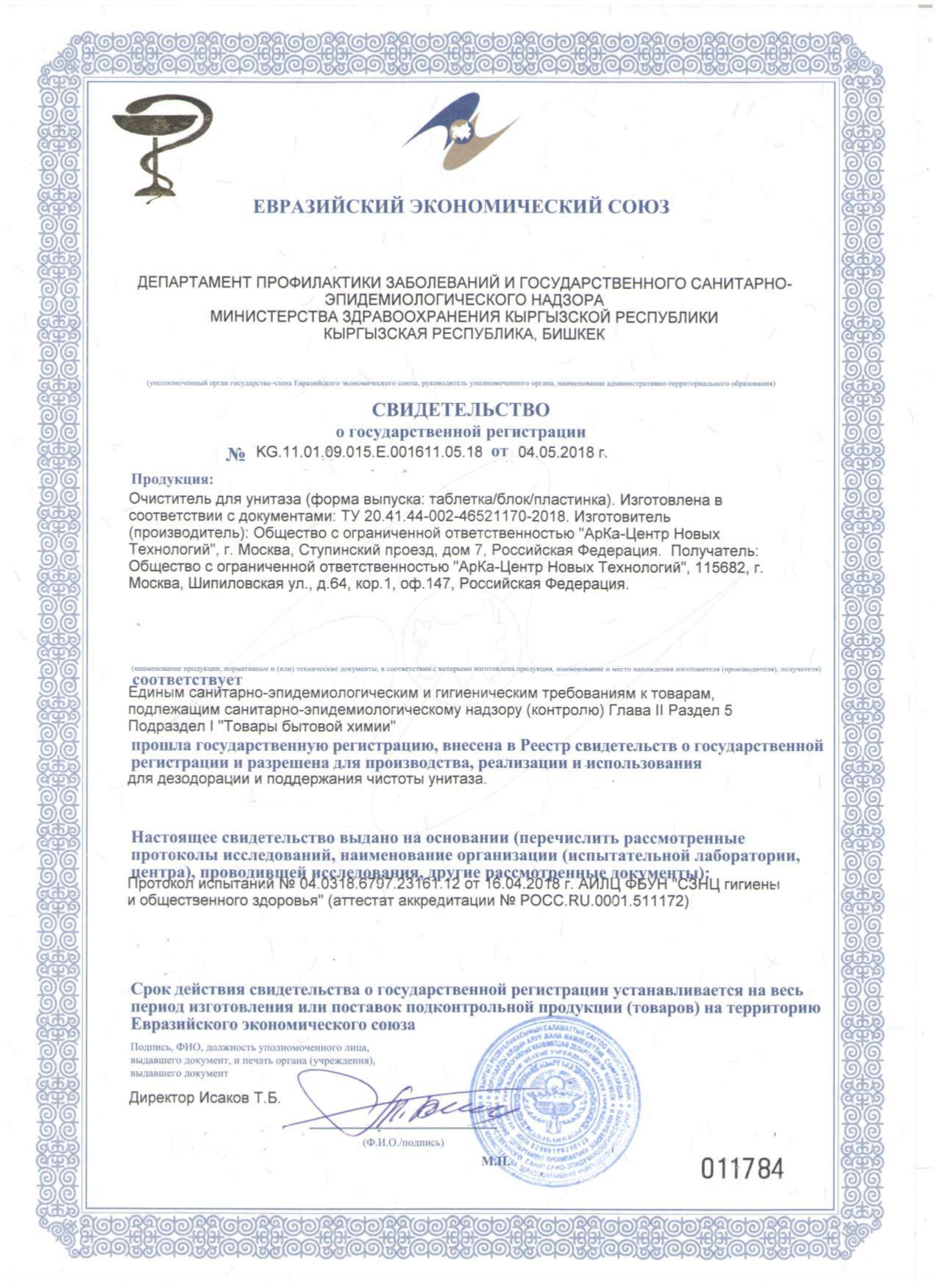 Таблетки для писсуаров 1 кг, SNOWTER (Сноутер), дезодорирующие, ведерко Код товара: 605236 591,28 ₽ Купить Производитель:SNOWTER Применяются для туалетов в местах общественного пользования. Cоздают активную пену, дезинфицируют сантехнику, устраняют неприятный запах, удаляют каменистый налет и препятствуют его появлению. Не содержат формальдегидов. Диаметр таблетки - 3,5 см, высота - 1,5 см. В ведре содержится от 35 до 40 штук таблеток. Меры предосторожности: Хранить в недоступном для детей месте. Избегать контакта с глазами. В случае попадания в глаза, незамедлительно промыть их большим количеством воды и обратиться к врачу. В случае проглатывания также незамедлительно обратиться к врачу, показав упаковку или этикетку товара. Условия хранения: хранить в сухом прохладном месте. Состав: ПАВ, триполифосфат натрия, ароматизатор.Производство: РоссияНазначение: таблетки для писсуаровСерия: нетЭффект от использования: удаление запаха, удаление известкового налетаПрофессиональное средство: даПодходит для поверхностей: фаянсОбъем/вес: 1000 мл/гФорма выпуска: таблеткиДозатор: нетУпаковка: ведроСрок годности: 36 месВес: 1,12 кгРазмер упаковки: 12.2 × 13.3 × 13.3 смОбъём: 0.0032 м3Промежуточная упаковка: 5 штТранспортная упаковка: 5 штШтрих-код: 4602083001422 Файлы Приложение-1.pdf Сертификат-1.jpg Сертификат-2.jpg Сертификат-3.jpg