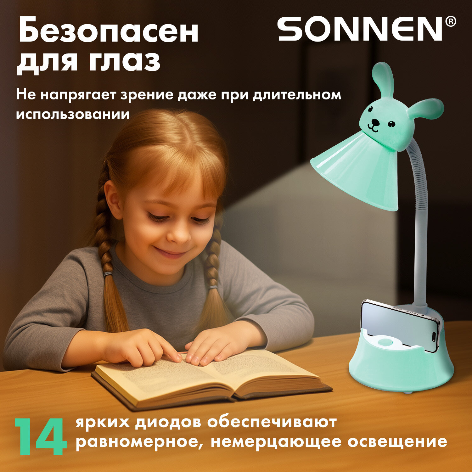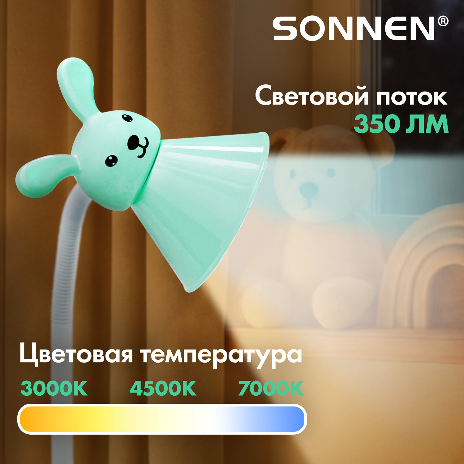Настольная лампа / светильник SONNEN OU-611 на подставке, СВЕТОДИОДНАЯ, "SWEET BUNNY", 5 Вт, зеленый Код товара: 237642 743,93 ₽ Купить Производитель:SONNEN Настольный детский светильник SONNEN OU-611 – яркое решение для местного освещения в детской комнате, на письменном столе школьника. Легкость в управлении и гибкая стойка делают эксплуатацию светильника максимально комфортной. SONNEN OU-611 – это функциональный светильник, который поможет создать комфортную и уютную атмосферу в детской комнате. Устройство оснащено легким пластиковым корпусом и яркой LED-матрицей на 5 Вт. Вы будете довольны освещением с цветовой температурой от 3000 до 7000 K и световым потоком 350 Лм, которое обеспечивают 14 светодиодов. Кнопка включения расположена на подставке светильника. Благодаря 3 температурным режимам можно создать комфортное освещение для разных ситуаций, например, для чтения перед сном или для работы за письменным столом. Производитель сохраняет за собой право на внесение изменений в технические характеристики, комплектацию и конструкцию данной модели для улучшения эксплуатационных свойств без предварительного уведомления.Производство: КитайТип лампы: светодиоднаяТип крепления: подставкаМощность: 5 ВтЦоколь: LEDНазначение: детскийСерия: OU-611Цветность света: нейтральный белый - 3500-4500 К, теплый белый - 2700-3400 К, холодный белый - от 6100 и болееСветовой поток: 350 ЛюменКол-во режимов свечения: 1Источник света: 14 LEDИсточник питания: сетьРасположение кнопки выключателя: на корпусеПроизвольная регулировка направления подсветки: даОтсутствие мерцания и шумов: даВысота: 43 смДлина шнура: 1 мМатериал корпуса: пластикЦвет корпуса: зеленыйВес: 668 грРазмер упаковки: 13.6 × 26.4 × 21.3 смОбъём: 0.0089 м3Промежуточная упаковка: 20 штТранспортная упаковка: 20 штШтрих-код: 4606224399584 Приложение-1.pdf Сертификат-1.jpg Сертификат-2.jpg