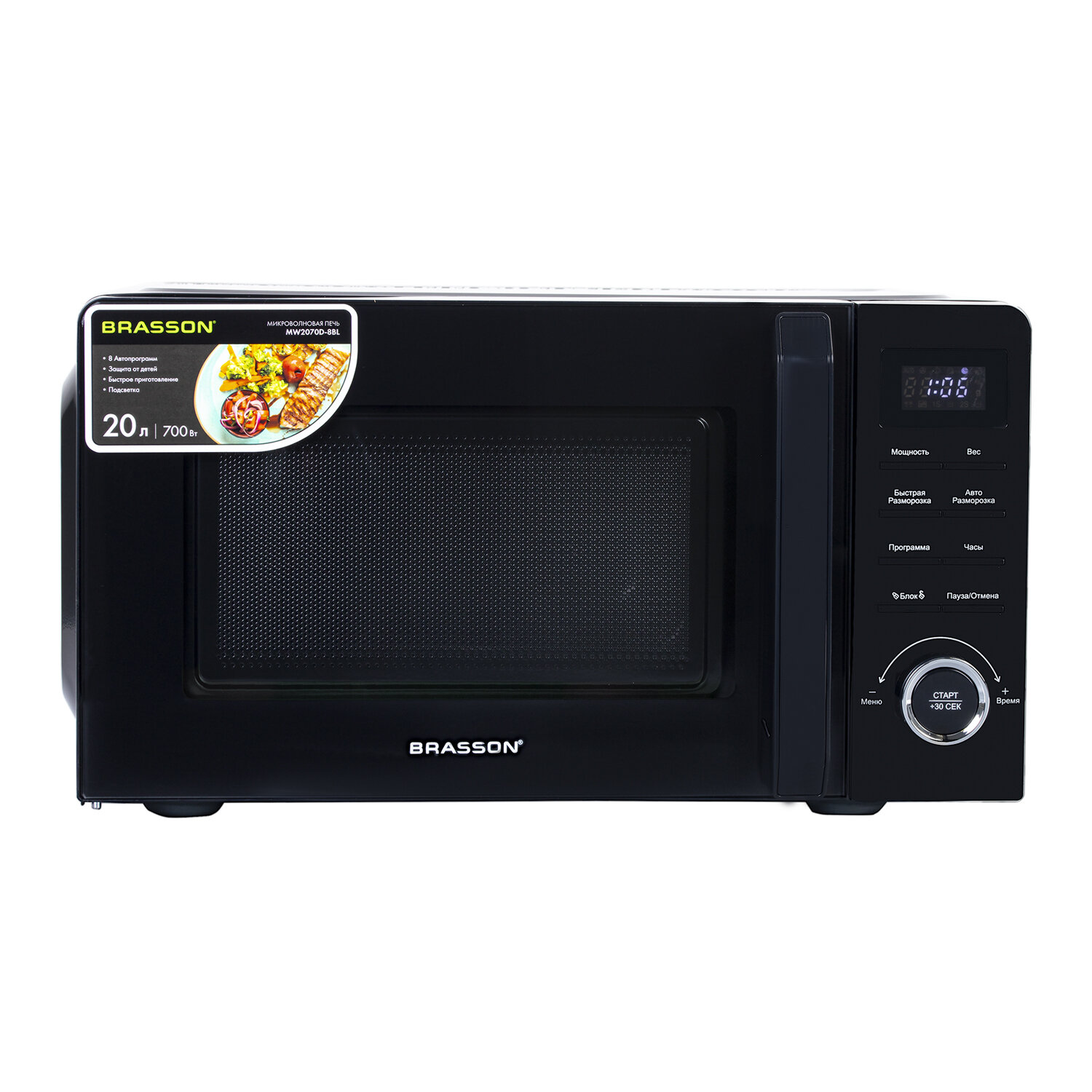 Микроволновая печь BRASSON (БРАССОН) MW2070D-8BL, 20 л, 700 Вт, таймер, 8 АВТО ПРОГРАММ, дисплей, защита от детей, черная Код товара: 454979 7 959,87 ₽ Купить Производитель:BRASSON Микроволновая печь BRASSON MW2070D-8BL – идеальное сочетание надежности и стиля. Компактная и мощная печь точно порадует вас разнообразным функционалом и простым управлением. Микроволновая печь BRASSON имеет мощность 700 Вт и объем 20 литров. Русифицированная и интуитивно понятная панель управления поможет максимально легко использовать прибор. Для работы печи можно выбрать и мощность, и вес продуктов. При этом печь имеет 8 автоматических программ для приготовления ваших любимых блюд. Пицца, спагетти, картофель, рыба и другое – достаточно выбрать тип блюда и приблизительный вес. Размораживать можно, выбрав время в режиме быстрой разморозки или вес в режиме авто-разморозки. Оба варианта позволят аккуратно разморозить продукты, сохранив их неприготовленными. Все действия будут отображаться на дисплее, на котором можно легко настроить часы для вашего удобства. Также микроволновая печь имеет функцию отложенного старта и блок-защиту от детей.Производство: КитайОбъем: 20 лМощность микроволн: 700 ВтУправление: механическоеВнутреннее покрытие: эмалированная стальФункционал: автоматическая разморозка, автоприготовление, режим размораживанияДисплей: даТаймер: 95 мин.Блокировка от детей: даВнутреннее освещение: даВстроенные часы: даНаличие звукового сигнала: даНаличие поворотного стола: даКоличество автоматических программ: 8 шт.Диаметр поддона: 24.5 смОткрывание дверцы: ручкаСерия: MWДизайн: MW2070D-8BLЦвет корпуса: черныйШирина: 44.6 смВысота: 24.3 смГлубина: 34.2 смВес (без упаковки): 9.4 кгВес: 10,89 кгРазмер упаковки: 26.3 × 46.8 × 38.9 смОбъём: 0.0479 м3Промежуточная упаковка: 1 штТранспортная упаковка: 1 штШтрих-код: 4606224441337 Файлы Приложение-1.pdf Сертификат-1.jpg Сертификат-2.jpg Сертификат-3.jpg Сертификат-4.jpg Сертификат-5.jpg Сертификат-6.jpg Сертификат-7.jpg
