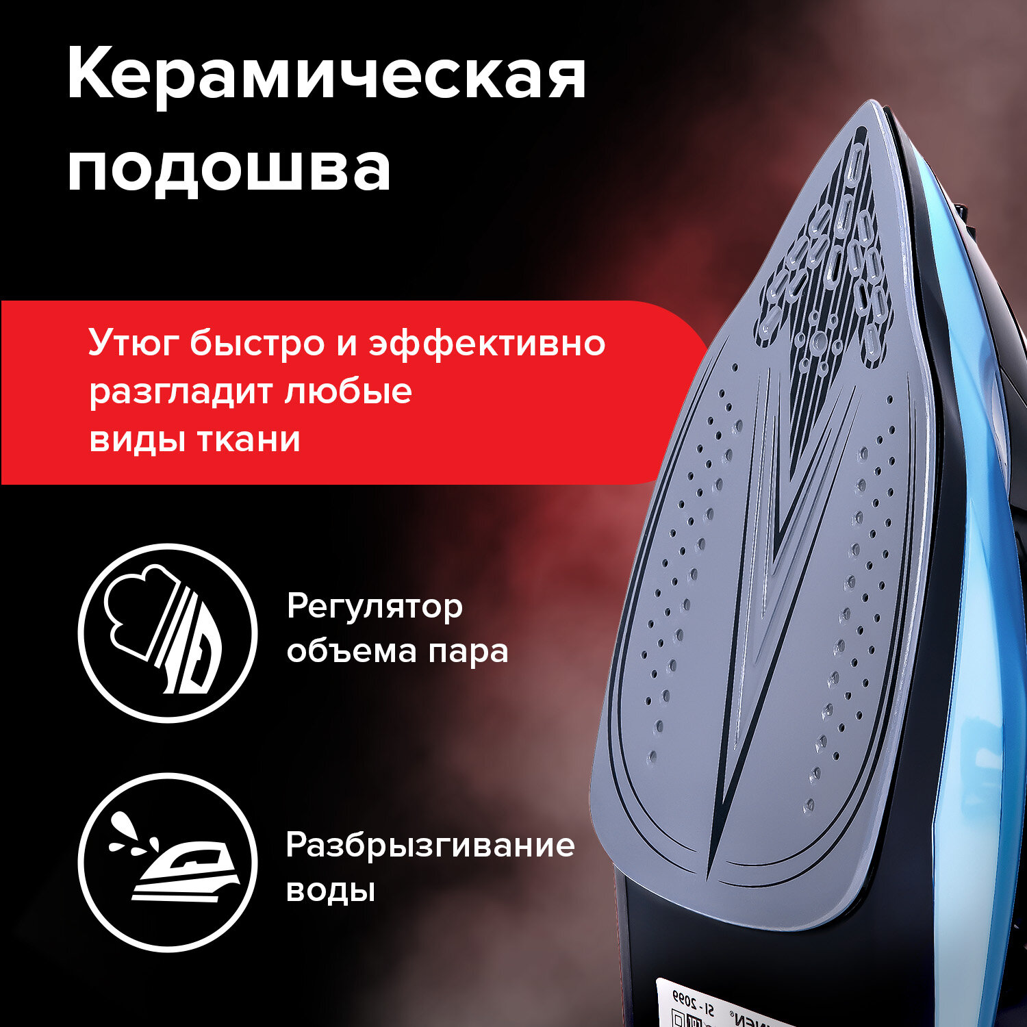 Утюг паровой SONNEN SI-2099, 2400 Вт, керамическое покрытие, антикапля, антинакипь, синий Код товара: 456996 1 402,09 ₽ Купить Производитель:SONNEN Утюг SONNEN SI-2099 обладает отличными характеристиками и с легкостью разглаживает любые складки. Подходит как для сухого глажения, так и для глажения с паром. Утюг мощностью 2400 Вт станет надежным помощником в глажении вещей. Керамическая подошва равномерно распределяет тепло, гарантирует легкое скольжение по всем видам ткани, не оставляет на ткани блестящих следов. Она устойчива к появлению царапин и без труда очищается от загрязнений. Функция "Антикапля" предотвращает утечку воды, когда утюг выключен из сети, а функция "Антинакипь" обеспечивает смягчение воды, что предотвращает выход из строя элементов конструкции утюга. В утюг также встроена система самоочистки, благодаря которой уход за устройством не составит труда. Сетевой шнур длиной 1,9 м крепится с помощью удобного шарового крепления, не позволяющего ему перекручиваться у основания. Небольшой вес устройства сделает даже долгий процесс глажения комфортным. Мерный стакан для воды в комплекте. Размер утюга – 288х138х117,5 мм.Производство: КитайТип утюга: обычныйМощность: 2400 ВтПаровой удар: 120 г/минРегулируемый пар: 20 г/минТип подошвы: керамическаяФункции: вертикальное отпаривание, возможность сухого глаженья, защита от вытекания воды, защита от накипи, индикация готовности к работе, отпаривание, пароувлажнение, разбрызгивание воды, регулировка подачи пара, система самоочисткиРезервуар для воды: 380 млМерный стакан: даДлина шнура: 1.9 мШаровое крепление шнура: даЦвет корпуса: черный/синийВес: 1.2 кгСерия: SIРазмер упаковки: 12.1 × 29.7 × 16.3 смОбъём: 0.0068 м3Промежуточная упаковка: 10 штТранспортная упаковка: 10 штШтрих-код: 4606224454535 Файлы Приложение-1.pdf Сертификат-1.jpg Сертификат-2.jpg Сертификат-3.jpg Сертификат-4.jpg Сертификат-5.jpg Сертификат-6.jpg Сертификат-7.jpg