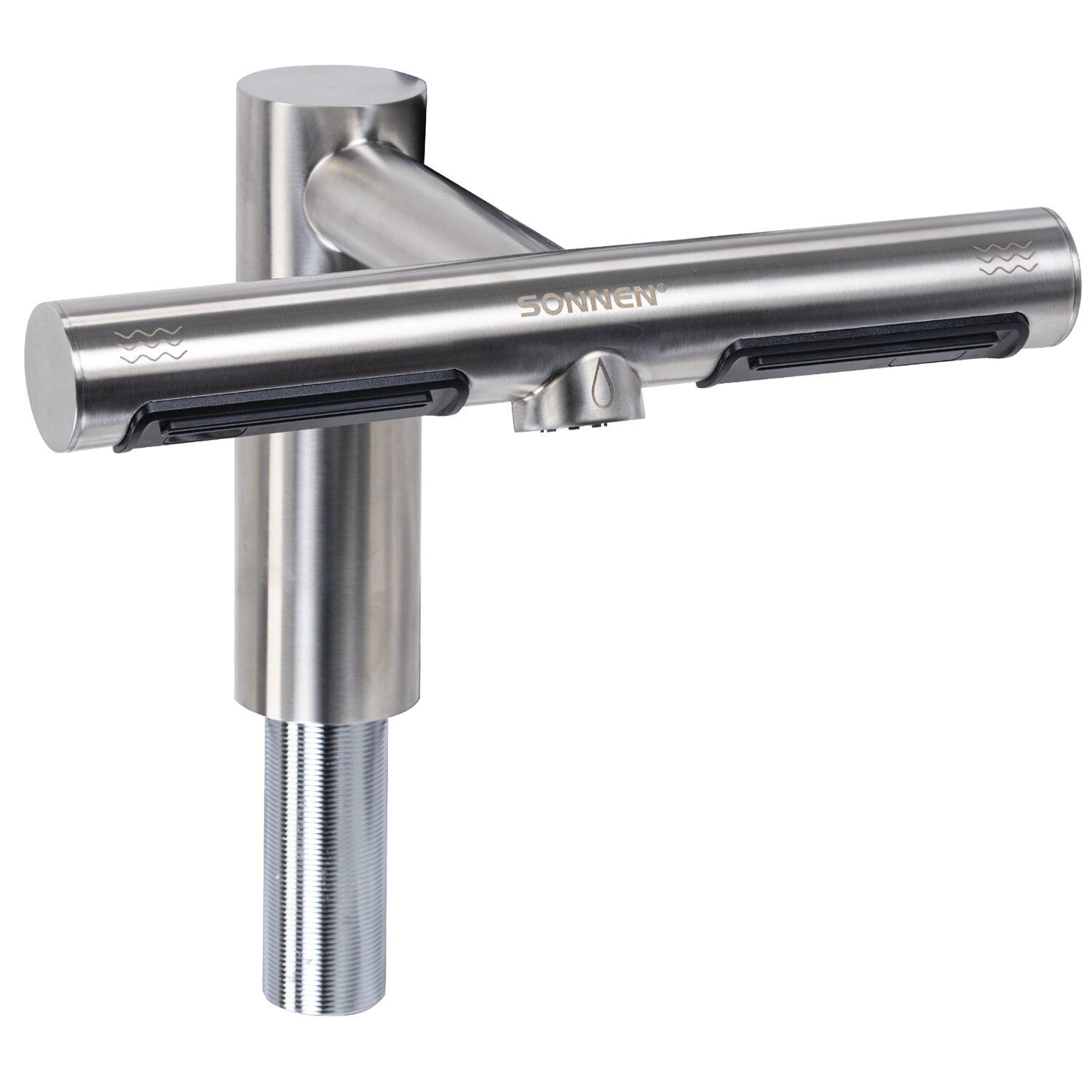Сушилка для рук, встроенная в смеситель с подачей воды, сенсорная, SONNEN SF1204, 1200 Вт, 95 м/с, IP24, нержавеющая сталь Код товара: 607194 38 179,63 ₽ Купить Производитель:SONNEN Смеситель-электросушитель для раковины SONNEN SF1204 – это уникальное 2 в 1 сочетание смесителя с высокоскоростной сушилкой для рук, обладающее всеми преимуществами обоих устройств: гигиеничность, широкий функционал, надежность и многое другое. Мощность 1200 Вт обеспечивает время сушки рук всего за 15 секунд. Стандарт IP24 гарантирует защиту от брызг. Инфракрасные сенсоры отвечают за подачу воды и сушку рук. Эргономичный дизайн, надежная конструкция делают данную модель идеальным вариантом как для установки дома, так и для мест с высокой и средней проходимостью. Корпус из нержавеющей стали обеспечивает долговечность и антивандальную безопасность устройства. В комплект поставки входит набор для крепления. Воспользуйтесь нашей видеоинструкцией для быстрой и качественной установки смесителя-электросушилки. Данный товар относится к среднему ценовому сегменту.Производство: КитайТип: подвеснаяМощность: 1200 ВтВремя сушки: 10-20 секАвтоматическое включение: даКласс влагозащиты: IP24Уровень шума: 75 dBAАнтивандальный корпус: даМатериал корпуса: нержавеющая стальЦвет корпуса: серебристый матовыйДлина шнура: 0.76 мВысота: 263 ммШирина: 199 ммГлубина: 168 ммВес: 5.2 кгРазмер упаковки: 27.8 × 34.2 × 34 смОбъём: 0.038 м3Промежуточная упаковка: 2 штТранспортная упаковка: 2 штШтрих-код: 4606224467313 Приложение-1.mp4 Сертификат-1.jpg Сертификат-2.jpg