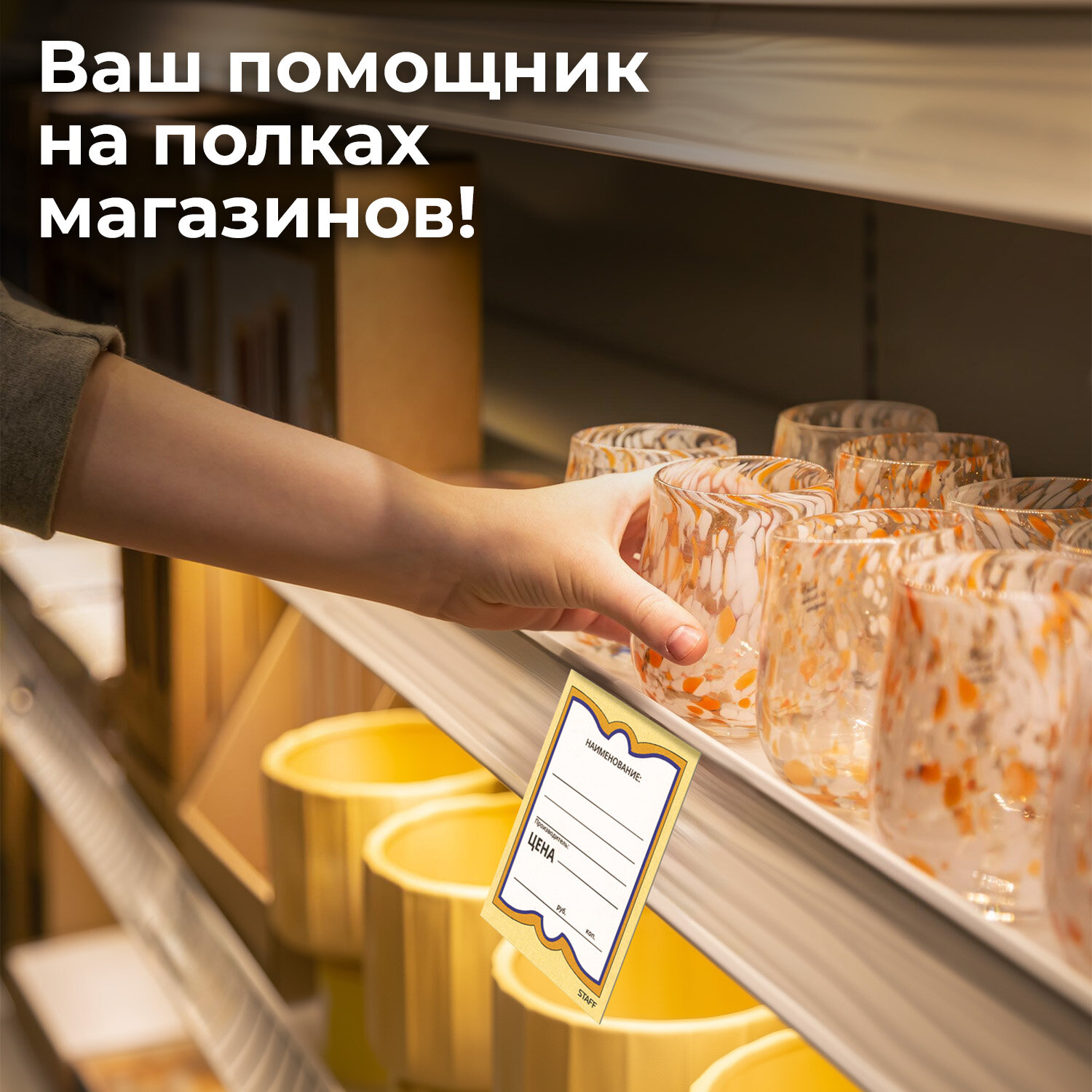 Ценники картонные "Бабочка 4", 70х90 мм, комплект 200 шт., STAFF Код товара: 128681 194,67 ₽ Купить Производитель:STAFF Картонные ценники STAFF наиболее оптимальны для магазинов, торгующих продуктами питания, поскольку картон сохраняет форму при изменении влажности и температуры. Удобные поля позволяют нанести информацию о фирме, наименовании и цене. Выполнены из картона плотностью 200 г/м2. Информация на этикетку наносится вручную. Ширина этикетки составляет 70 мм, высота - 90 мм. Комплект из 200 штук является выгодным приобретением для большого количества товаров.Производство: РоссияТип бумаги: картонРазмер: 70х90 ммПлотность бумаги: 200 г/м2Количество в комплекте: 200 шт.Препринт: даЦвет: белый/оранжевыйВид упаковки: термоусадочная пленкаВес: 365 грРазмер упаковки: 1.7 × 28.2 × 9.2 смОбъём: 0.0005 м3Промежуточная упаковка: 30 штТранспортная упаковка: 30 штШтрих-код: 4606224163031 Файлы Сертификат-1.jpg Сертификат-2.jpg Сертификат-3.jpg Сертификат-4.jpg Сертификат-5.jpg Сертификат-6.jpg Сертификат-7.jpg Сертификат-8.jpg Сертификат-9.jpg Сертификат-10.jpg Сертификат-11.jpg Сертификат-12.jpg Сертификат-13.jpg Сертификат-14.jpg Сертификат-15.jpg Сертификат-16.jpg Сертификат-17.jpg Сертификат-18.jpg Сертификат-19.jpg Сертификат-20.jpg Сертификат-21.jpg Сертификат-22.jpg Сертификат-23.jpg Сертификат-24.jpg Сертификат-25.jpg Сертификат-26.jpg