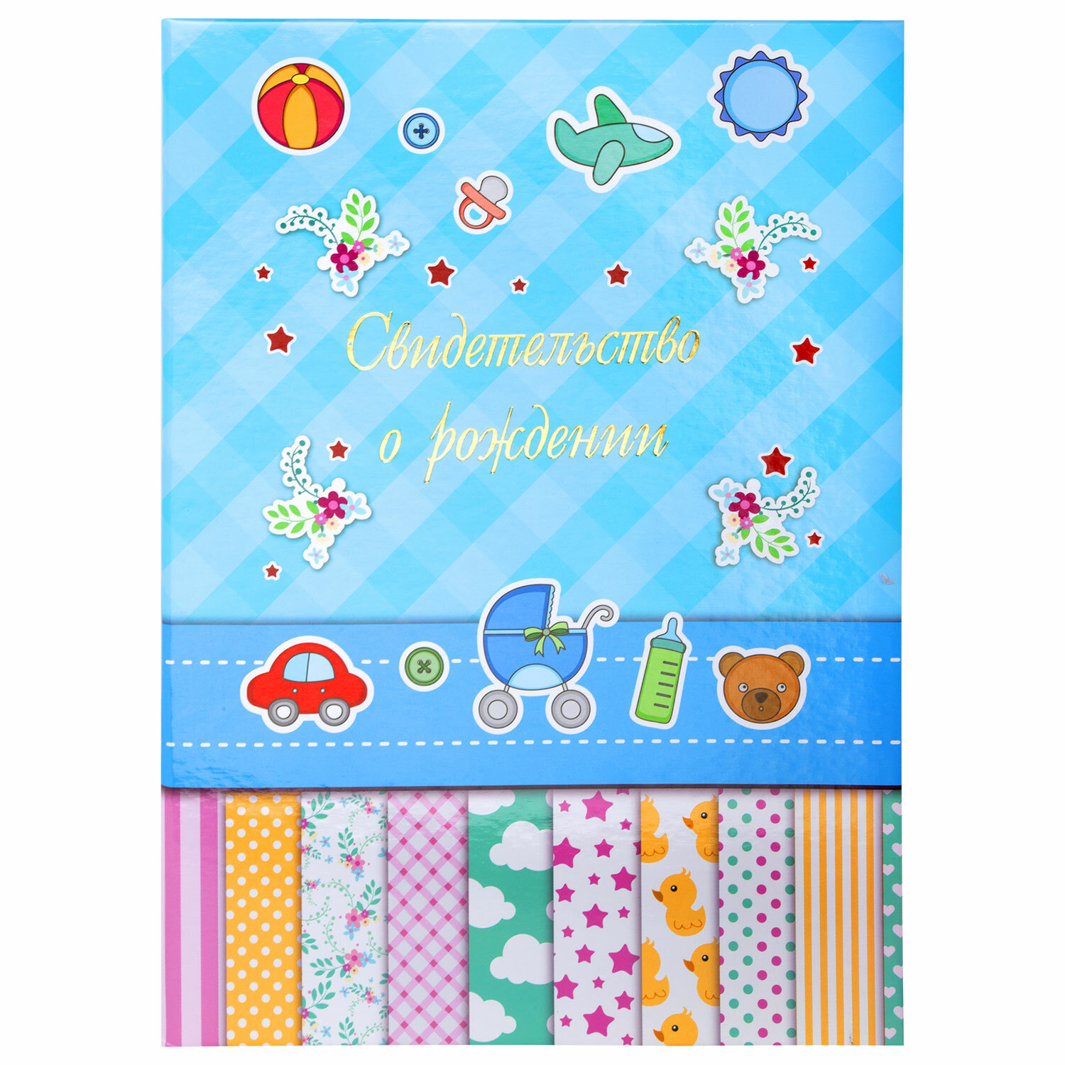 Папка адресная ламинированная "СВИДЕТЕЛЬСТВО О РОЖДЕНИИ", А4, для мальчика, STAFF "Profit" Ликвидация Код товара: 129588 73,71 ₽ Купить Производитель:STAFF Адресная папка STAFF используется для торжественного вручения и хранения свидетельства о рождении. Изготовлена из прочного ламинированного картона. Папка формата А4 для свидетельства о рождении мальчика выполнена в голубых тонах. На обложке - полноцветный рисунок и надпись "Свидетельство о рождении", сделанная золотым тиснением. Снабжена вкладышем (файлом) для документа.Производство: РоссияНазначение: Свидетельство о рожденииФормат: А4Покрытие: ламинированиеТип спецэффектов: полноцветный рисунок, тиснениеЦвет тиснения: "золотое"Вкладыш: даМатериал основы: картонВысота: 305 ммШирина: 217 ммЦвет: голубойИндивидуальная упаковка: даВес: 253 грРазмер упаковки: 0.8 × 31.1 × 22.5 смОбъём: 0.0008 м3Промежуточная упаковка: 25 штТранспортная упаковка: 25 штШтрих-код: 4606224210223 Сертификат-1.jpg Сертификат-2.jpg