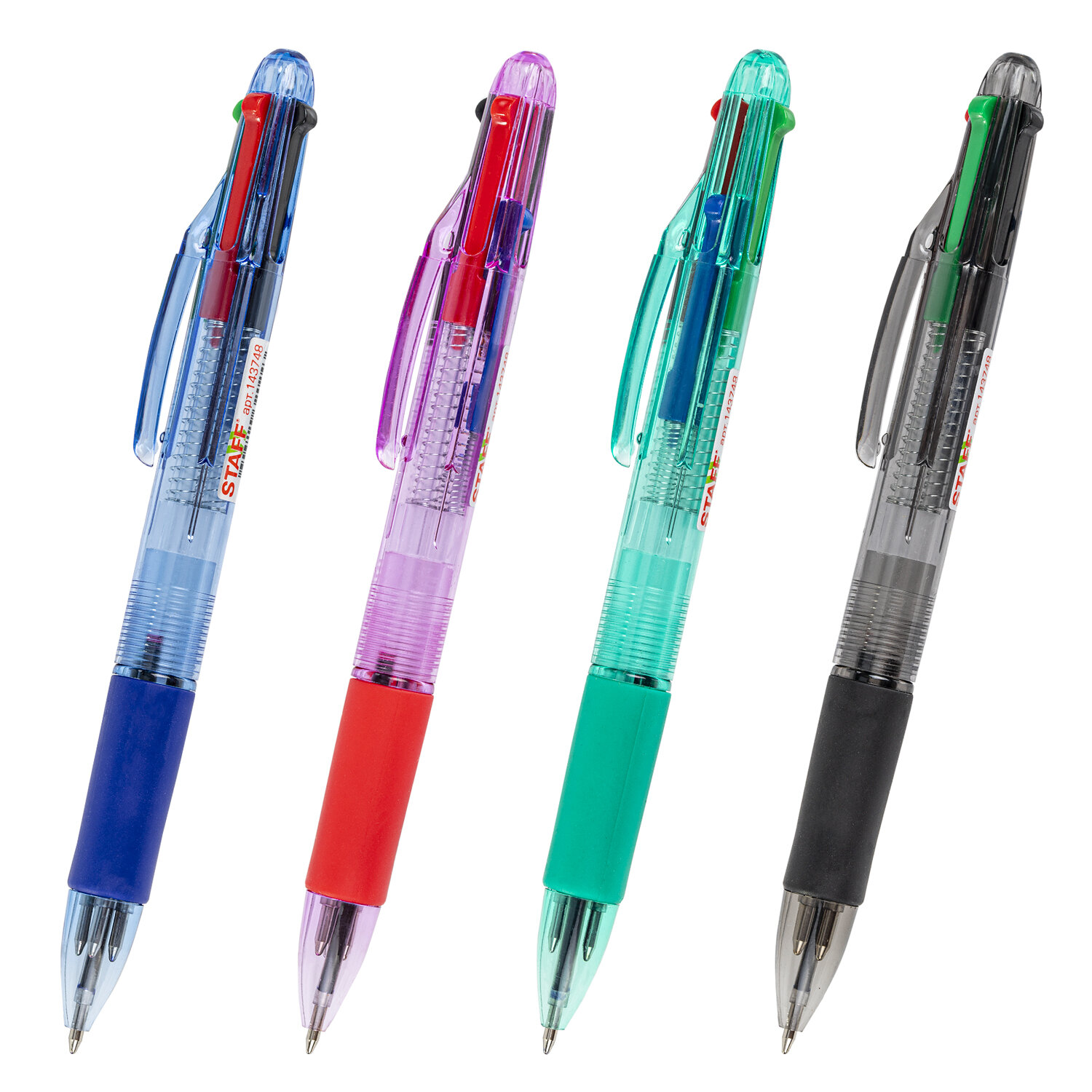Ручка многоцветная шариковая автоматическая STAFF "College" 4 ЦВЕТА BP-15, линия письма 0,35 мм Код товара: 143748 29,16 ₽ Купить Производитель:STAFF Ручка многоцветная шариковая автоматическая STAFF "College 4 ЦВЕТА BP-15" - это универсальная ручка, которая станет отличным помощником в учебе или работе. Имеет круглый тонированный корпус цвета ассорти с резиновым держателем для удобства письма. Диаметр пишущего узла, равный 0,7 мм, создает тонкую линию письма, равную 0,35 мм. Автоматическая шариковая ручка со стержнями четырех различных цветов в одном корпусе позволит выделить самую важную информацию в записях. Цвет чернил: синий, черный, красный, зеленый.Производство: КитайЦвет чернил: ассортиОдноразовая: даТолщина линии письма: 0.35 ммДиаметр пишущего узла: 0.7 ммФорма наконечника: стандартныйДлина сменного стержня: 0 ммКоличество в комплекте: 1 шт.Эргономичная зона захвата: резиновый держательЦвет корпуса: ассортиСерия: CollegeДизайн: без дизайнаФорма корпуса: круглаяПокрытие корпуса: без дополнительного покрытияУпаковка: картонная коробкаСрок годности: 60 месВес: 12 грРазмер упаковки: 1.3 × 14 × 1.5 смПромежуточная упаковка: 12 штТранспортная упаковка: 1728 штШтрих-код: 4606224320243 Сертификат-1.jpg Сертификат-2.jpg Сертификат-3.jpg