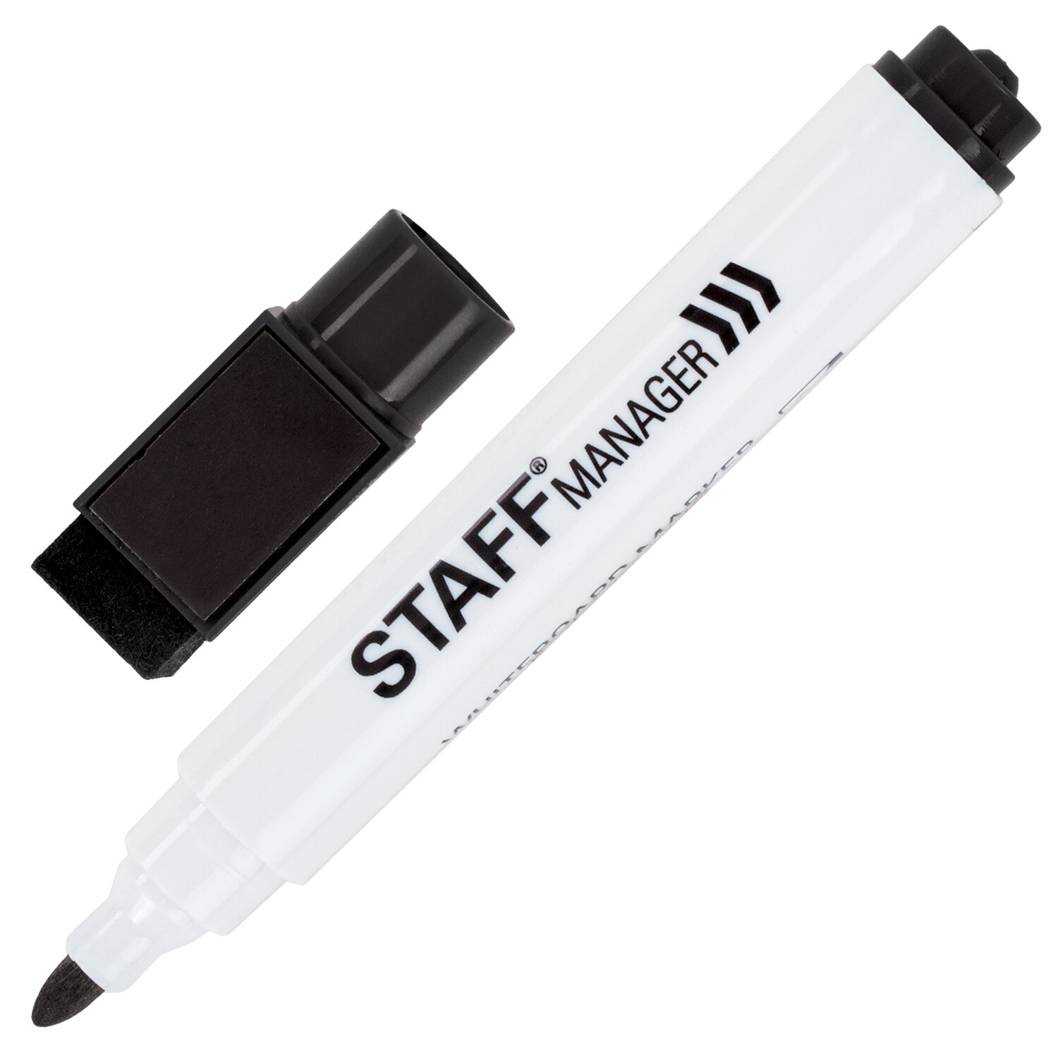 Маркер стираемый для белой доски на магните со стирателем, ЧЕРНЫЙ, STAFF "Manager" WBM-002, 3 мм Код товара: 152002 66,17 ₽ Купить Производитель:STAFF Универсальный стираемый маркер на магните со стирателем STAFF "Manager" предназначен для использования на белых досках с магнитно-маркерной поверхностью. Незаменим для проведения презентаций, совещаний, уроков. Маркер для доски черного цвета обладает круглым пластиковым корпусом диаметром 22 мм. Колпачок оснащен магнитом для крепления к любой металлической поверхности и губкой для быстрой корректировки текста во время написания. Наконечник круглой формы обеспечивает толщину линии письма 3 мм, что позволяет писать крупным шрифтом, который будет хорошо виден. Основа чернил - спиртовая. Чернила быстро высыхают и не оставляют разводов, легко стираются подушечкой, закрепленной на колпачке или специальным стирателем для магнитно-маркерных досок. Изделие не перезаправляется. Цвет колпачка соответствует цвету чернил.Производство: КитайЦвет: черныйСерия: STAFF ManagerТолщина линии письма: 3Наконечник: круглыйКоличество в комплекте: 1 шт.Наличие магнитного держателя: даНаличие стирателя: даОснова чернил: спиртоваяЧернила стираются сухой губкой: даНе протекает при перепаде давления: даМатериал корпуса: пластикСрок годности: 60 месВес: 18 грРазмер упаковки: 1.8 × 14 × 1.9 смОбъём: 0.0001 м3Промежуточная упаковка: 12 штТранспортная упаковка: 1152 штШтрих-код: 4606224293875 Сертификат-1.jpg Сертификат-2.jpg Сертификат-3.jpg