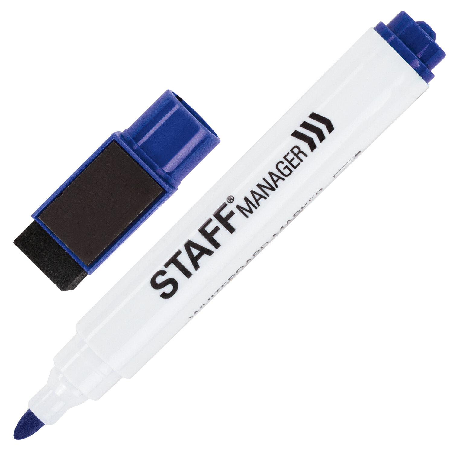 Маркер стираемый для белой доски на магните со стирателем, СИНИЙ, STAFF "Manager" WBM-002, 3 мм Код товара: 152004 66,17 ₽ Купить Производитель:STAFF Универсальный стираемый маркер на магните со стирателем STAFF "Manager" предназначен для использования на белых досках с магнитно-маркерной поверхностью. Незаменим для проведения презентаций, совещаний, уроков. Маркер для доски синего цвета обладает круглым пластиковым корпусом диаметром 22 мм. Колпачок оснащен магнитом для крепления к любой металлической поверхности и губкой для быстрой корректировки текста во время написания. Наконечник круглой формы обеспечивает толщину линии письма 3 мм, что позволяет писать крупным шрифтом, который будет хорошо виден. Основа чернил - спиртовая. Чернила быстро высыхают и не оставляют разводов, легко стираются подушечкой, закрепленной на колпачке или специальным стирателем для магнитно-маркерных досок. Изделие не перезаправляется. Цвет колпачка соответствует цвету чернил.Производство: КитайЦвет: синийСерия: STAFF ManagerТолщина линии письма: 3Наконечник: круглыйКоличество в комплекте: 1 шт.Наличие магнитного держателя: даНаличие стирателя: даОснова чернил: спиртоваяЧернила стираются сухой губкой: даНе протекает при перепаде давления: даМатериал корпуса: пластикСрок годности: 60 месВес: 19 грРазмер упаковки: 1.8 × 14.1 × 1.9 смОбъём: 0.0001 м3Промежуточная упаковка: 12 штТранспортная упаковка: 1152 штШтрих-код: 4606224293899 Сертификат-1.jpg Сертификат-2.jpg Сертификат-3.jpg