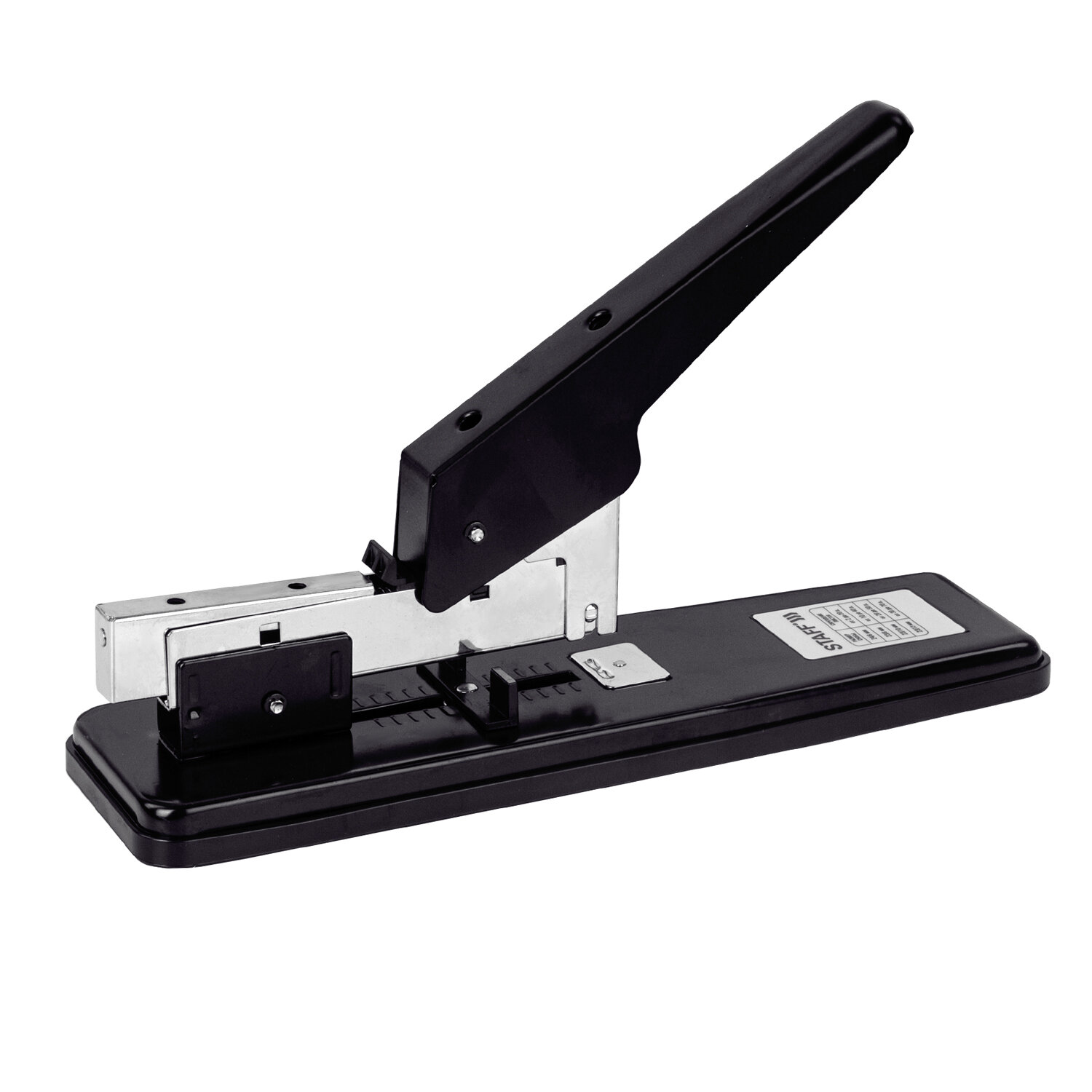 Степлер МОЩНЫЙ №24/6-23/13 металлический STAFF "Manager", до 70 листов, черный Код товара: 227663 1 388,2 ₽ Купить Производитель:STAFF Мощный степлер STAFF предназначен для работы с большим объемом документов. Рабочий механизм и корпус выполнены из металла черного цвета. Способен скрепить до 70 листов бумаги. Подходит для скоб № 24/6, 26/6, № 23/8, 24/8, № 23/10, № 23/13. Глубина закладки бумаги регулируется - до 72 мм. Закрытый вид сшивания. Задняя загрузка скоб.Производство: КитайМаксимальное количество скрепляемых листов: 70Подходящие скобы: № 23/10, № 23/13, № 23/8, 24/8, № 24/6, 26/6Регулируемая глубина сшивания: даВместимость скоб: 50 шт.Наличие линейки: даГлубина закладки бумаги: 72 ммСерия: ManagerВиды сшивания степлером: закрытыйЗагрузка скоб: задняяЦвет корпуса: черныйМатериал корпуса: металлВысота корпуса: 165 ммДлина корпуса: 280 ммШирина корпуса: 89 ммУпаковка: картонная коробкаВес: 970 грРазмер упаковки: 8.9 × 29 × 8.8 смОбъём: 0.0029 м3Промежуточная упаковка: 12 штТранспортная упаковка: 12 штШтрих-код: 4606224208916 Файлы Сертификат-1.jpg Сертификат-2.jpg Сертификат-3.jpg Сертификат-4.jpg Сертификат-5.jpg Сертификат-6.jpg Сертификат-7.jpg Сертификат-8.jpg Сертификат-9.jpg Сертификат-10.jpg Сертификат-11.jpg Сертификат-12.jpg Сертификат-13.jpg Сертификат-14.jpg Сертификат-15.jpg Сертификат-16.jpg Сертификат-17.jpg Сертификат-18.jpg Сертификат-19.jpg Сертификат-20.jpg Сертификат-21.jpg Сертификат-22.jpg Сертификат-23.jpg Сертификат-24.jpg Сертификат-25.jpg Сертификат-26.jpg
