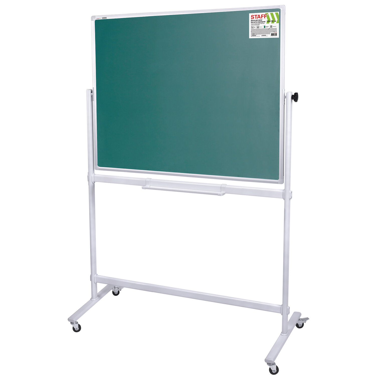 Доска для мела/магнитно-маркерная НА СТЕНДЕ 100х150 см, 2-сторонняя, зеленая/белая, STAFF Код товара: 238006 19 879,64 ₽ Купить Производитель:STAFF Двусторонняя доска на стенде STAFF предназначена для наглядной демонстрации информации при проведении тренингов, совещаний и презентаций. Белая рабочая поверхность с лаковым покрытием предназначена для письма специальными маркерами для белой доски и позволяет размещать информацию при помощи магнитов. Зеленая рабочая поверхность предназначена для письма и рисования мелками. Вращается в горизонтальной плоскости на 360 градусов. Перемещается на колесиках. Элементы крепления входят в комплект. Размер доски: 100х150 см.Производство: КитайТип доски: двусторонняяРазмер доски (ВхШ): 100х150 смРазмещение: напольноеРабочая поверхность: для письма маркерами, для письма меломМагнитная поверхность: даМатериал рабочей поверхности: металлКоличество поверхностей для письма мелом: 1 штКоличество поверхностей для письма меловым маркером: 0Серия: Stand-up chalkКоличество поверхностей для письма маркером: 1 штВысота доски*: 100 смШирина*: 150 смМаксимальная ширина доски: 150 смВысота в сборе: 100 смЦвет рабочей поверхности: белый/зеленыйРазметка: нетПеремещается на колесиках: даКомплектация: элементы крепленияЦвет рамки: серебристыйМатериал рамки: алюминийВес: 13.5 кгРазмер упаковки: 118 × 167 × 7 смОбъём: 0.1379 м3Промежуточная упаковка: 1 штТранспортная упаковка: 1 штШтрих-код: 4606224360829 Файлы Сертификат-1.jpg Сертификат-2.jpg Сертификат-3.jpg Сертификат-4.jpg Сертификат-5.jpg Сертификат-6.jpg Сертификат-7.jpg Сертификат-8.jpg Сертификат-9.jpg Сертификат-10.jpg Сертификат-11.jpg Сертификат-12.jpg Сертификат-13.jpg Сертификат-14.jpg Сертификат-15.jpg Сертификат-16.jpg Сертификат-17.jpg Сертификат-18.jpg Сертификат-19.jpg Сертификат-20.jpg Сертификат-21.jpg Сертификат-22.jpg Сертификат-23.jpg Сертификат-24.jpg Сертификат-25.jpg Сертификат-26.jpg