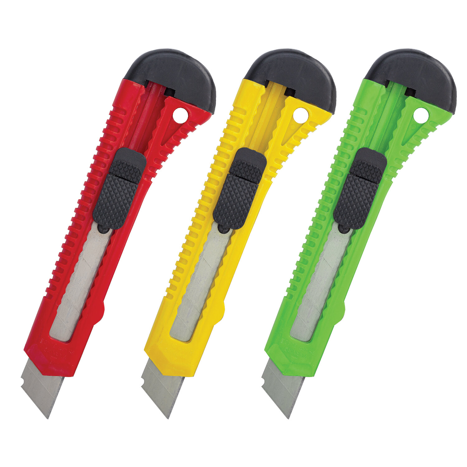 Нож канцелярский 18 мм КОМПЛЕКТ "2 шт. + 1 шт. В ПОДАРОК", фиксатор, блистер, STAFF EVERYDAY Код товара: 238769 124,34 ₽ Купить Производитель:STAFF Канцелярский нож STAFF относится к категории товаров, которые должны быть в каждом офисе и доме. С этой классической моделью можно ускорить процесс резки бумаги, картона и других материалов, сохраняя при этом максимальную аккуратность среза. Острые лезвия шириной 18 мм из высокопрочной стали в надежном пластиковом корпусе со специальной защелкой. Защелка позволяет фиксировать лезвие в нужном положение и регулировать длину ножа. Если лезвие затупилось, достаточно выдвинуть часть, пришедшую в негодность, и обломать ее по наклонной черте, нанесенной на поверхности ножа. Имеется отверстие для подвеса. Поставляется в нескольких вариантах цвета (без возможности выбора).Производство: КитайШирина лезвия: 18 ммКоличество ножей в комплекте: 3 шт.Тип механизма фиксации: защелкаМатериал корпуса: пластикСерия: EVERYDAYОтверстие для подвеса: даЦвет корпуса: ассортиУпаковка: блистер с европодвесомВес: 110 грРазмер упаковки: 1.6 × 20.8 × 15.5 смОбъём: 0.0006 м3Промежуточная упаковка: 12 штТранспортная упаковка: 144 штШтрих-код: 4606224459608 Файлы Сертификат-1.jpg Сертификат-2.jpg Сертификат-3.jpg Сертификат-4.jpg Сертификат-5.jpg Сертификат-6.jpg Сертификат-7.jpg Сертификат-8.jpg Сертификат-9.jpg Сертификат-10.jpg Сертификат-11.jpg Сертификат-12.jpg Сертификат-13.jpg Сертификат-14.jpg Сертификат-15.jpg Сертификат-16.jpg Сертификат-17.jpg Сертификат-18.jpg Сертификат-19.jpg Сертификат-20.jpg Сертификат-21.jpg Сертификат-22.jpg Сертификат-23.jpg Сертификат-24.jpg Сертификат-25.jpg Сертификат-26.jpg