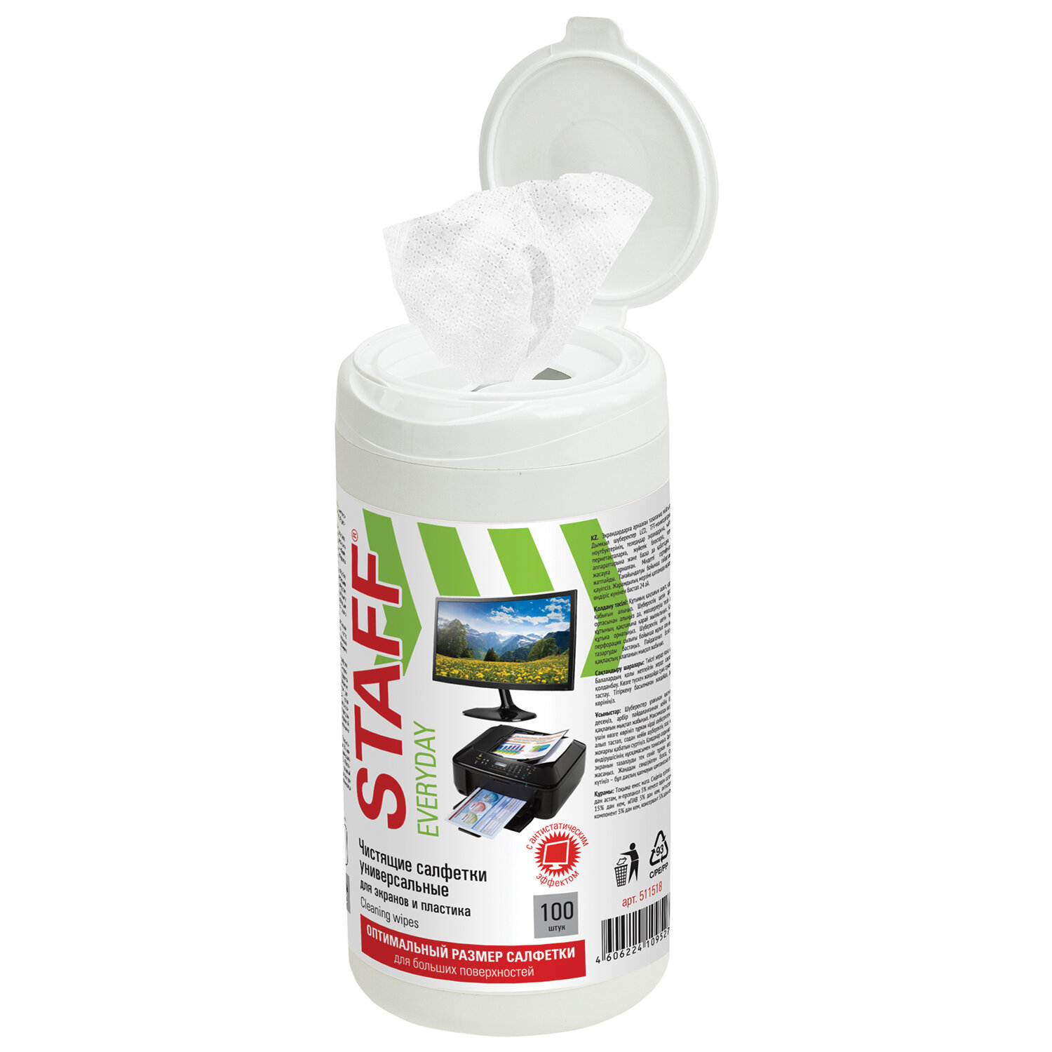 Салфетки для экранов всех типов и пластика универсальные STAFF "EVERYDAY", туба 100 шт., влажные Код товара: 511518 189,46 ₽ Купить Производитель:STAFF Чистящие влажные салфетки STAFF предназначены для удаления пыли и загрязнений с экранов мониторов, ноутбуков, телевизоров, а также протирки пластиковых поверхностей - клавиатур, компьютеров (ПК), телефонных аппаратов, мебели и т.д. Они имеют размер 135х145 мм и выполнены из нетканного материла плотностью 18 г/м2. Упакованы в пластиковую тубу по 100 штук. Пропитывающий состав: вода более 30%, н-пропанол 5% или более, но менее 15%, неионогенные ПАВ менее 5%, консервант менее 5%, антистатический компонент менее 5%. Перед применением необходимо ознакомиться с инструкцией производителя устройства, которое подвергается очистке. Перед применением слегка проветрить, чтобы салфетка не была слишком влажной. Идеальны для обычной влажной уборки любых поверхностей.Производство: РоссияНазначение: авто, для любых поверхностей, оптика, пластик, смартфон, телевизор, экран монитораКоличество салфеток: 100 шт.Тип: влажныеАнтистатический эффект: даДлина салфетки: 145 ммСерия: EVERYDAYШирина салфетки: 135 ммМатериал салфеток: нетканый материалПлотность материала: 18 г/м2Упаковка: пластиковая тубаСрок годности: 24 месВес: 238 грРазмер упаковки: 8.3 × 17 × 8.3 смОбъём: 0.0012 м3Промежуточная упаковка: 12 штТранспортная упаковка: 12 штШтрих-код: 4606224109527 Сертификат-1.jpg Сертификат-2.jpg
