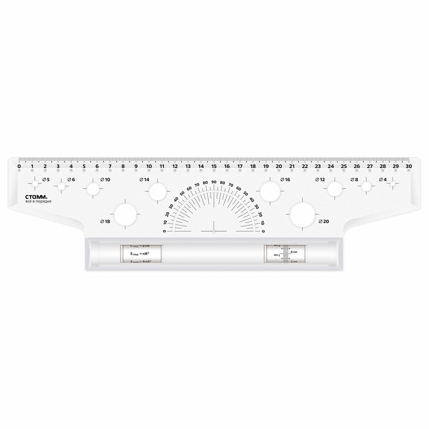 Линейка с роликом (рейсшина) 30 см, металлический ролик, с транспортиром, прозрачная Код товара: 210481 330,34 ₽ Купить Производитель:СТАММ Прозрачная односторонняя пластиковая линейка с металлическим роликом. Позволяет проводить ровные, четкие, параллельные линии. В модели предусмотрен транспортир на 180° и трафареты окружностей. На ролик нанесены часто используемые формулы. Изготавливается из высококачественного пластика на современном оборудовании.Производство: РоссияТип инструмента: рейсшина с роликомДлина шкалы: 30 смОсобенности: встроенный транспортир, трафареты окружностейМатериал: высокопрочный пластикМатериал ролика: металлЦвет: прозрачныйДлина: 32 смШирина: 9 смУпаковка: картонная коробка с подвесомВес: 192 грРазмер упаковки: 2.5 × 34.5 × 9.2 смОбъём: 0.001 м3Промежуточная упаковка: 15 штТранспортная упаковка: 15 штШтрих-код: 4620000638353 Файлы Приложение-1.pdf Приложение-2.pdf Приложение-3.pdf Приложение-4.pdf Сертификат-1.jpg Сертификат-2.jpg Сертификат-3.jpg