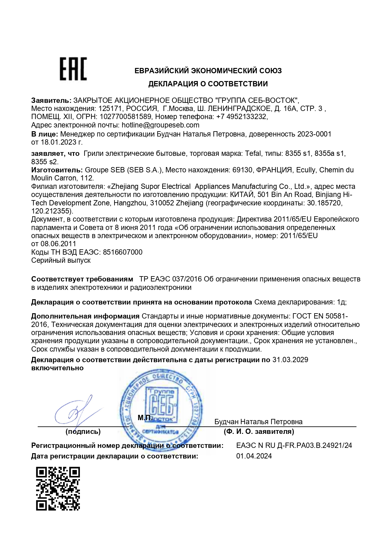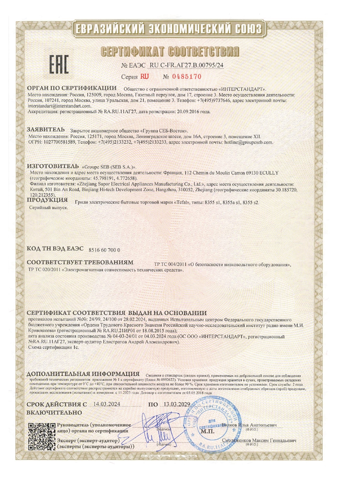 Электрогриль TEFAL GC714834, 2000 Вт, съемные панели, регулировка температуры, черный Код товара: 456495 28 415,08 ₽ Купить Производитель:TEFAL Умный электрогриль TEFAL GC714834 – это универсальное устройство для приготовления разнообразных блюд на любой вкус. Благодаря функции приготовления закусок и выпечки вы сможете быстро и легко создавать вкусные и полезные блюда для всей семьи. Сочный стейк, хрустящие овощи или ароматная выпечка — с умным электрогрилем TEFAL Optigrill+ GC714834 вы сможете приготовить всё это и даже больше! Шесть автоматических программ и технология сенсорного контроля сами подберут время и температуру, чтобы блюдо получилось идеальным. Гриль автоматически измеряет толщину продукта и уведомляет о степени прожарки с помощью цветового индикатора: желтый — с кровью, оранжевый — средняя прожарка, красный — полная. Функция «Суперкорочка» (Searing Boost) создает аппетитную ресторанную корочку, а наклонные пластины (7°) обеспечивают стекание жира в поддон, сохраняя сочность блюд. Антипригарное покрытие Tefal и съемные элементы, которые можно мыть в посудомоечной машине, делают уход за грилем простым и быстрым. В комплекте идет уникальная насадка для запекания из литого алюминия с антипригарным покрытием, которая открывает новые возможности для кулинарных экспериментов. Производитель оставляет за собой право без предварительного уведомления вносить изменения в технические характеристики, комплектацию и конструкцию, не ухудшающие эксплуатационные характеристики изделия.Производство: КитайТип товара: электрогрильМощность: 2000 ВтКоличество режимов приготовления: 6Поддон для сбора жира: даСъемные/сменные пластины: даСерия: GC714834Тип покрытия пластин: антипригарноеКоличество пластин в наборе: 2Регулировка температуры: даАвтоматическое отключение: даЗвуковой индикатор окончания работы: даСветовой индикатор работы: даКомплектация: гриль-пластины, инструкцияМатериал корпуса: нержавеющая сталь, пластикВысота: 175 ммШирина: 365 ммГлубина: 365 ммВес: 7,76 кгРазмер упаковки: 53.2 × 45.9 × 24.6 смОбъём: 0.0601 м3Промежуточная упаковка: 1 штТранспортная упаковка: 1 штШтрих-код: 3016661149627 Файлы Приложение-1.pdf Сертификат-1.jpg Сертификат-2.jpg Сертификат-3.jpg Сертификат-4.jpg Сертификат-5.jpg Сертификат-6.jpg